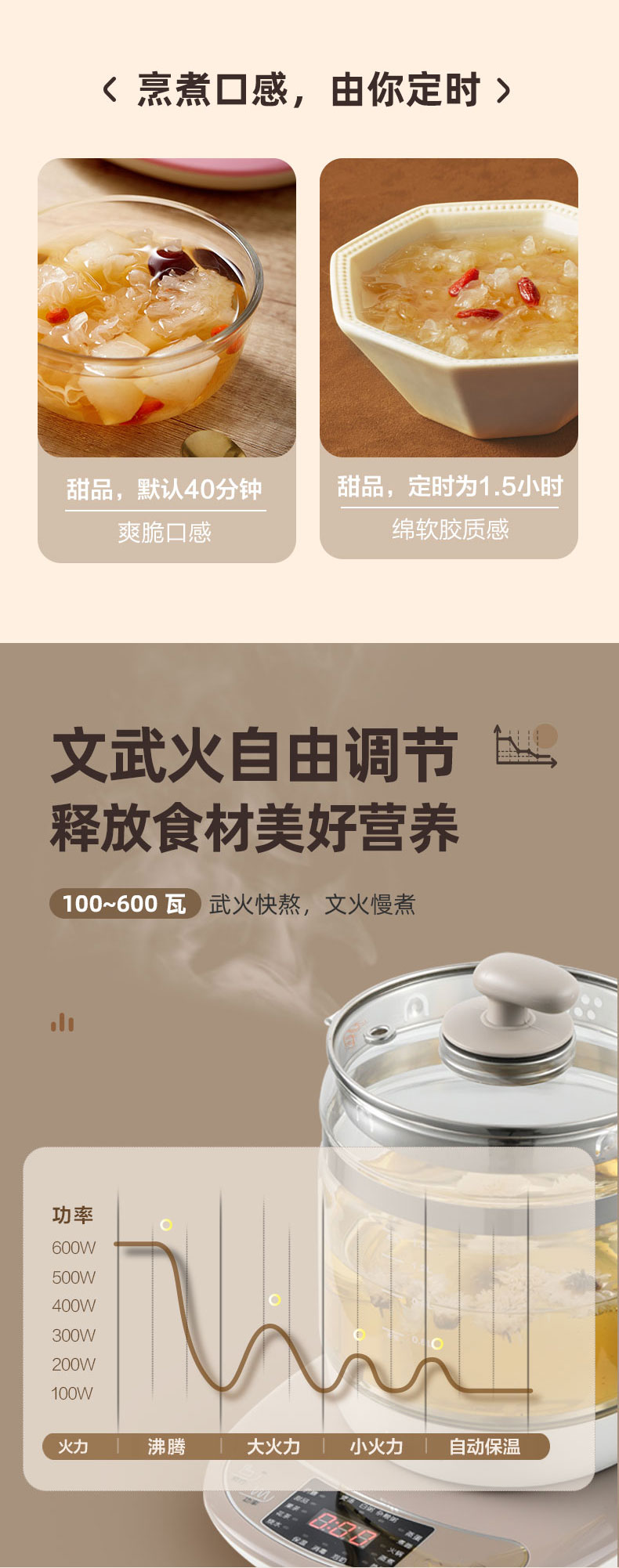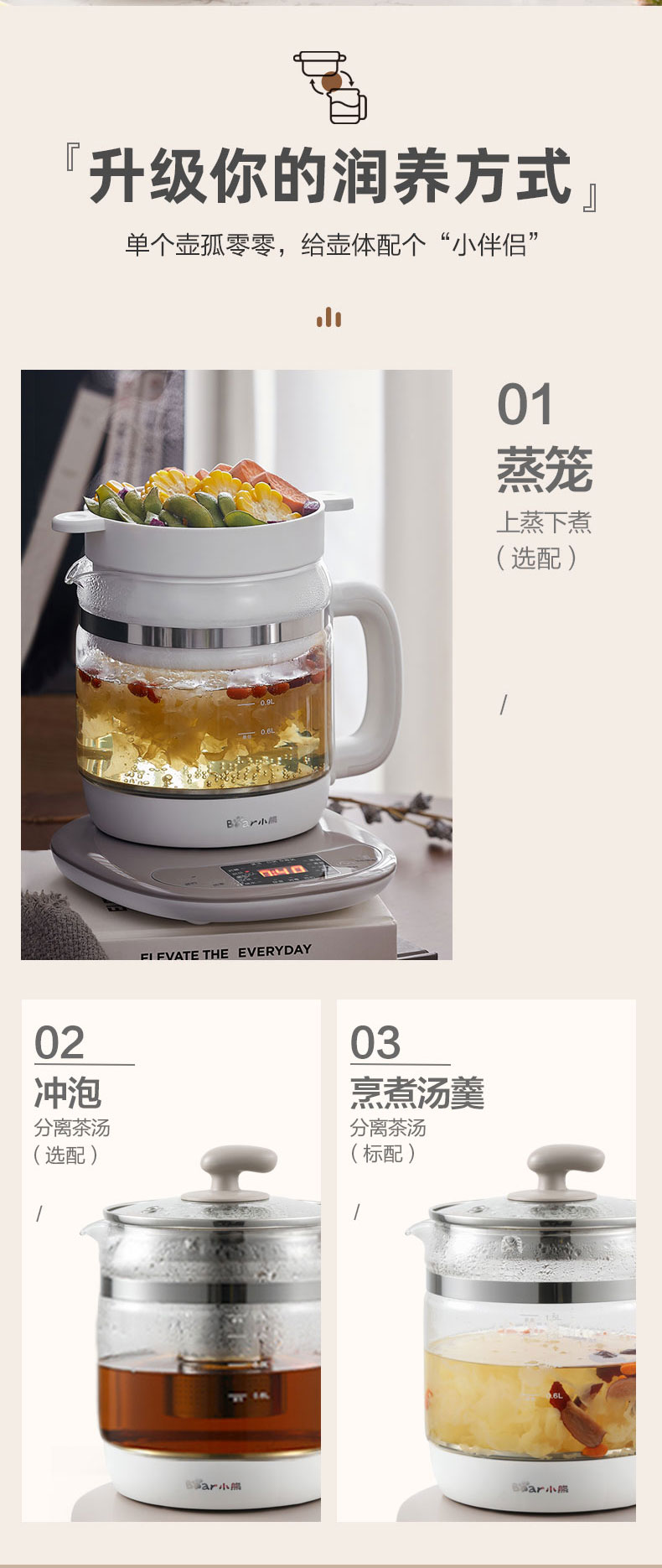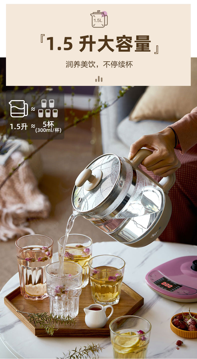 【小程序】小熊养生壶 YSH-B18H8棕色 玻璃壶身 4颗螺柱发热盘 商品图3