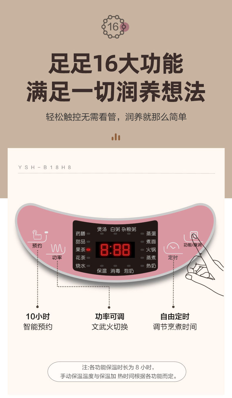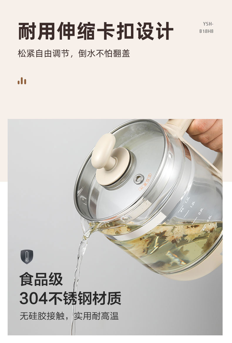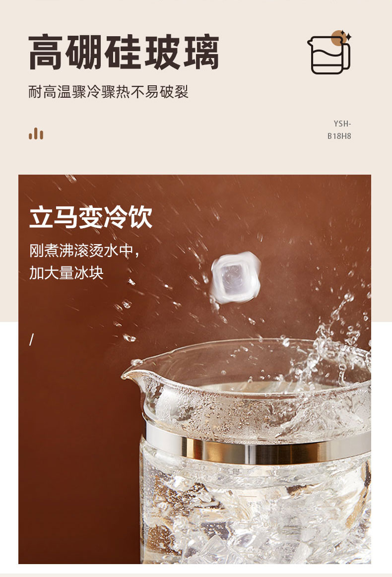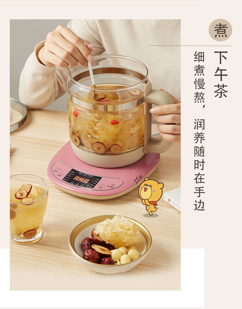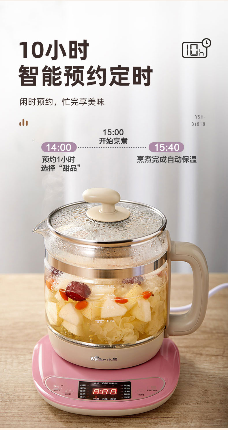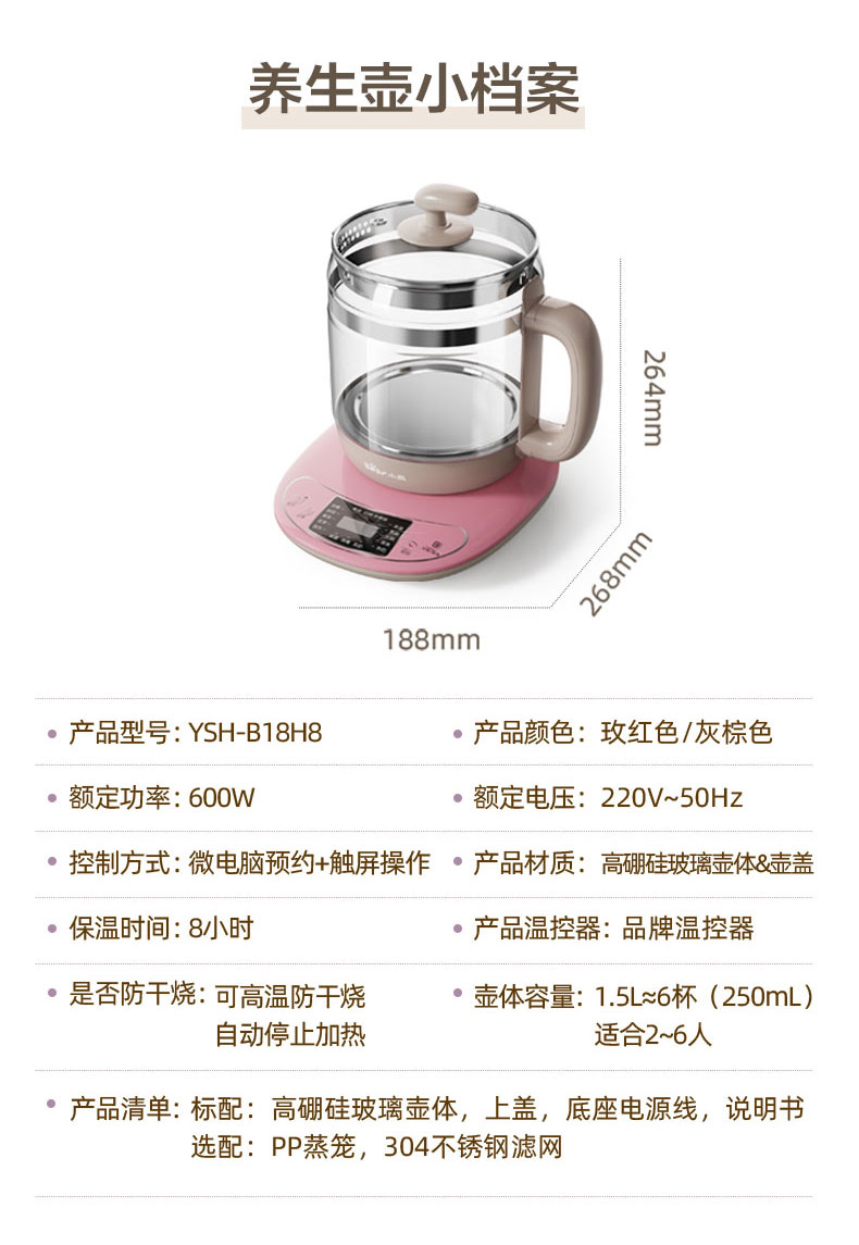 【小程序】小熊养生壶 YSH-B18H8棕色 玻璃壶身 4颗螺柱发热盘