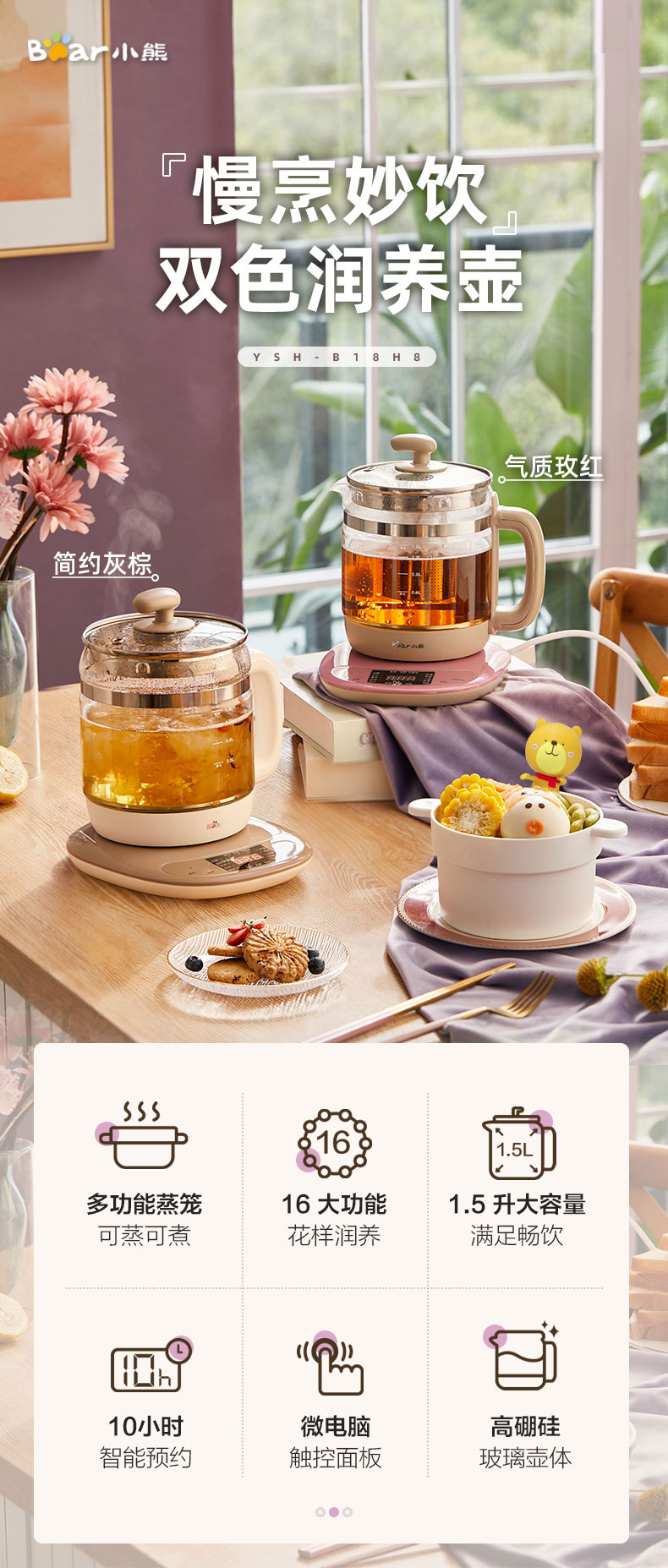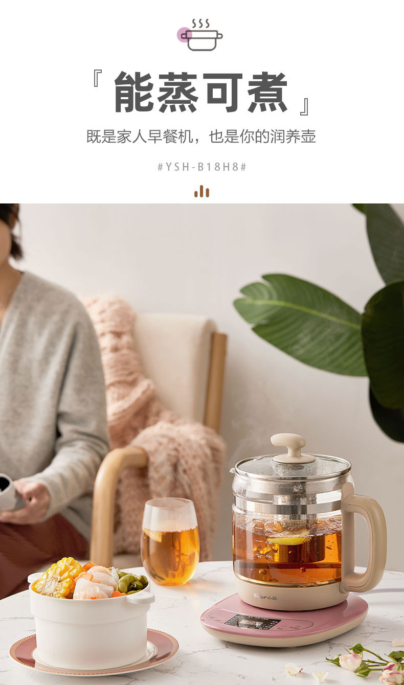 【小程序】小熊养生壶 YSH-B18H8棕色 玻璃壶身 4颗螺柱发热盘 商品图1