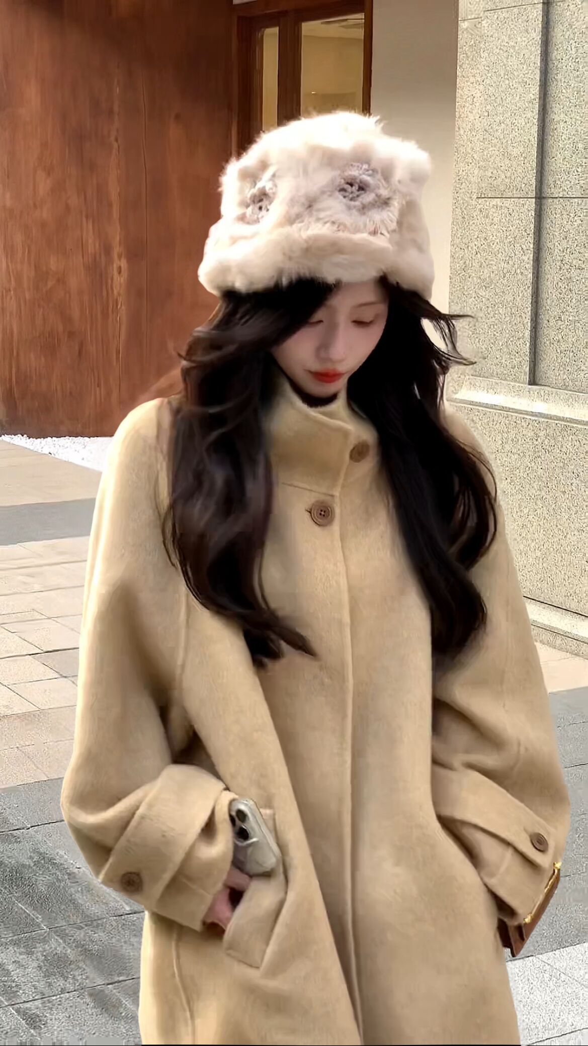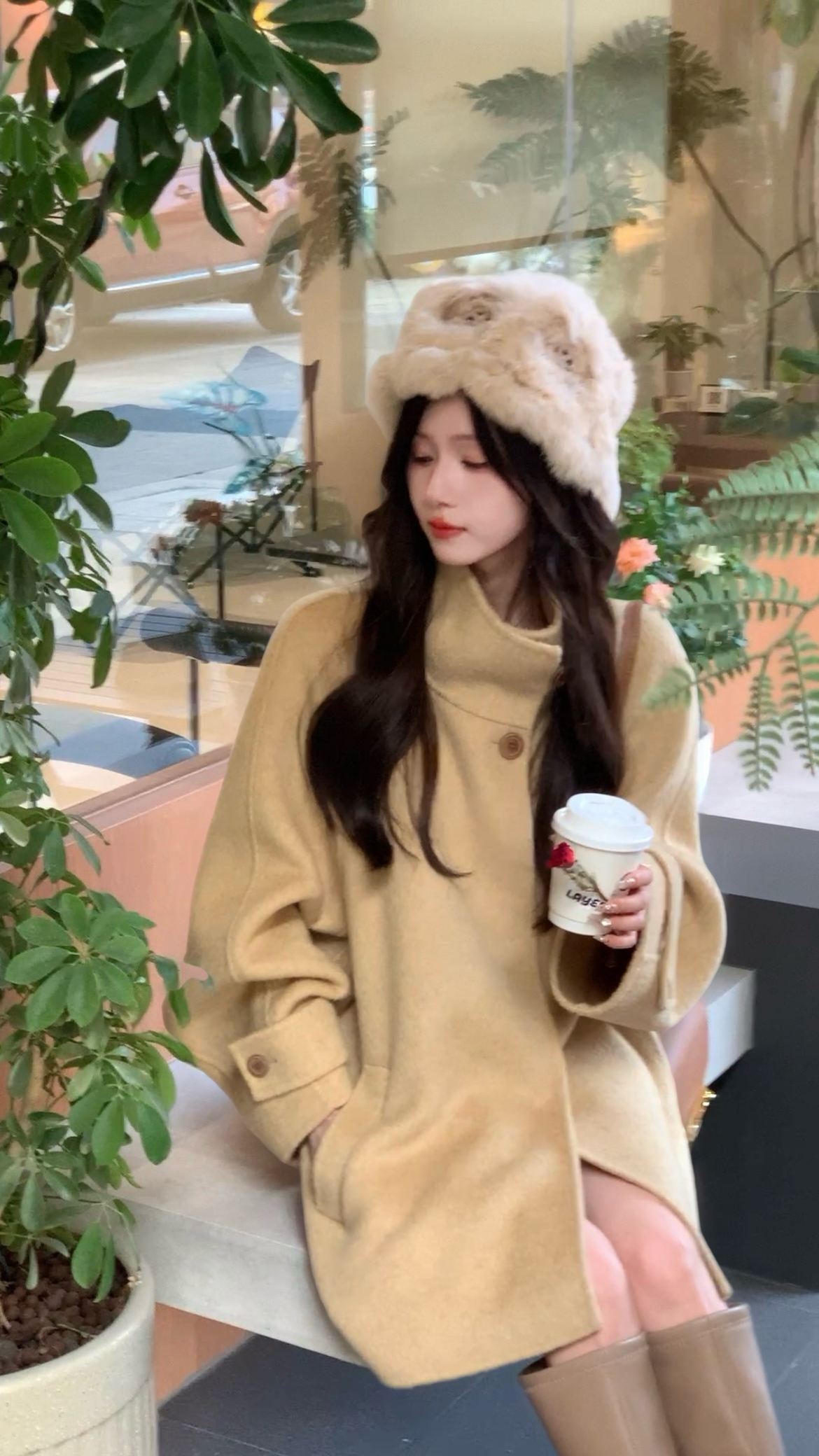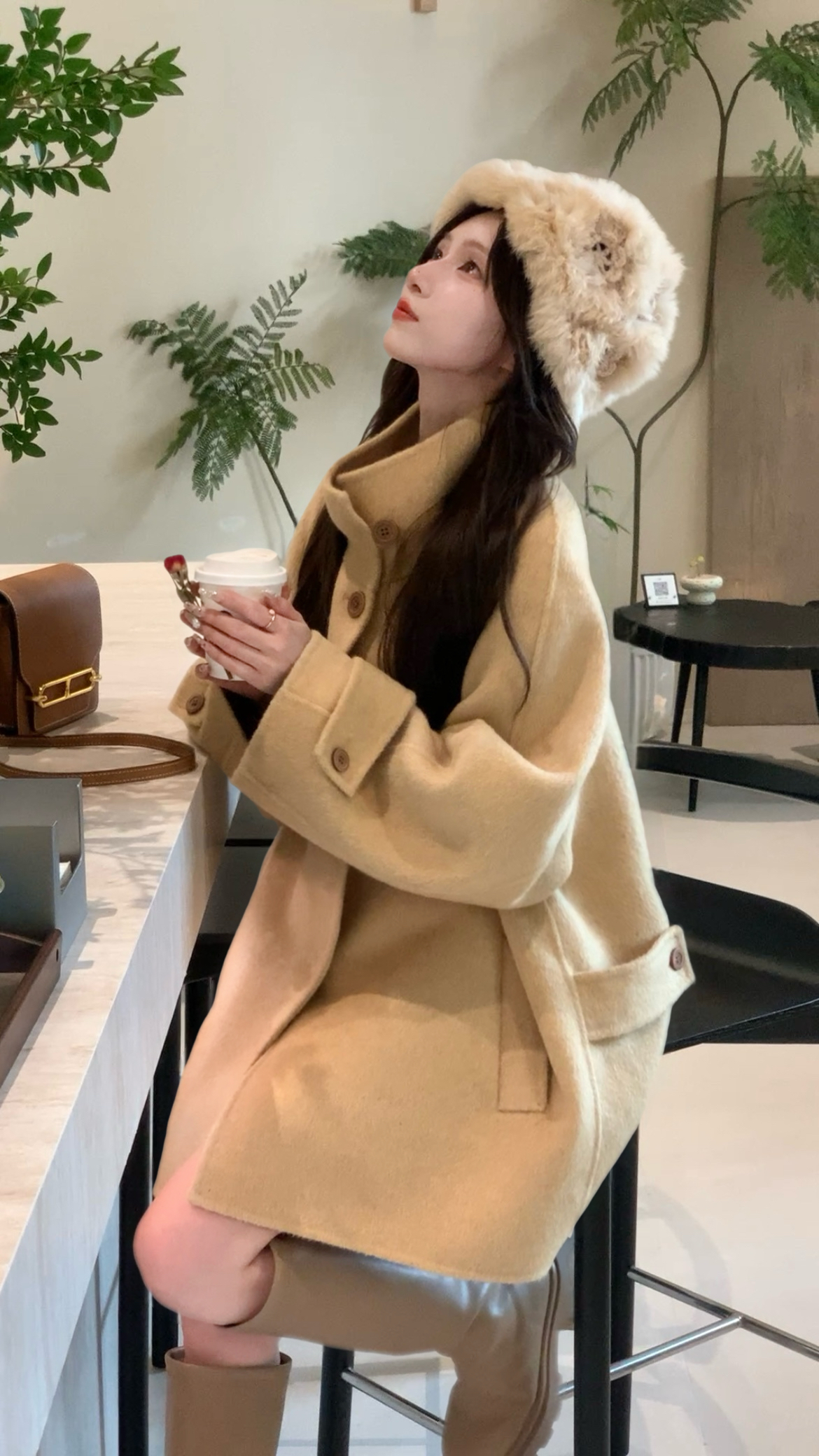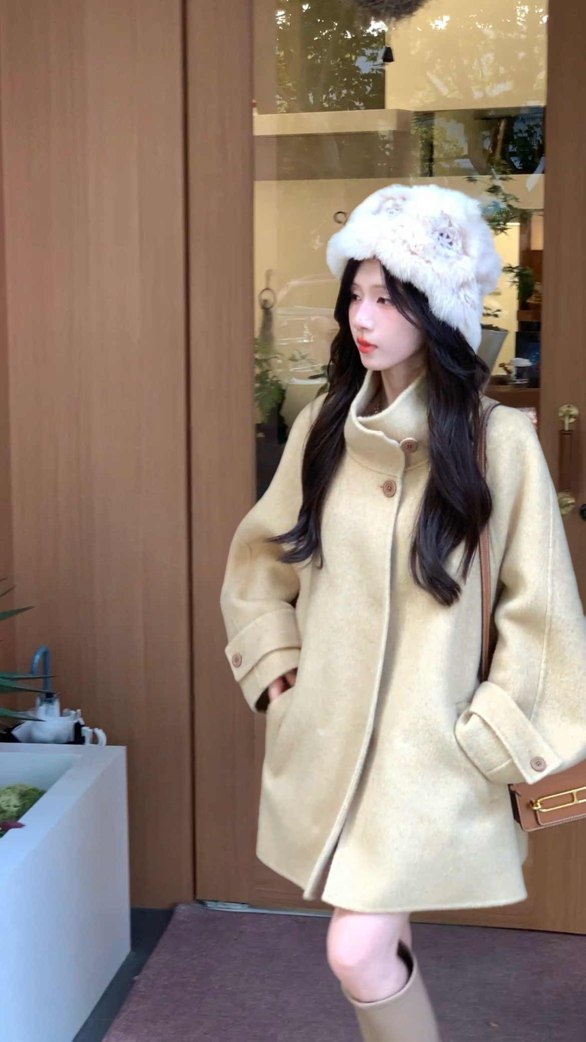 现货【格调派对】设计师高定新款牦牛绒双面呢大衣立领气质外套女
