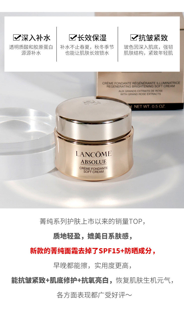 【买一送一】兰蔻菁纯面霜15ml,紧致保湿淡化细纹轻盈乳霜
