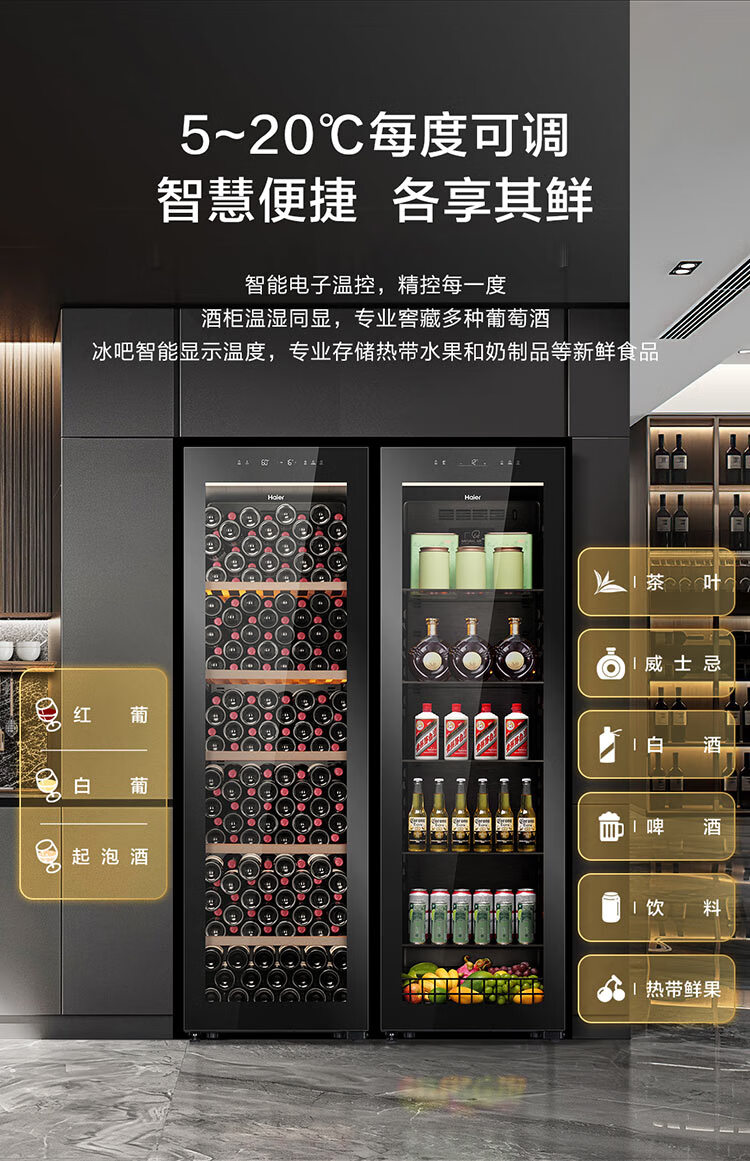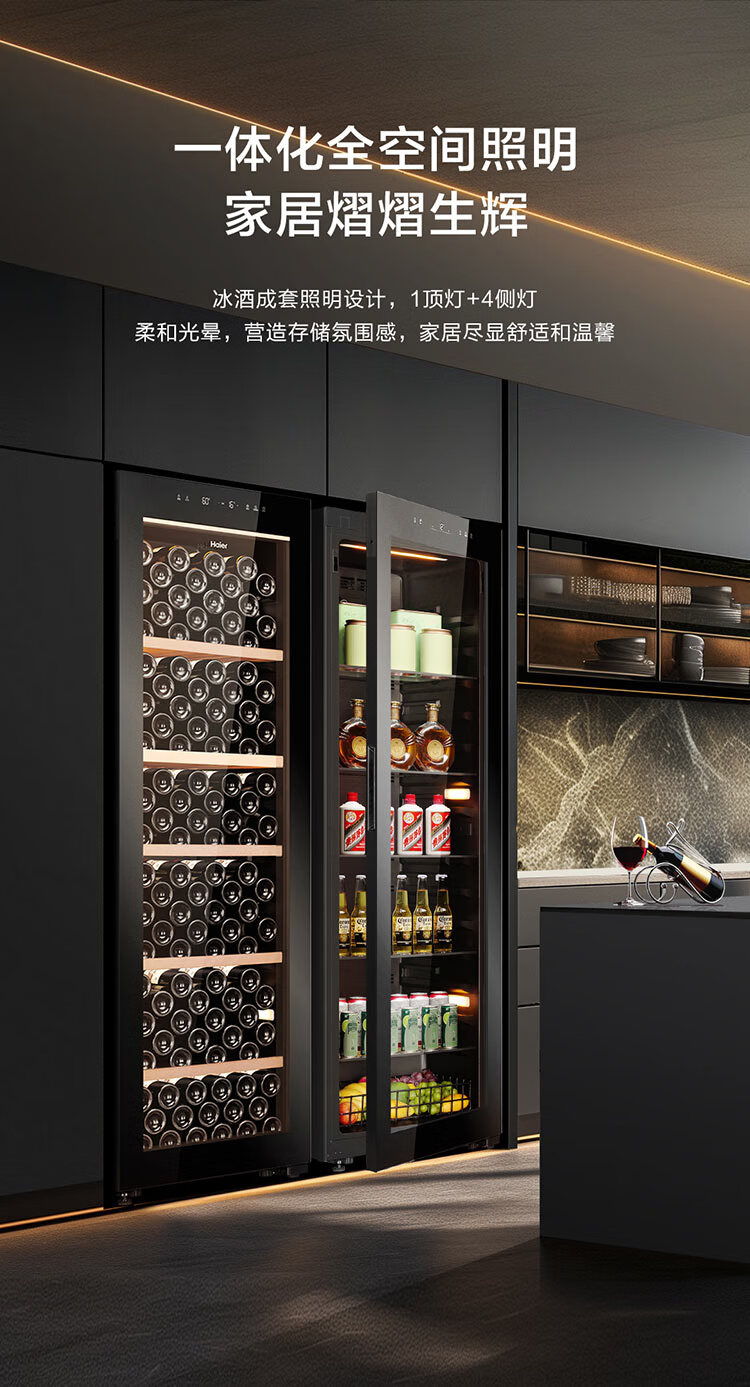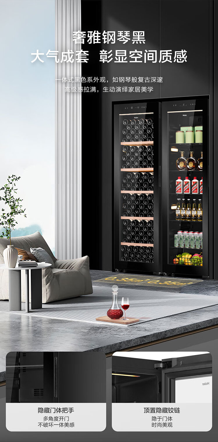 海尔【新品】嵌入式冰吧恒温恒湿红酒柜家用立式保湿柜办公室客厅冷藏保鲜柜风冷柜葡萄酒红酒展示柜 【冰吧+酒柜组合】756L丨风冷无霜丨自由拼接