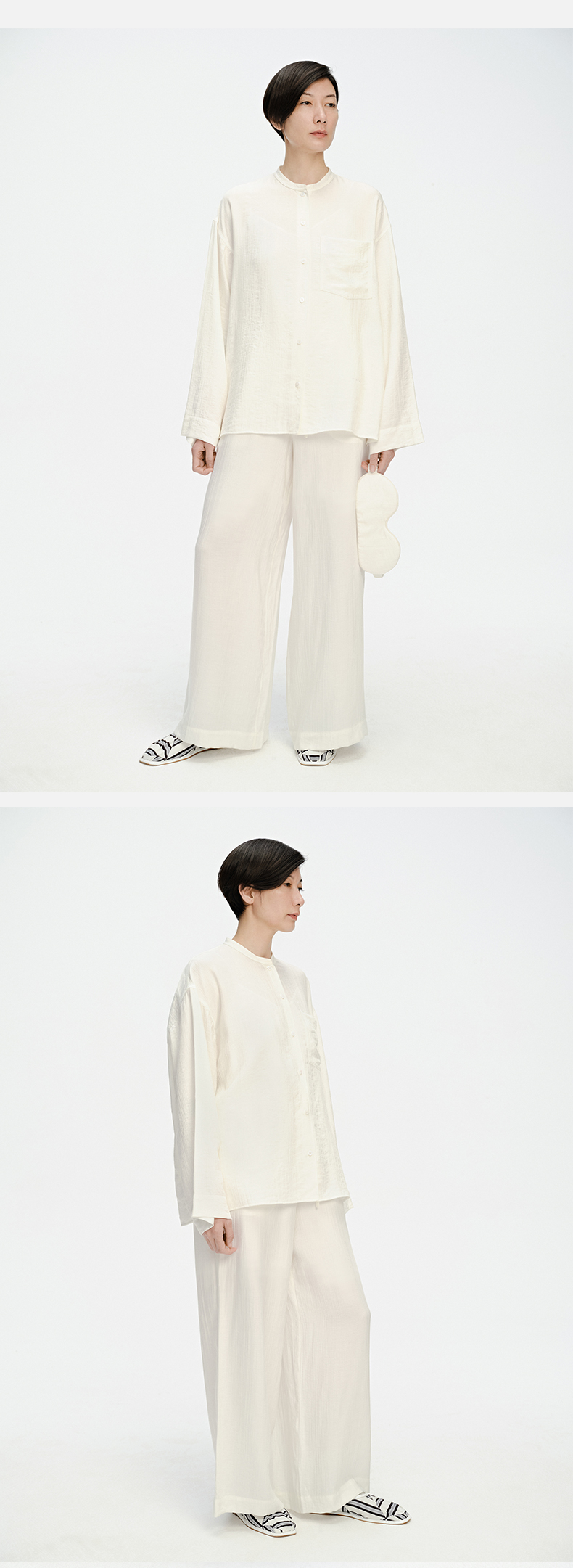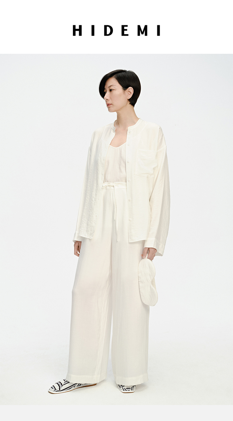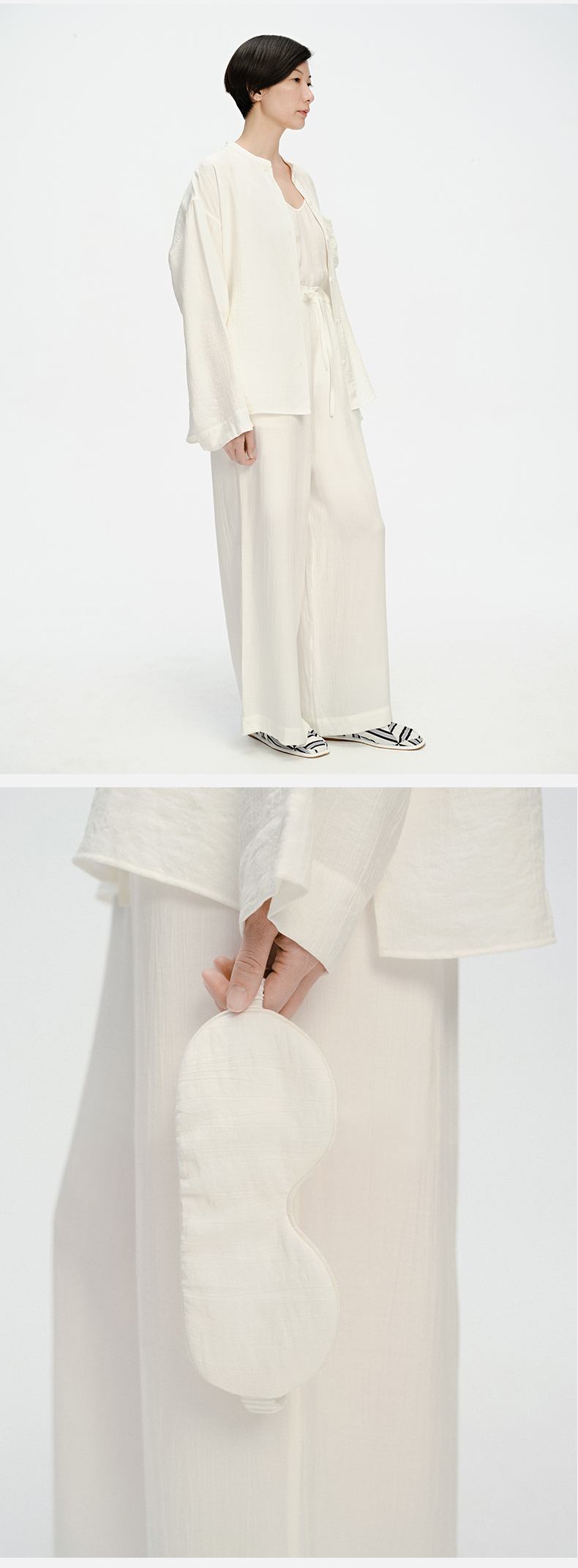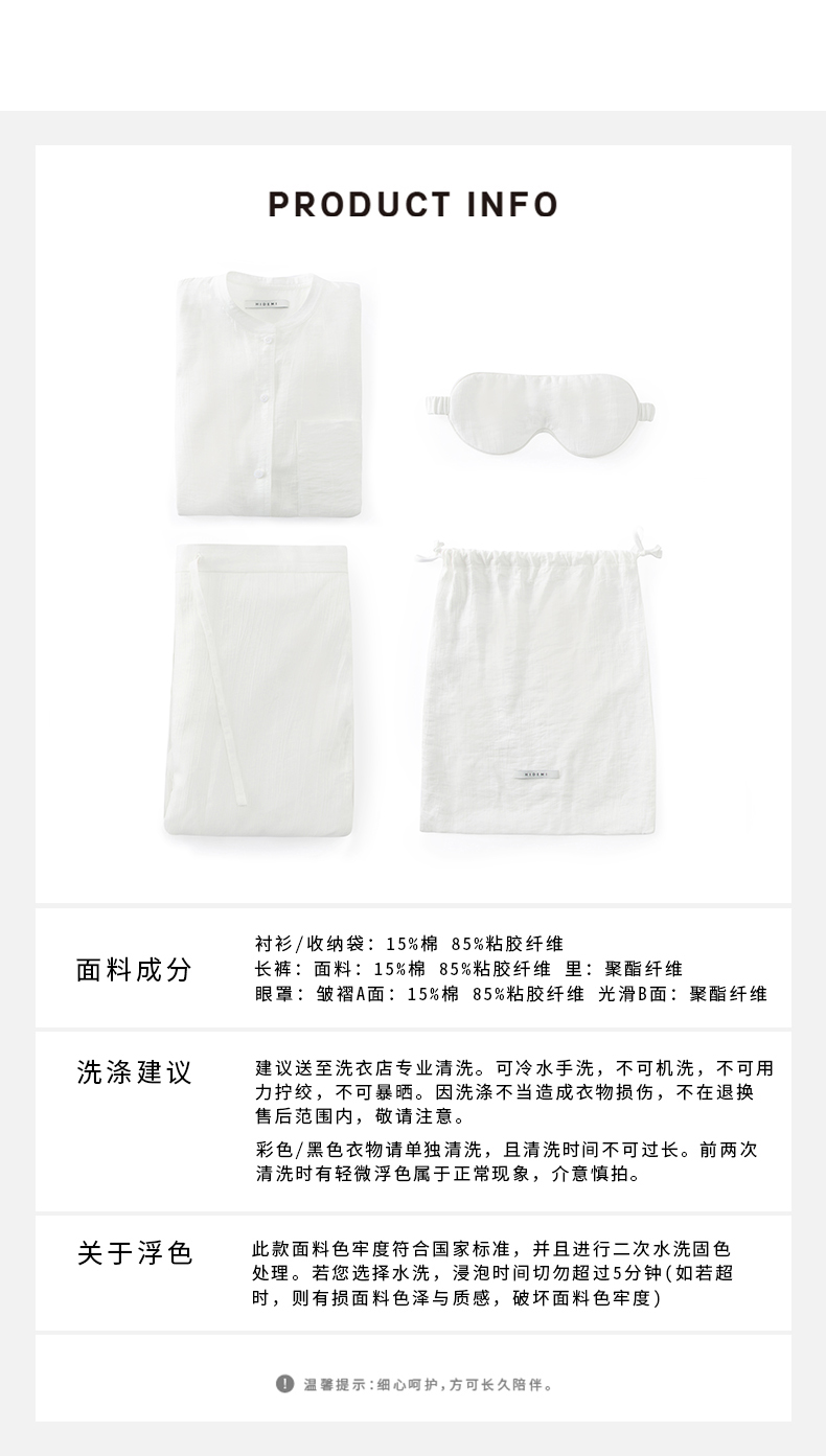 HIDEMI家居系列白色肌理感垂顺缎面睡衣套装//一套附赠眼罩+随行袋