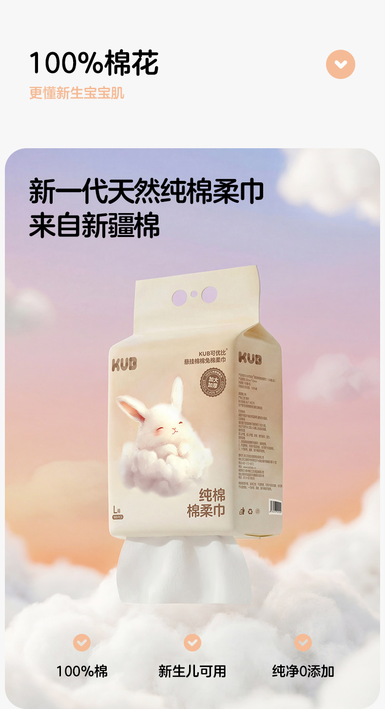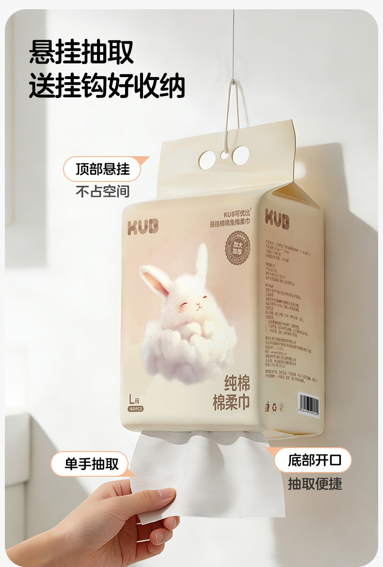 [全棉悬挂款]可优比婴儿棉柔巾新生儿专用加厚洗脸巾干湿两用纯棉悬挂