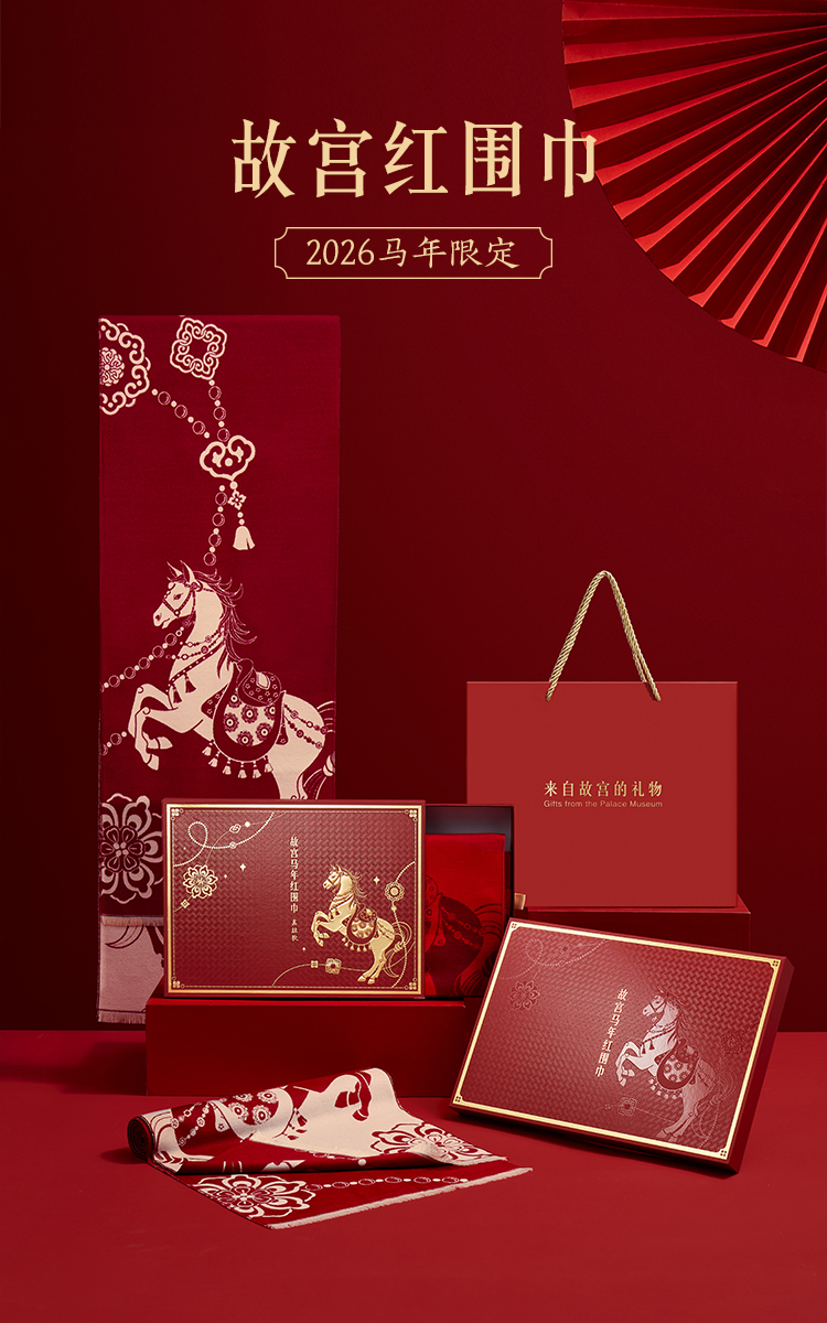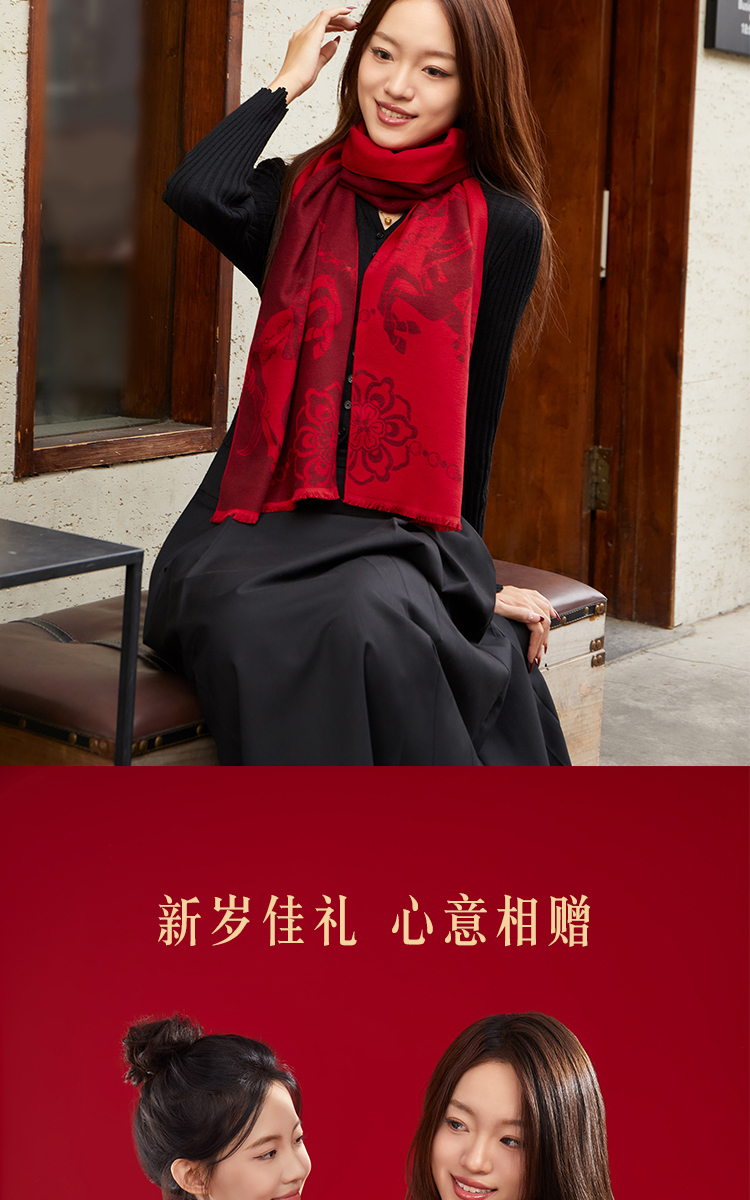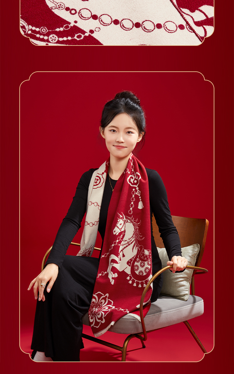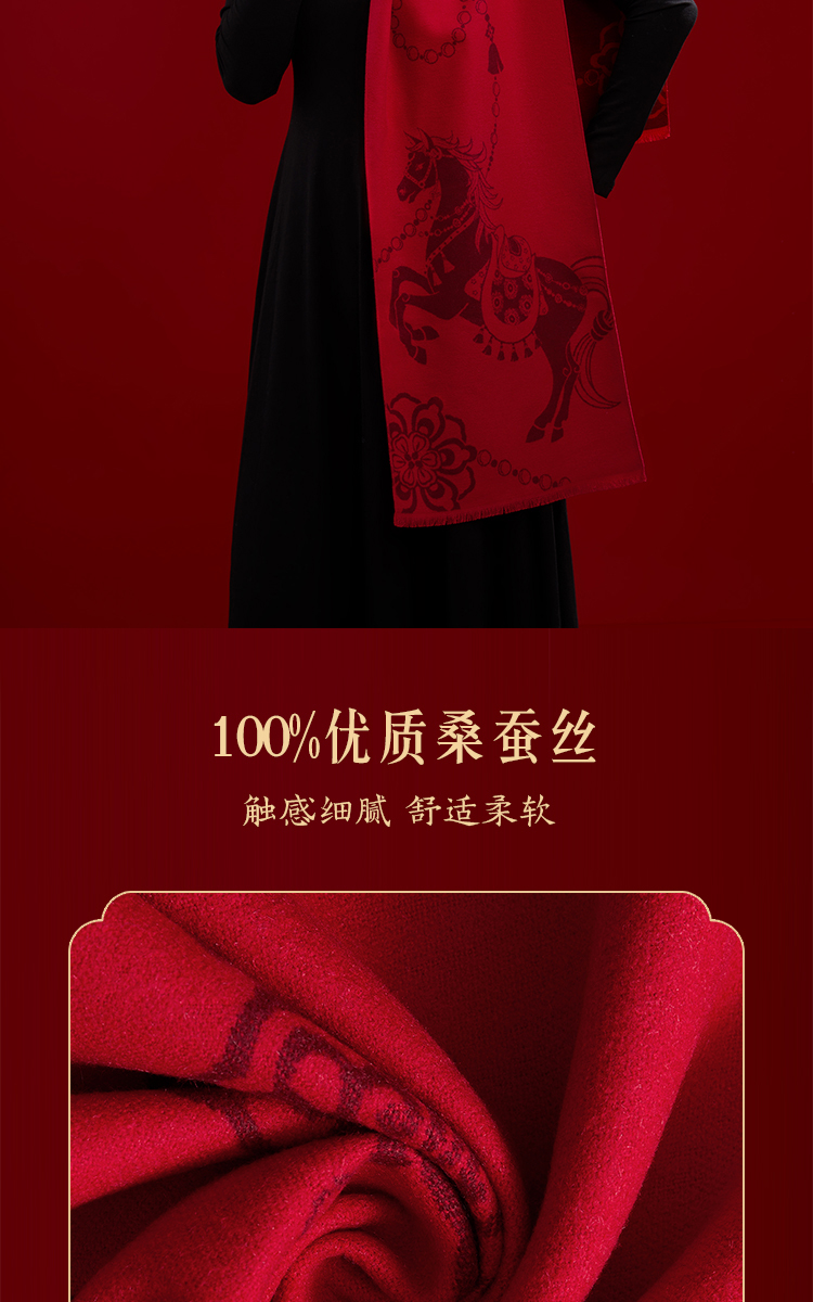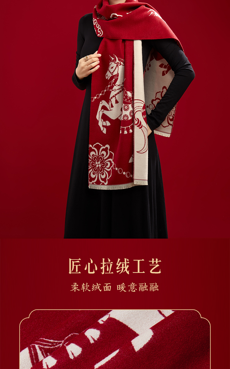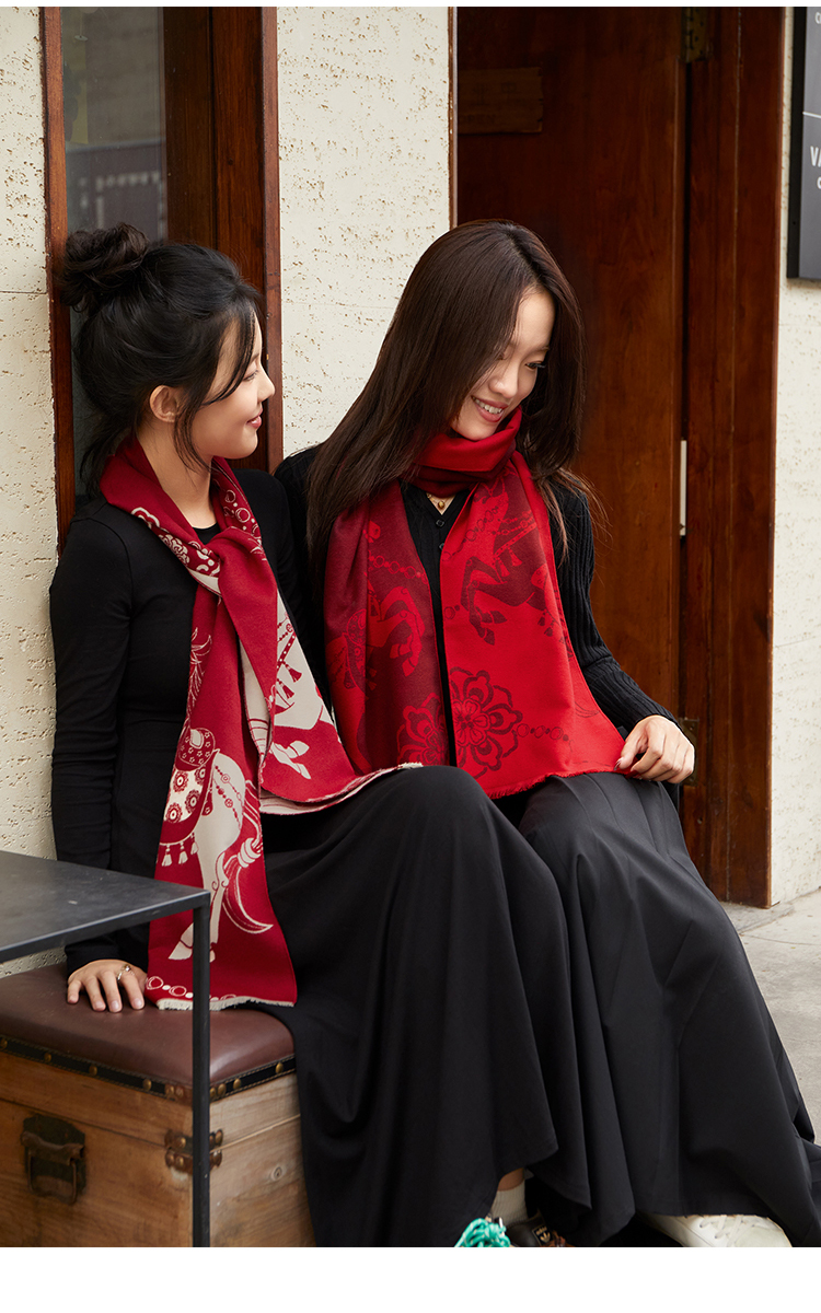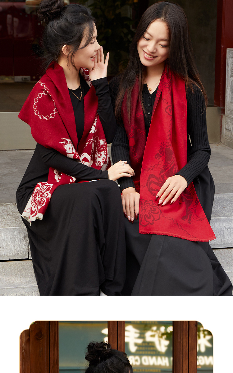 【故宫围巾】故宫马年红色围巾桑蚕丝披肩本命年新婚结婚订婚礼物