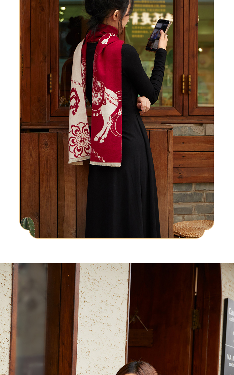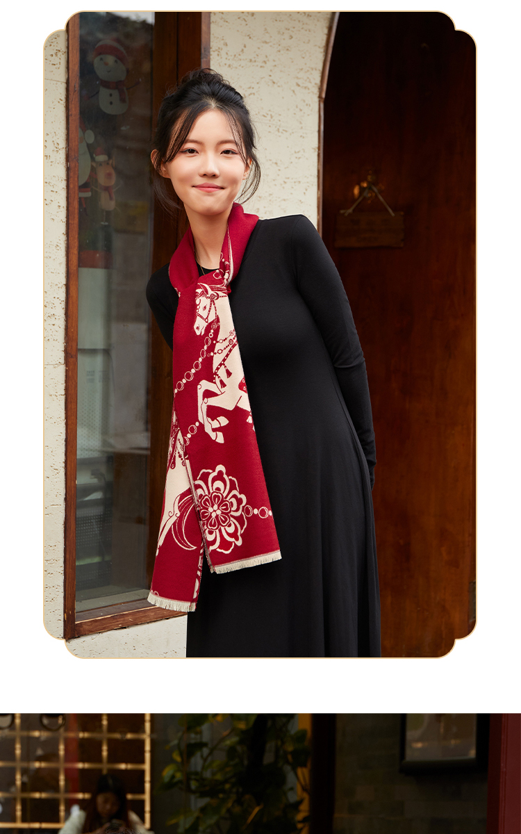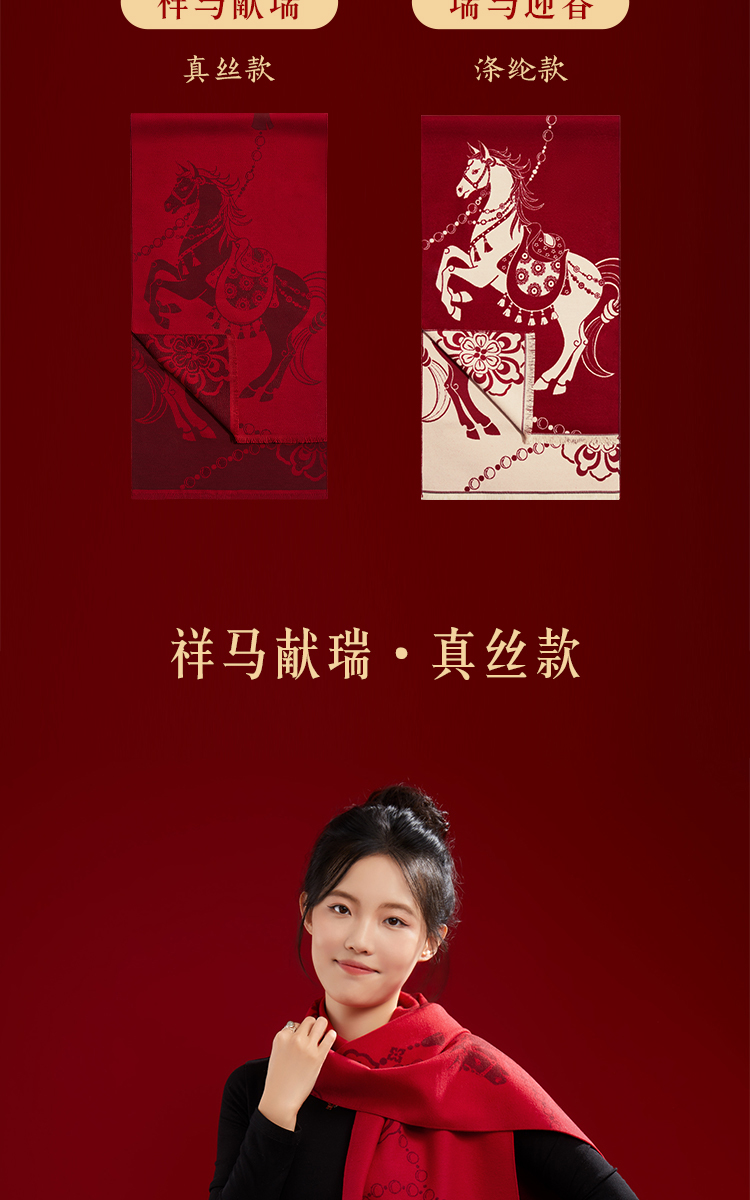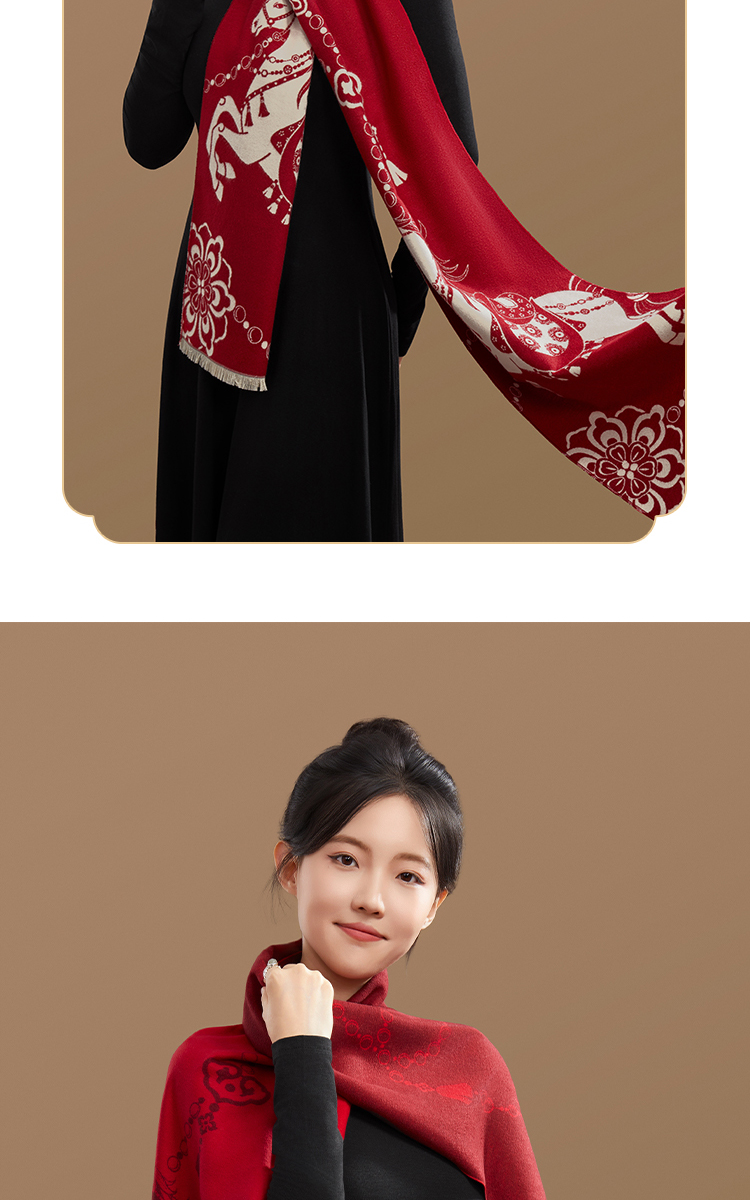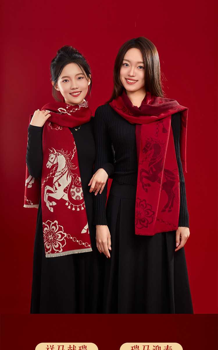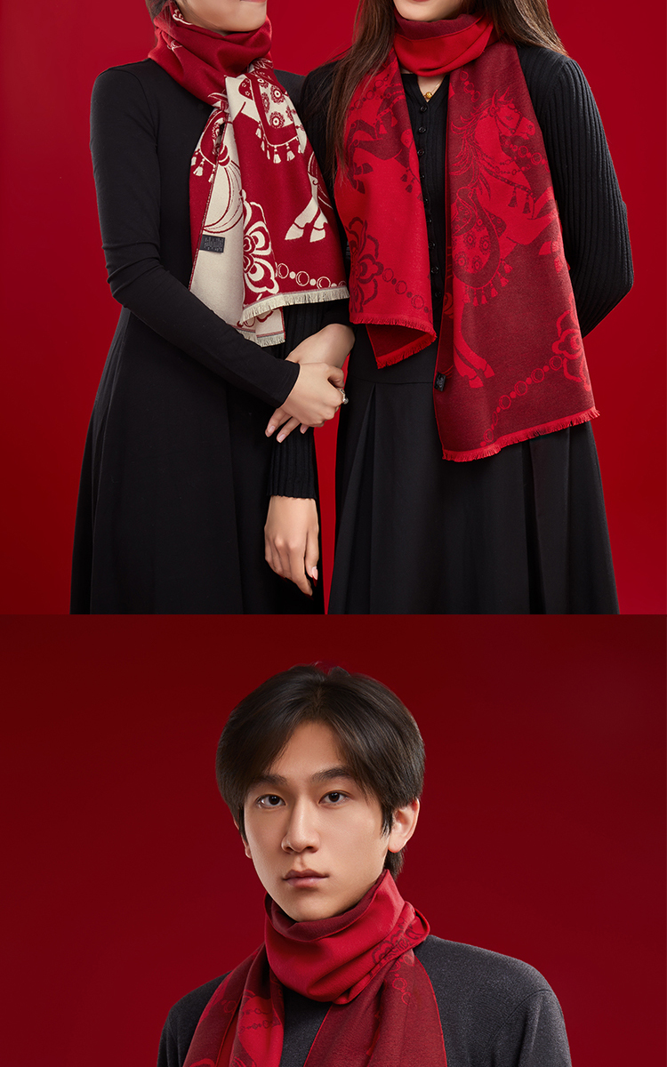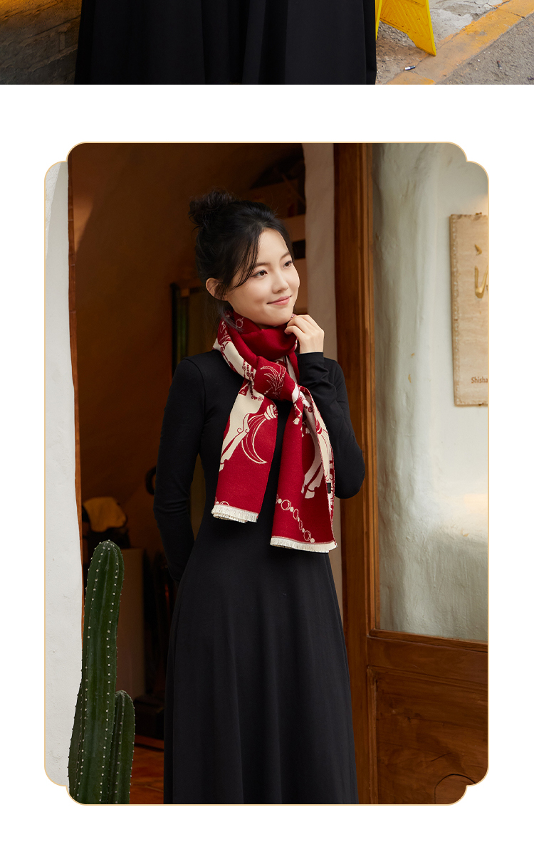 【故宫围巾】故宫马年红色围巾桑蚕丝披肩本命年新婚结婚订婚礼物