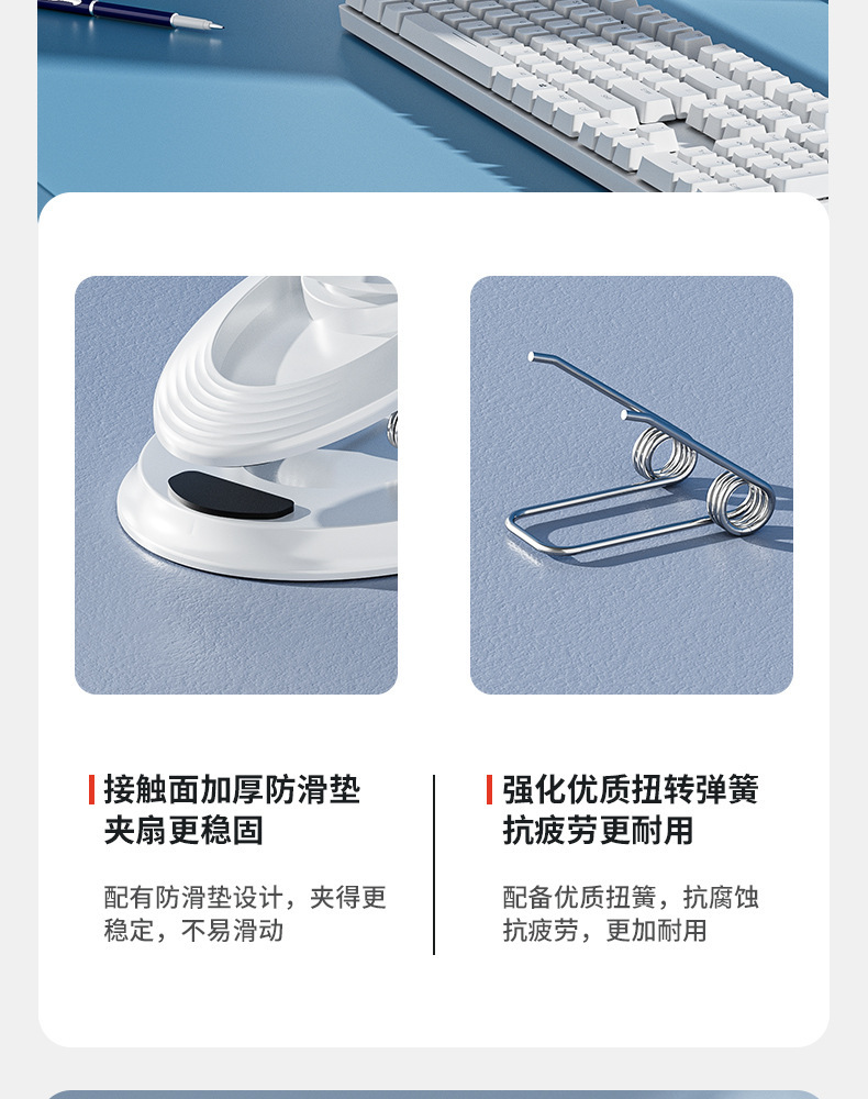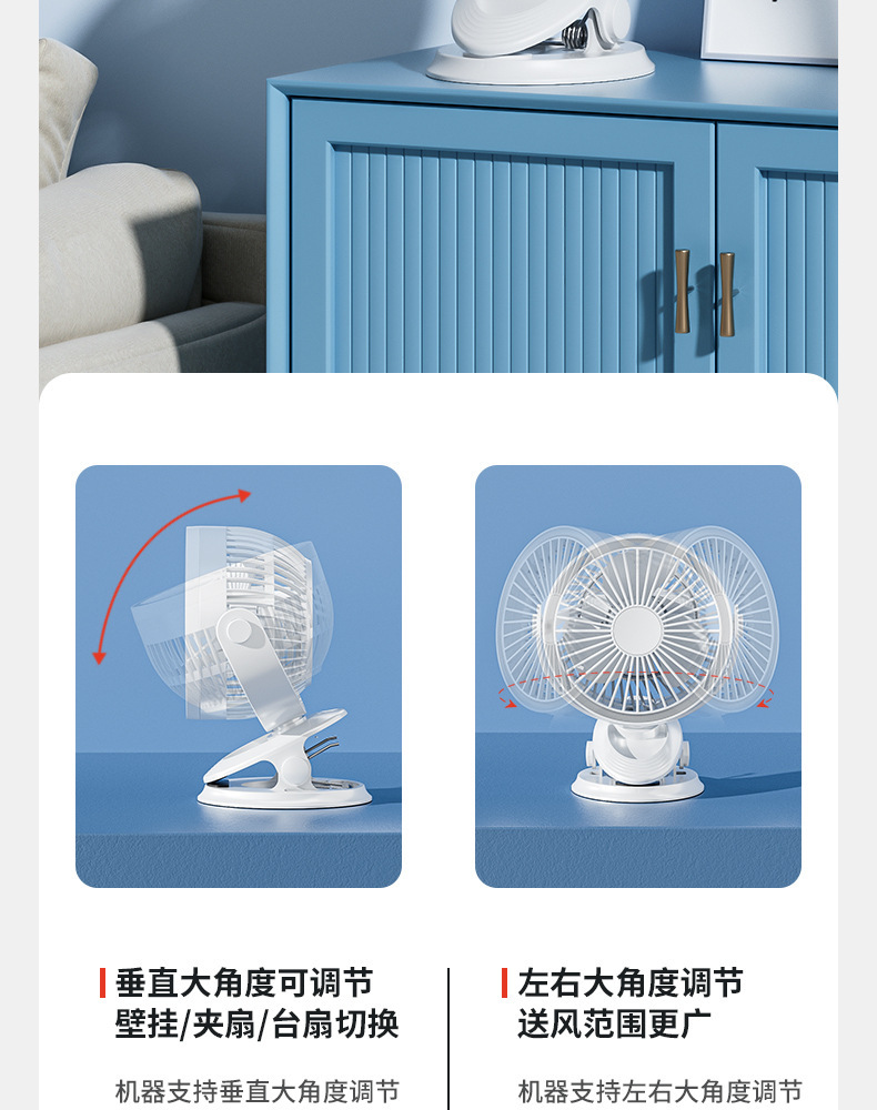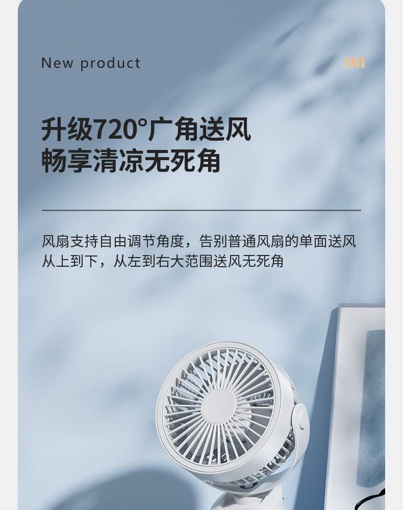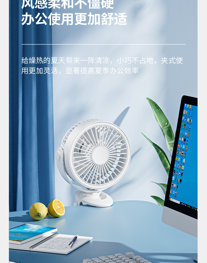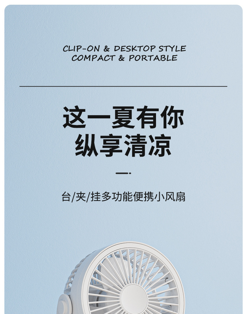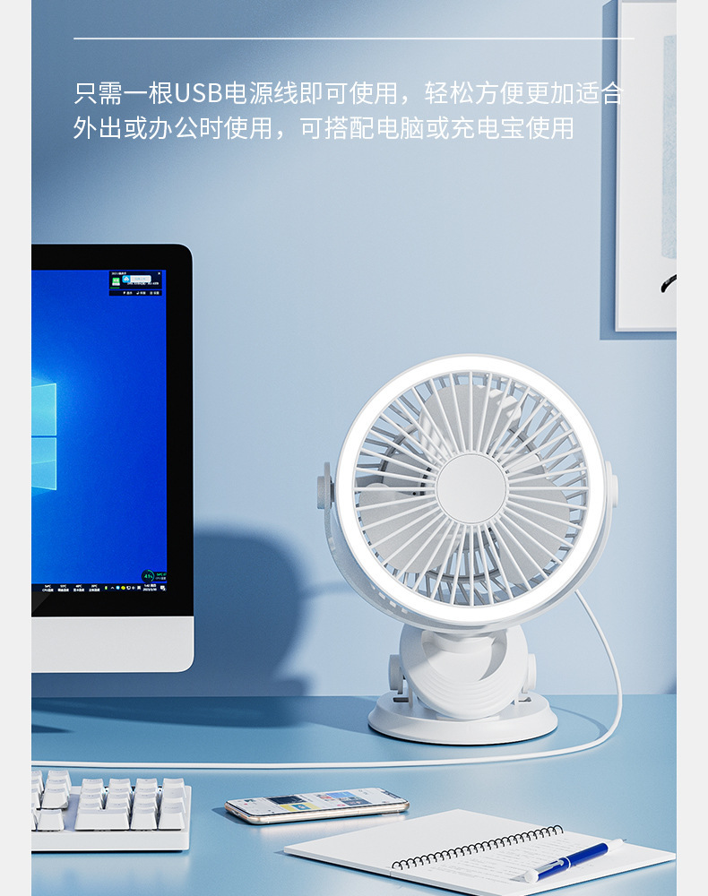 【这一夏有你,畅享清凉无死角!】严选带夜灯大风力 USB充电夹子 台式电风扇 户外露营桌面静音小风扇!-QA