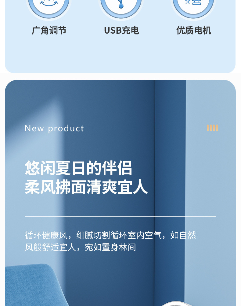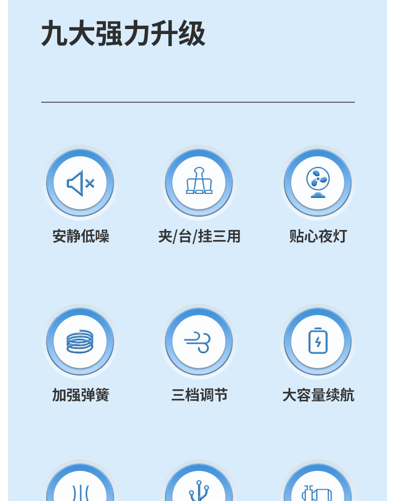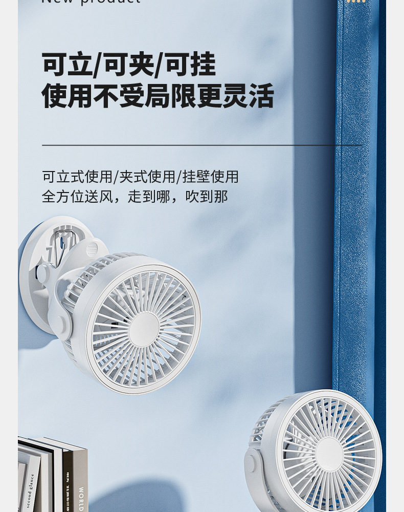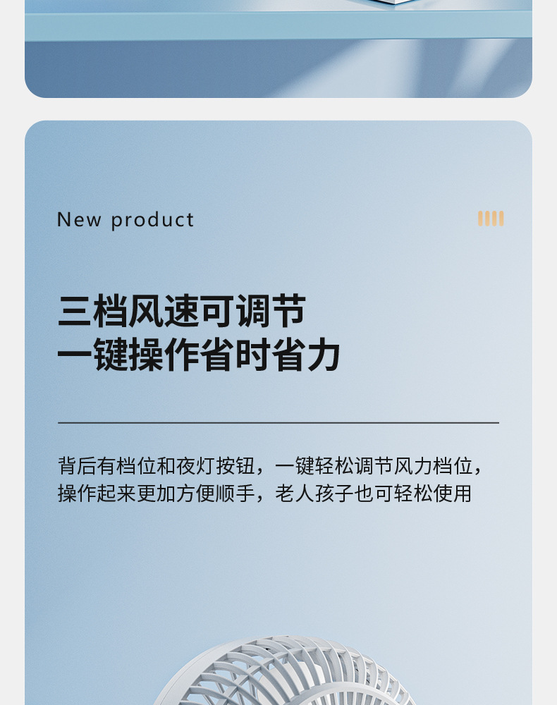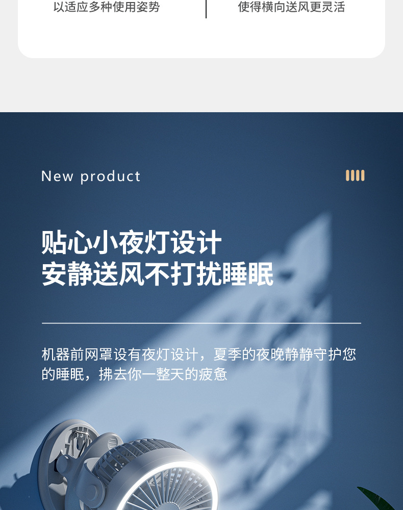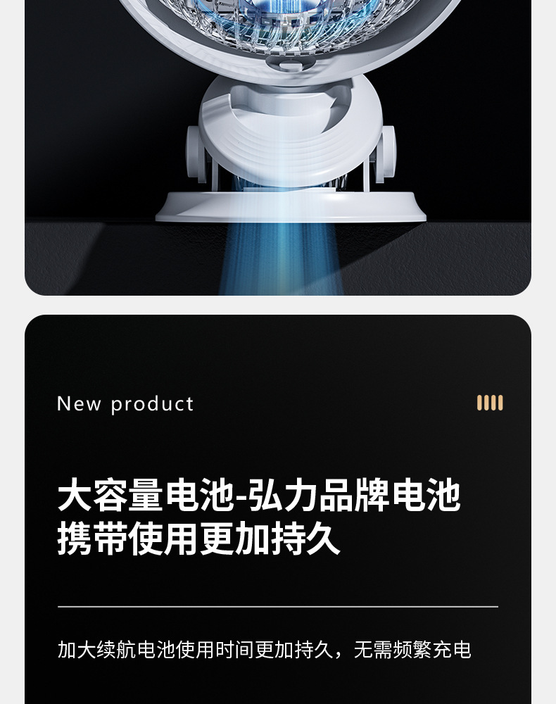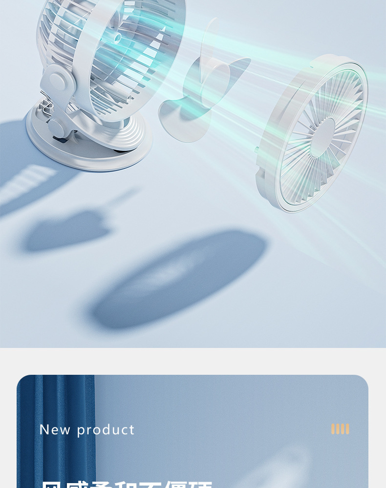 【这一夏有你,畅享清凉无死角!】严选带夜灯大风力 USB充电夹子 台式电风扇 户外露营桌面静音小风扇!-QA