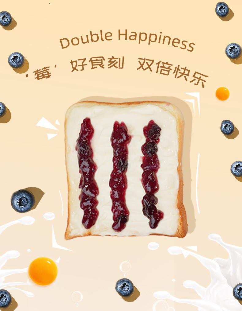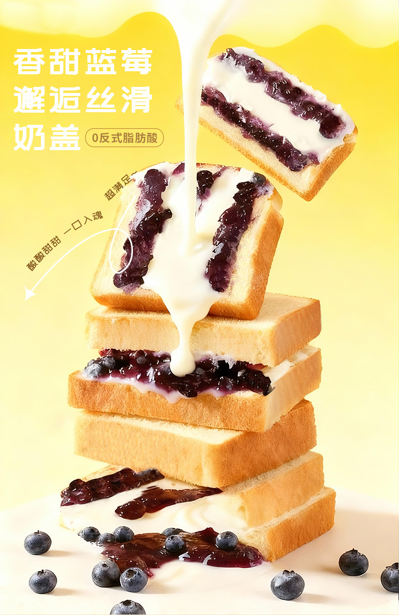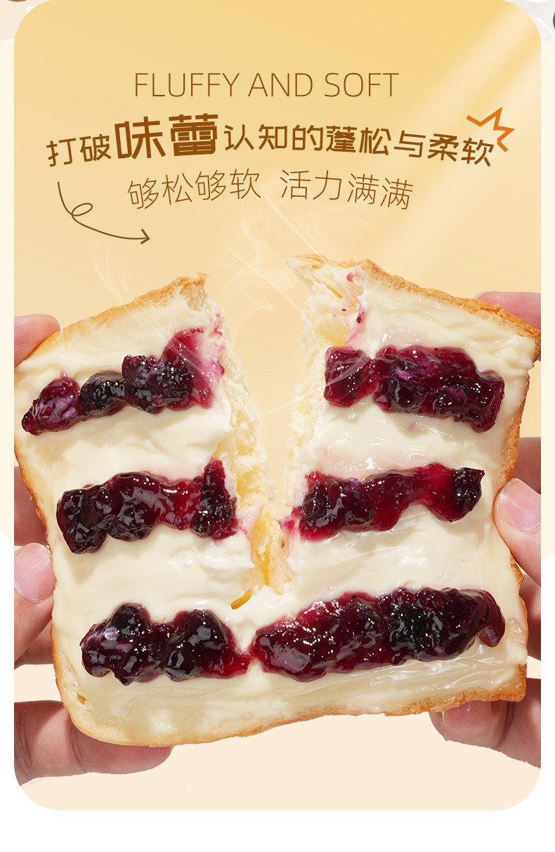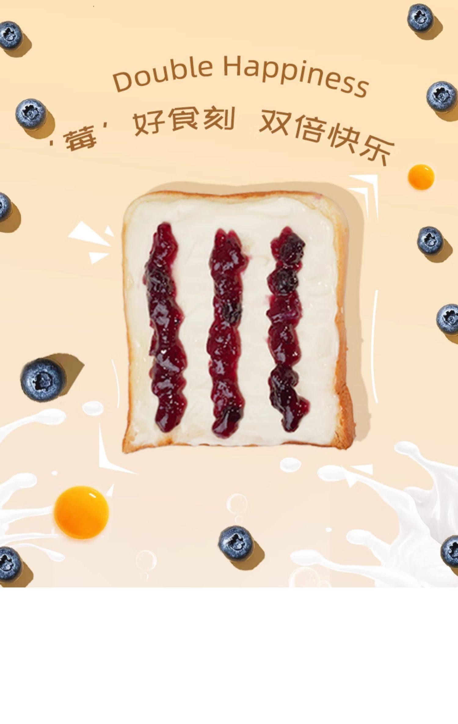 小饿小满足蓝莓奶盖吐司 香甜蓝莓酱遇上丝滑奶盖 口感柔软细腻