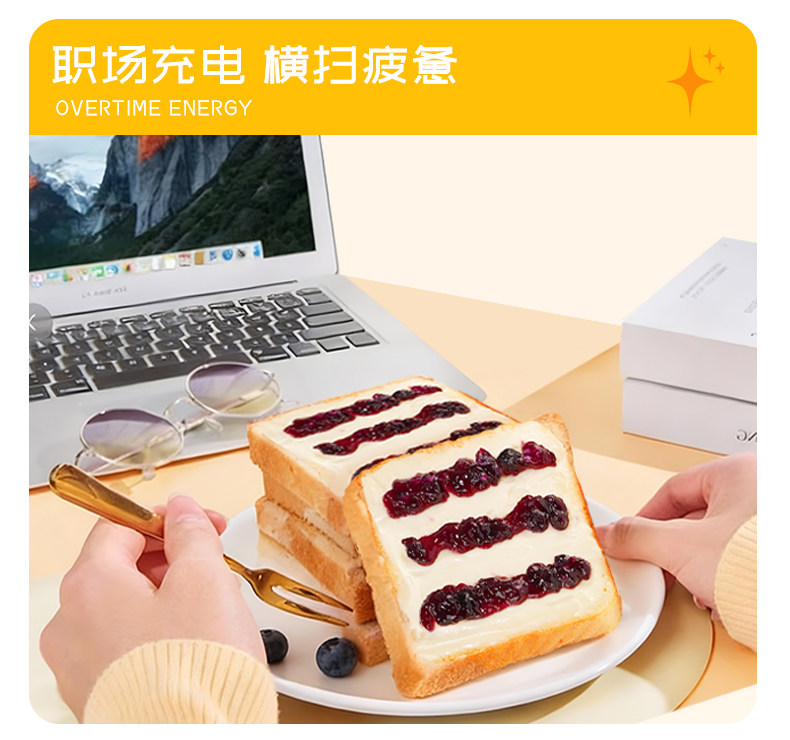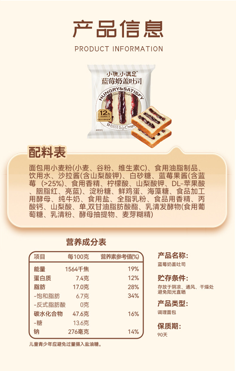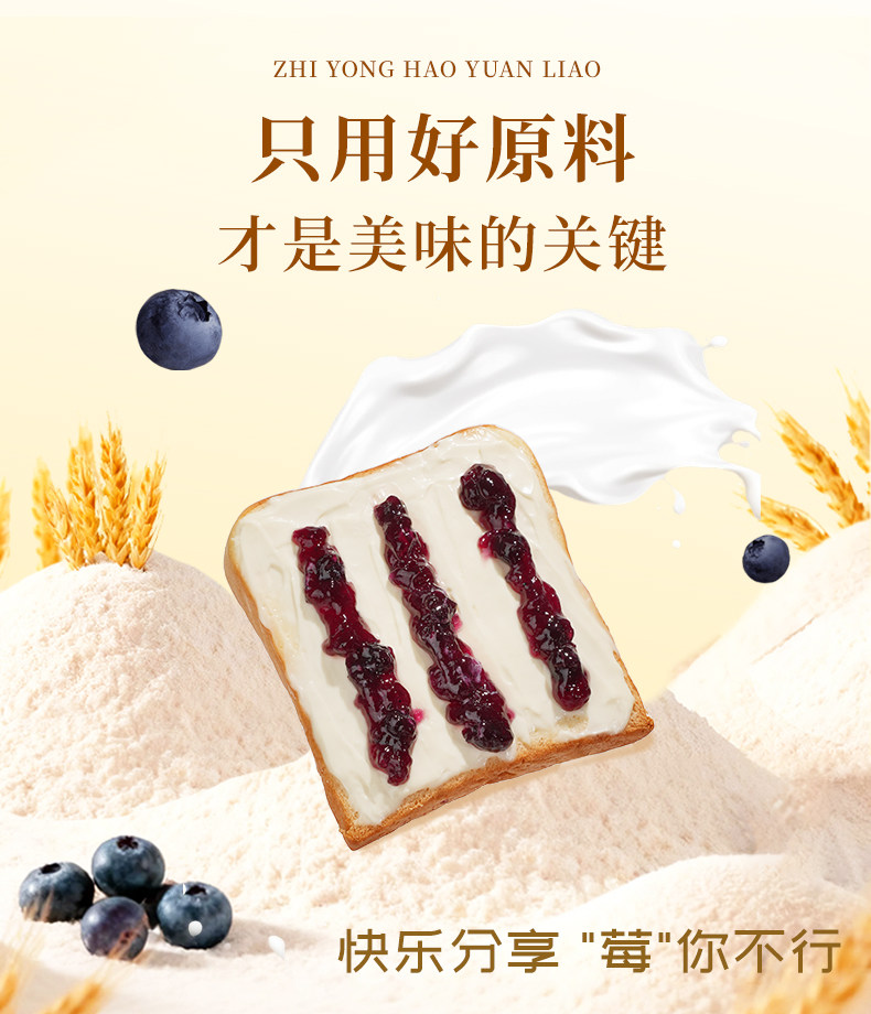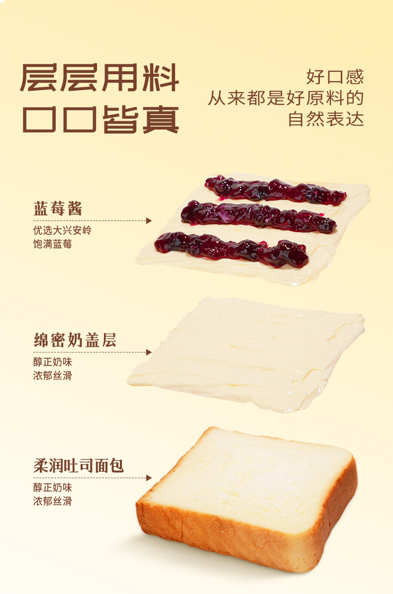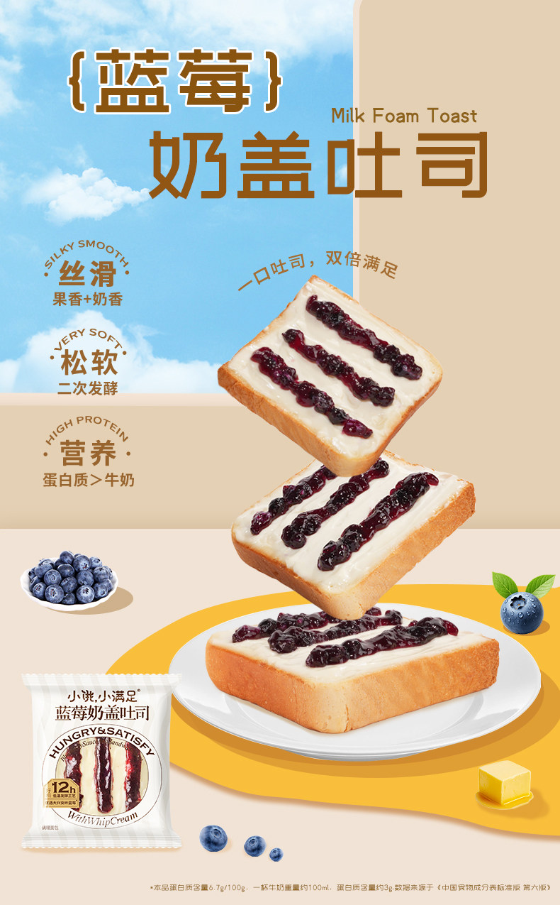 小饿小满足蓝莓奶盖吐司 香甜蓝莓酱遇上丝滑奶盖 口感柔软细腻