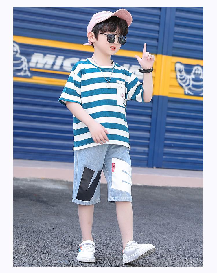 男童夏装短袖套装2023新款洋气男孩宝宝衣服潮儿童时髦帅气两件套