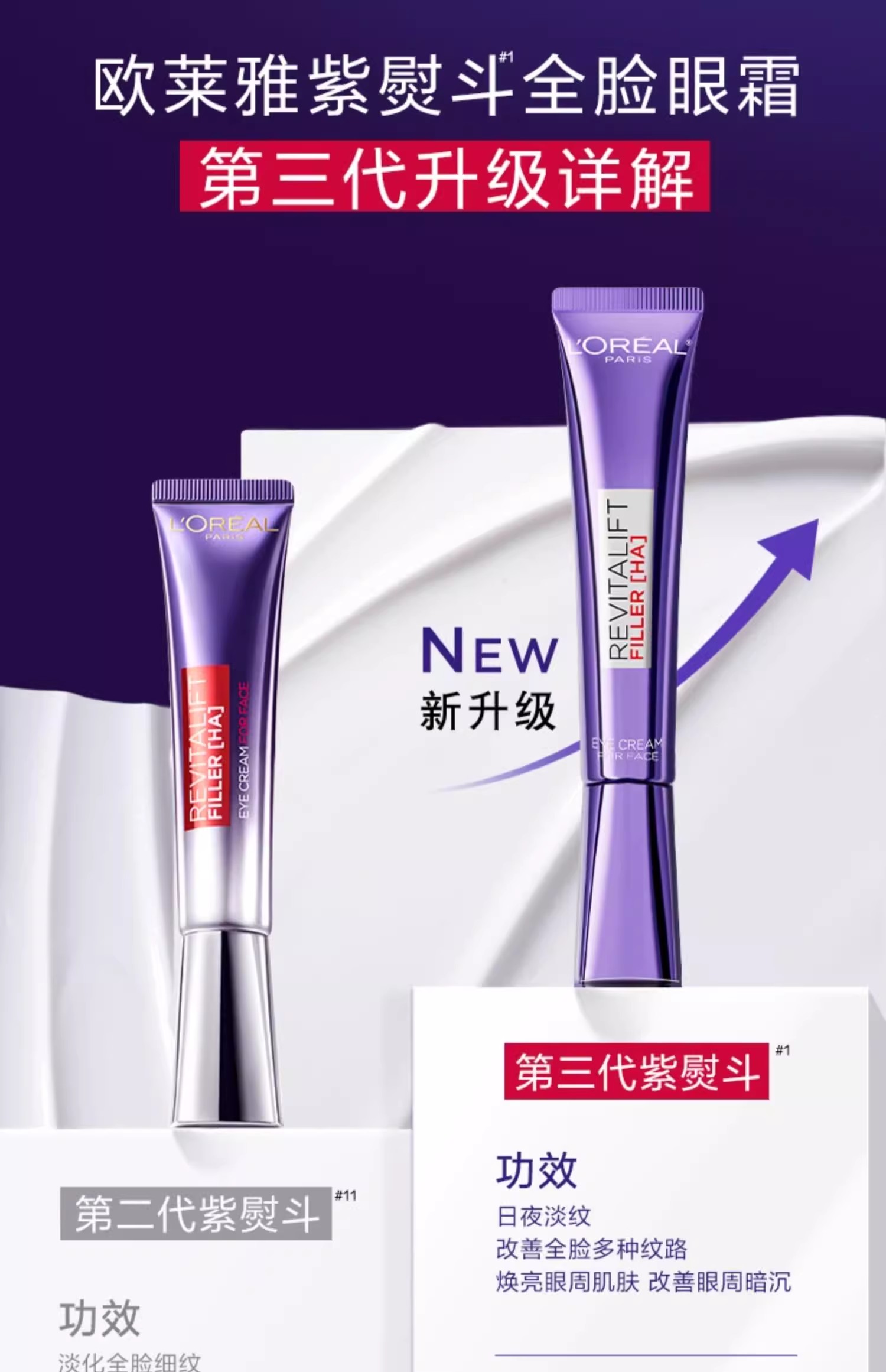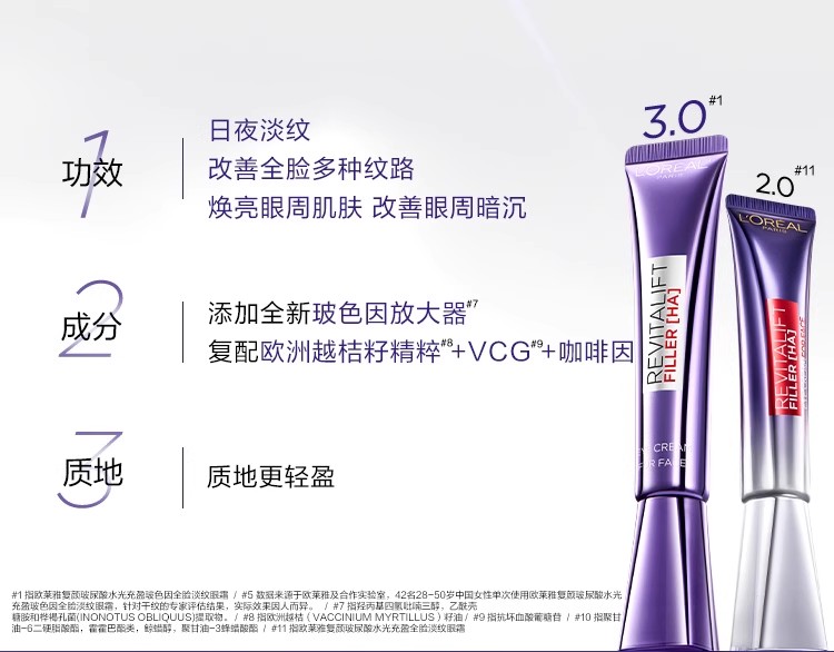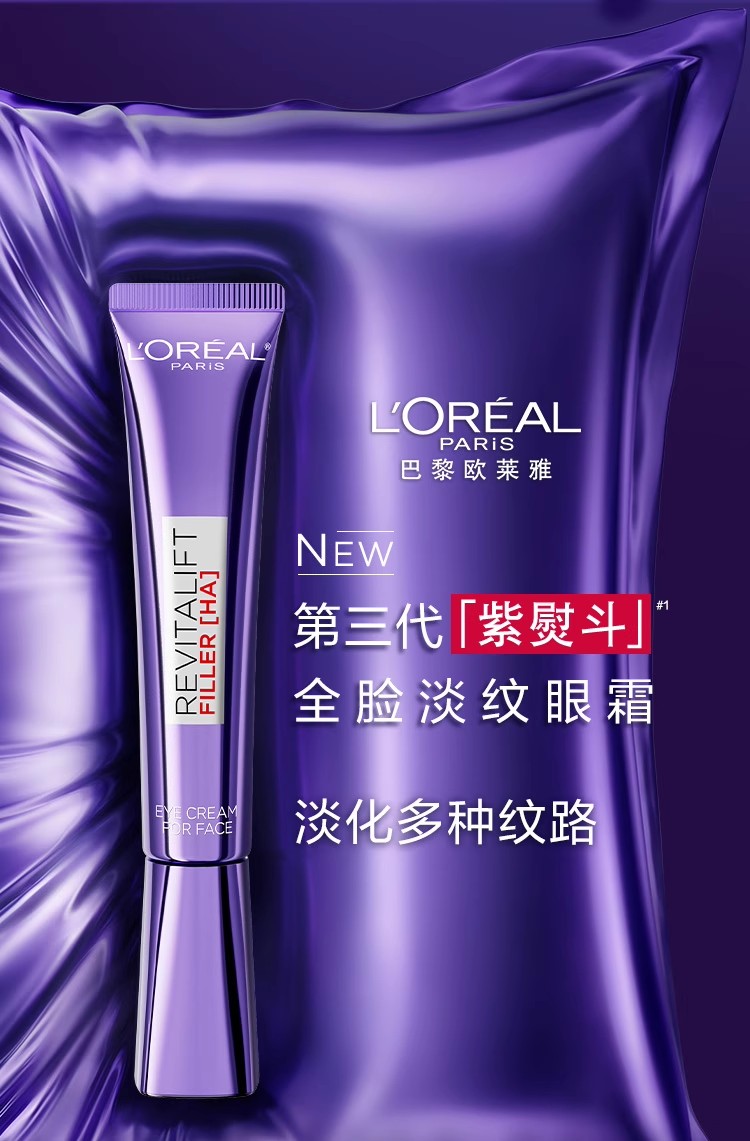 欧莱雅全新第三代紫熨斗眼霜眼周淡纹30ml