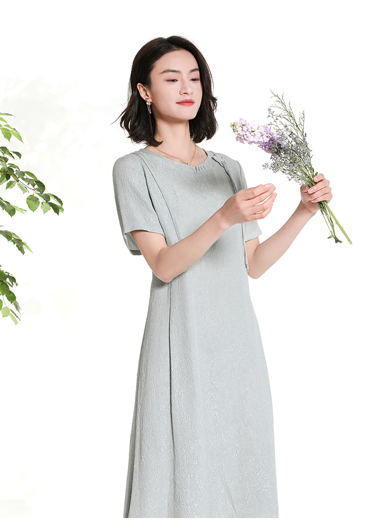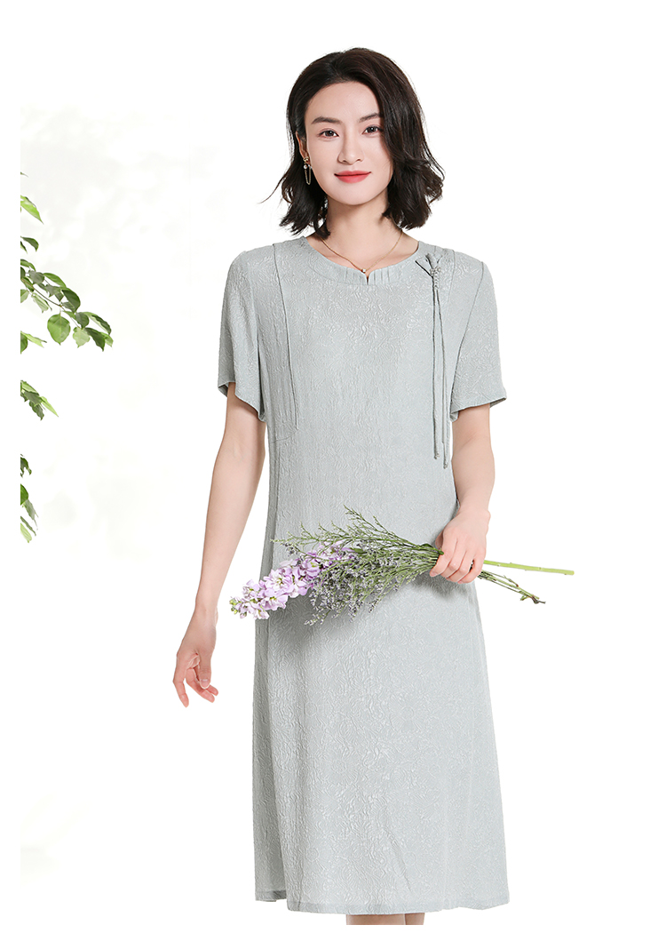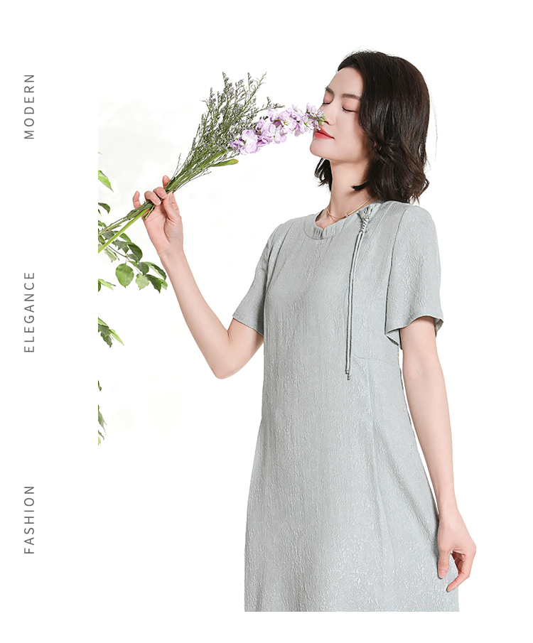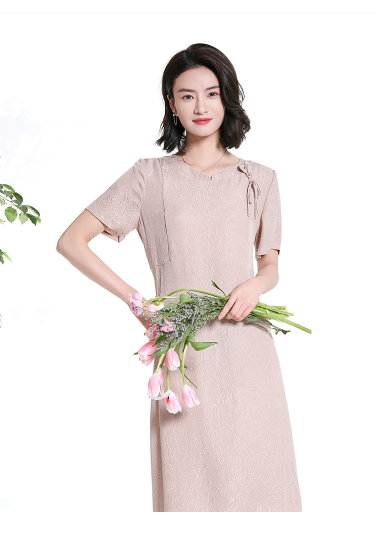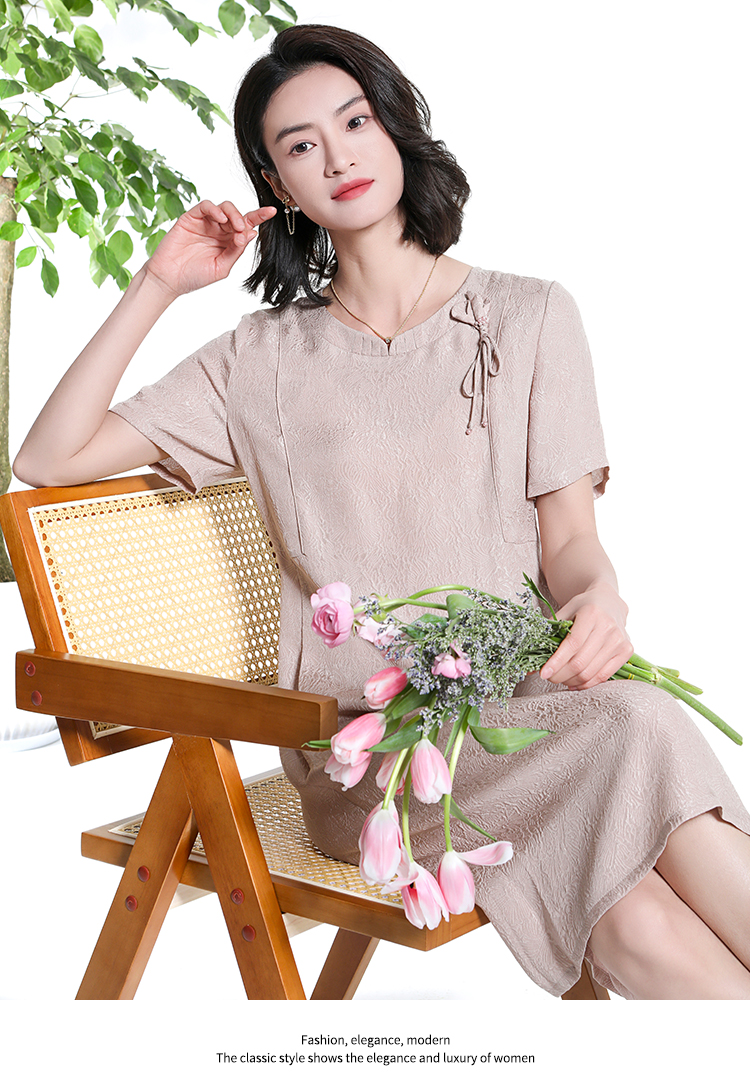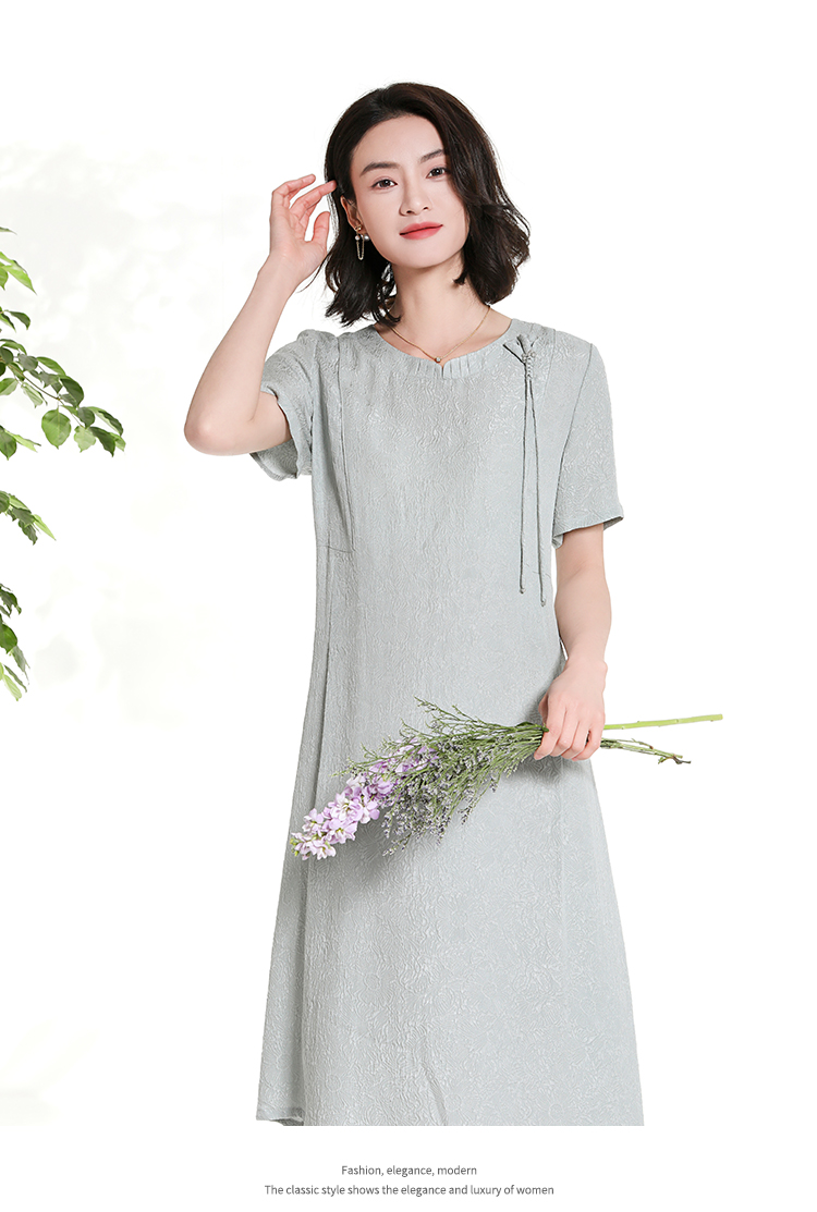 佐尔美夏季新款新中式国风时尚气质桑蚕丝短袖连衣裙女M42LS98