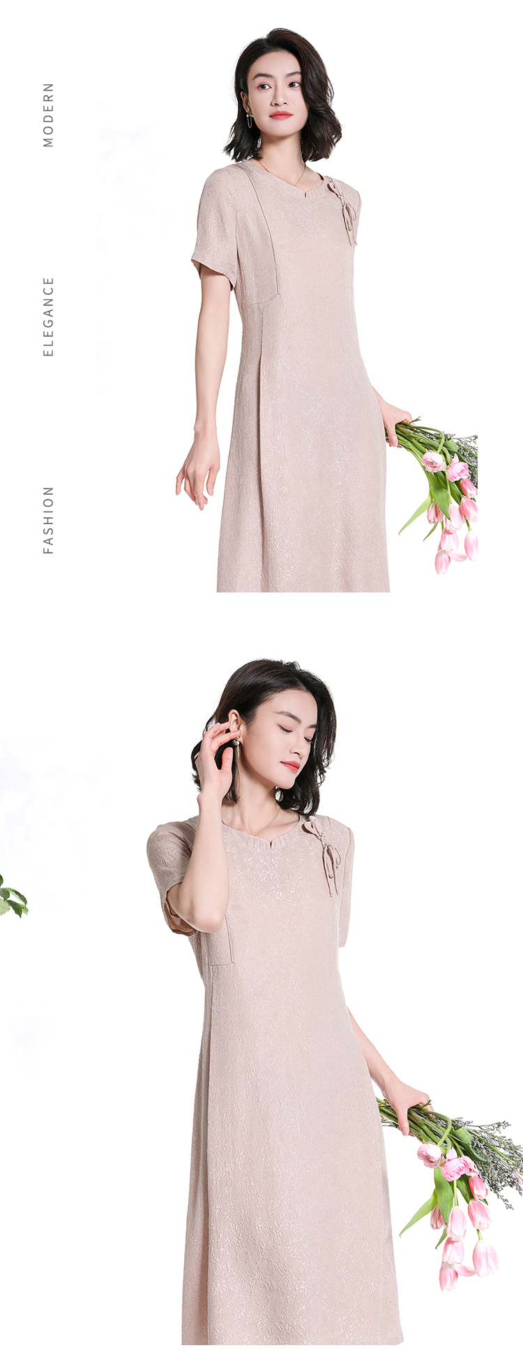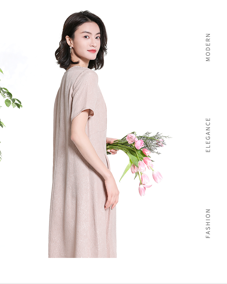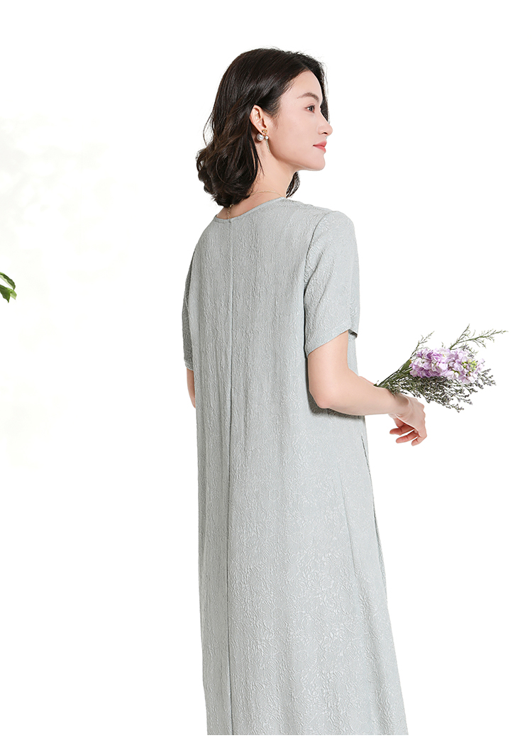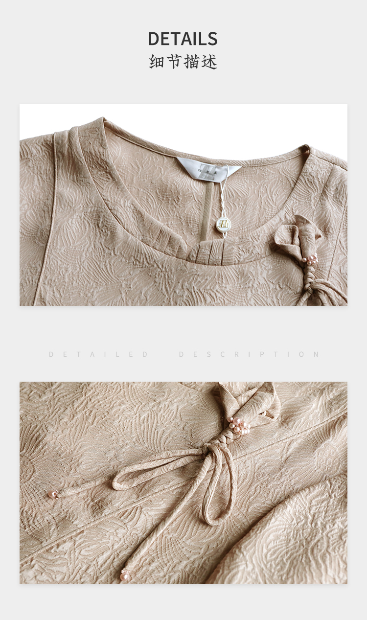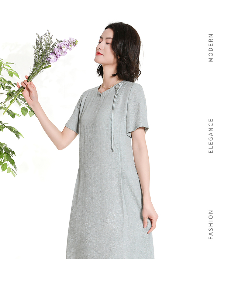 佐尔美夏季新款新中式国风时尚气质桑蚕丝短袖连衣裙女M42LS98