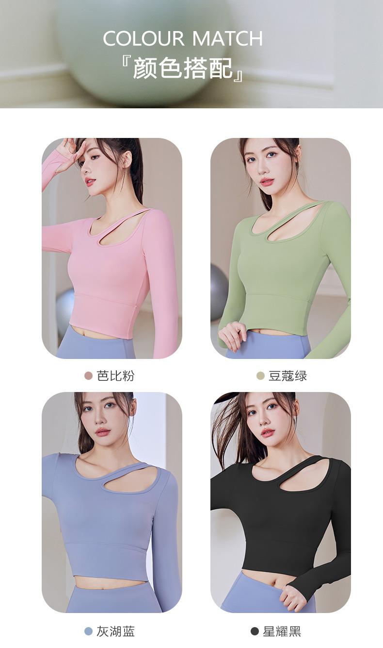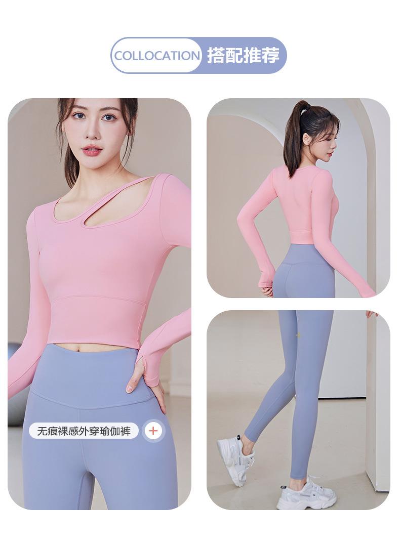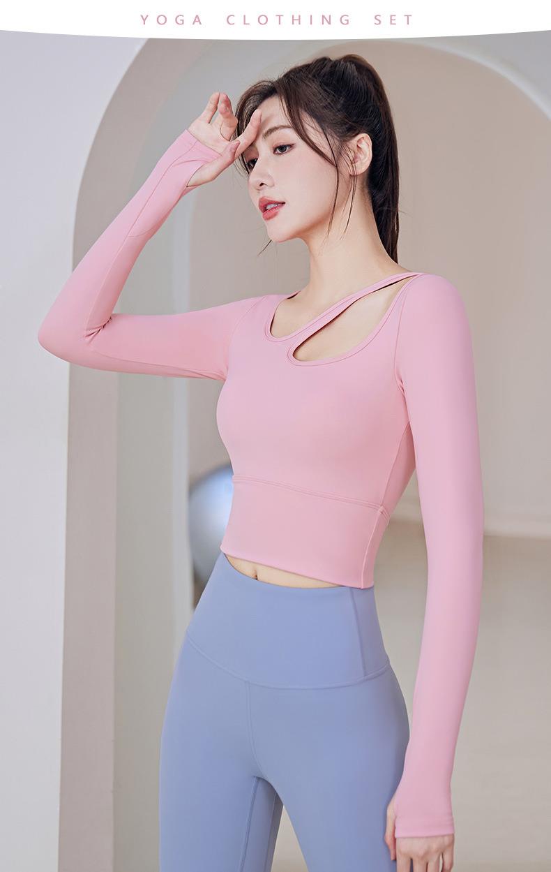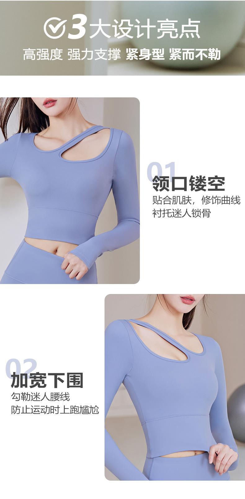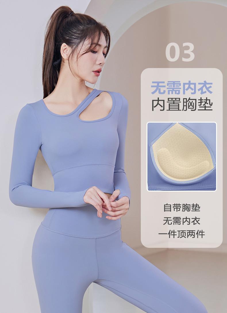 聚衣堂带胸垫圆领健身跑步运动普拉提训练紧身长袖瑜伽服上衣