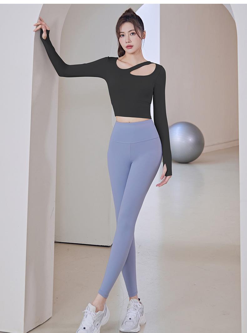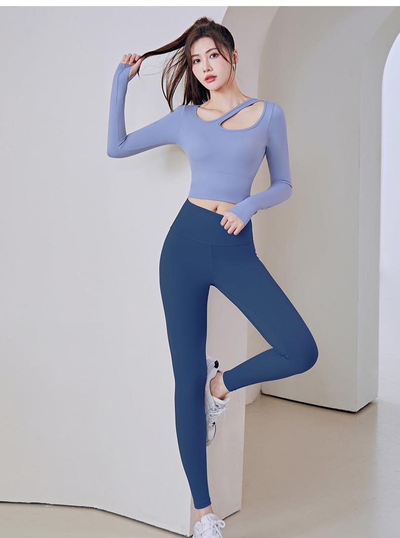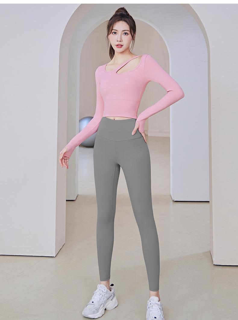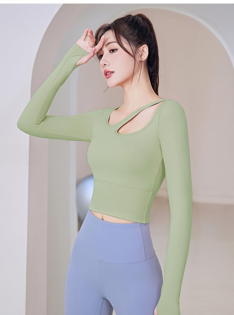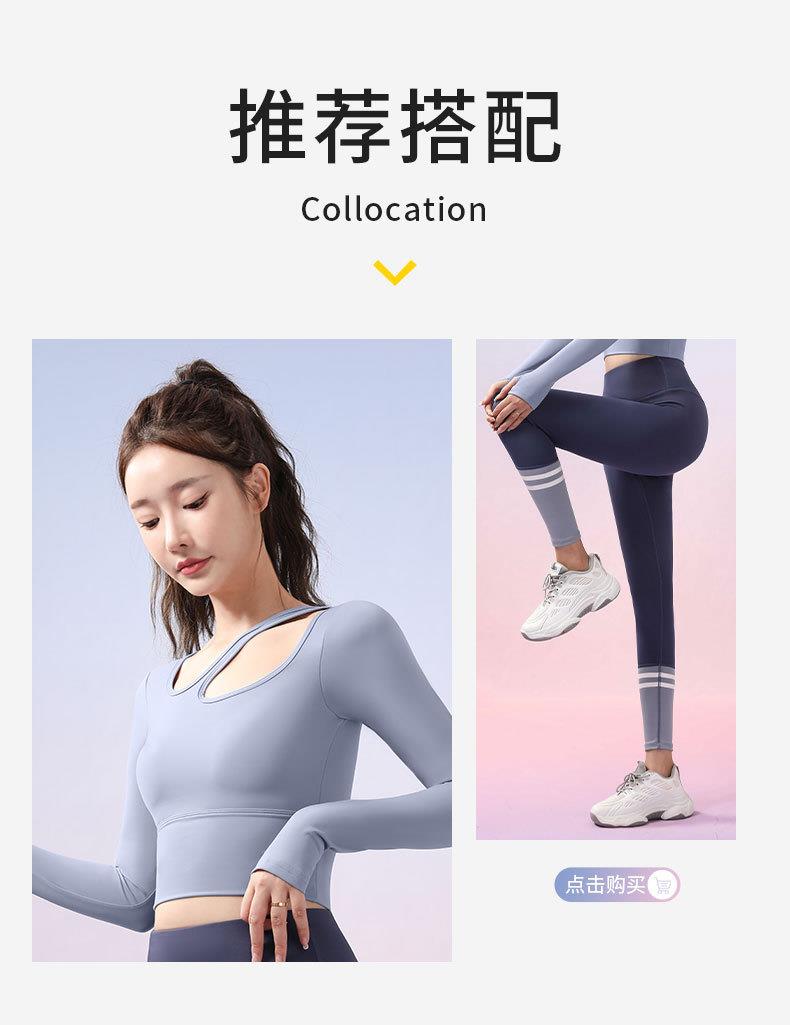 聚衣堂带胸垫圆领健身跑步运动普拉提训练紧身长袖瑜伽服上衣