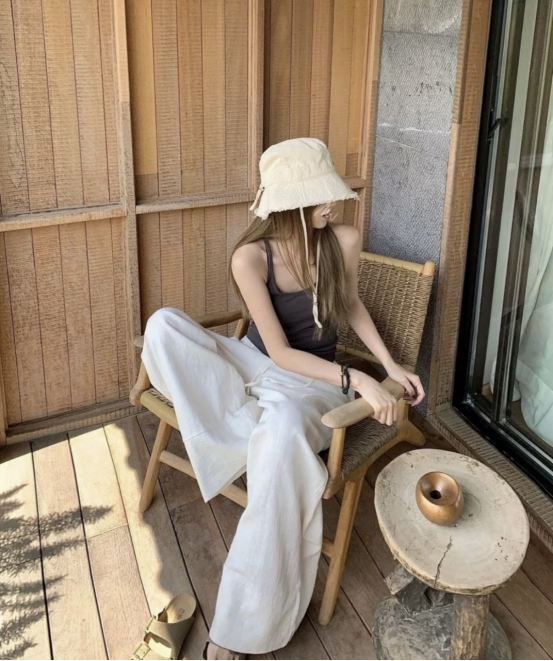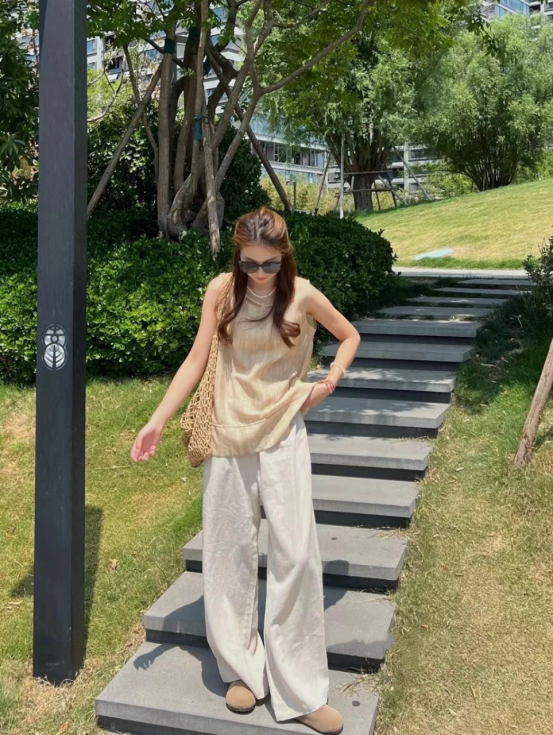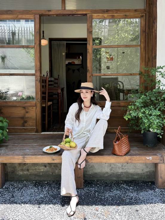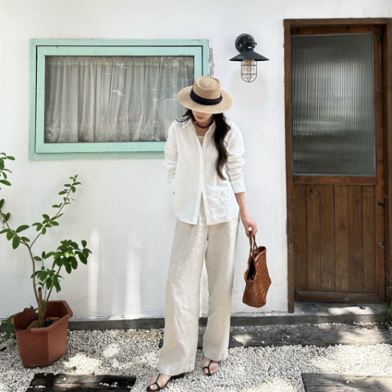 团长碎碎念 没有张扬的Logo,不追瞬息的潮流 一条亚麻阔腿裤用天然肌理与松弛剪裁 写下老钱风最懂行的注解 微风掠过裤管的褶皱,是夏日凉意 也是松弛与慵懒的天然层次 亚麻的天然孔隙结构 让每一寸肌肤都在呼吸 高温天也不闷汗,自带空调效果! 微拖地长度+流畅A型廓形 拉长腿型于无声 亚麻天然褶皱正是其灵魂所在 若追求极度平整反而失了韵味 ——真正的老钱 连裤子的褶皱都透着精心打理过的随意!