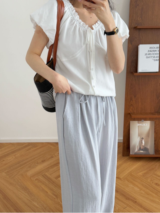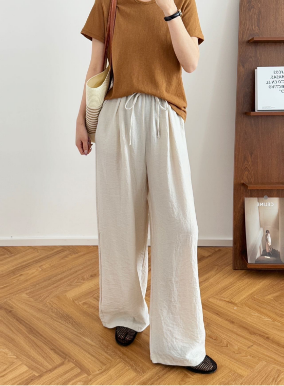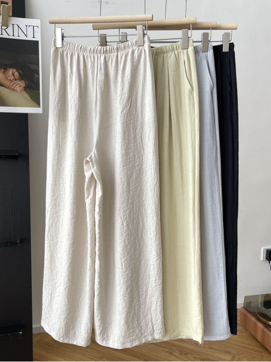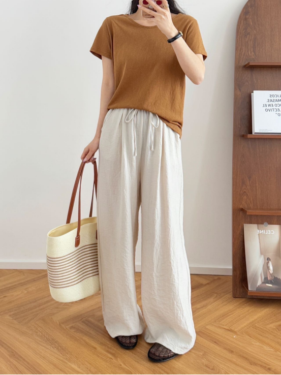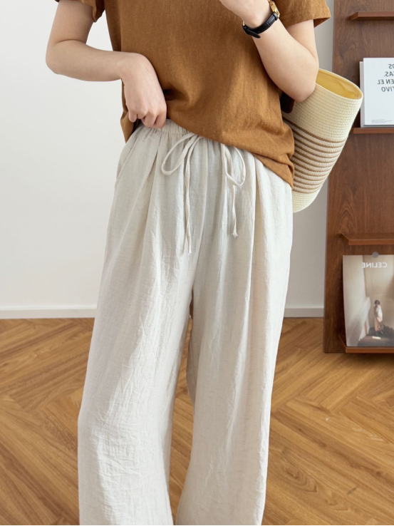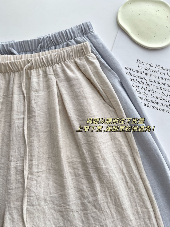 🌸穿不腻的「隐形贵气」💰亚麻自带清凉buff❗【老钱风亚麻阔腿裤】💕裤身自带松弛“富贵皱”,带着野生的呼吸感,🍑越穿越有故事❗