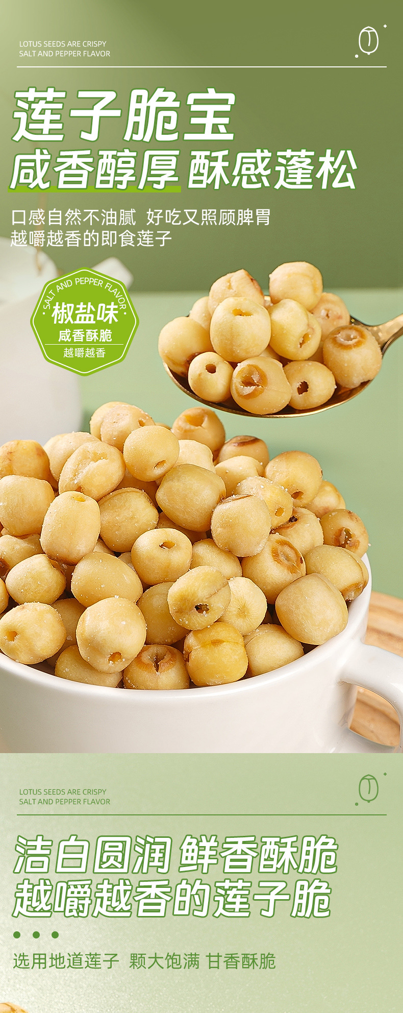 【脾胃新宠❗️去芯莲子脆宝】开袋即食,好吃又照顾脾胃,越嚼越香的即食莲子40克/袋烤莲子椒盐味脱水蔬菜干儿童孕妇休闲零食