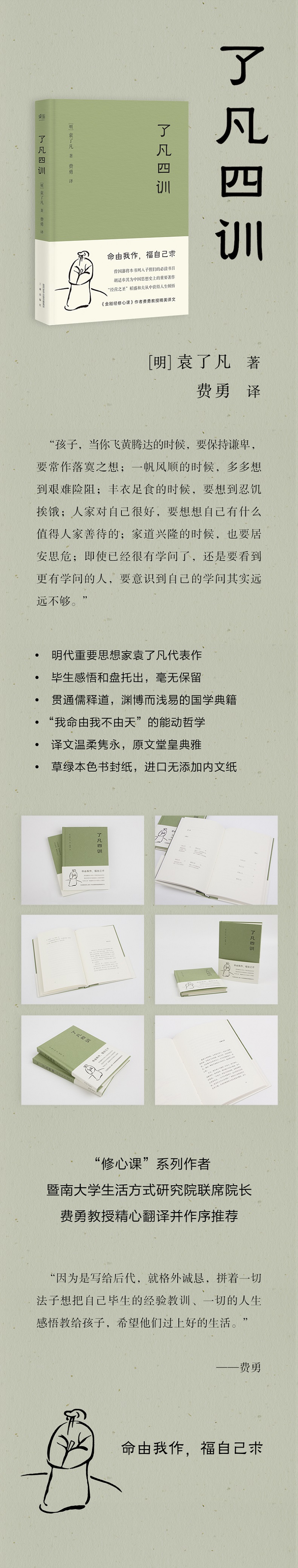 《了凡四训(精)》是明代思想家袁了凡留给子孙的家训,以毕生学识、经历与感悟为根基,谆谆讲授“我命由我不由天”的道理。行善事、得善果——以入世心劝人向善、谋求磊落的生活,堪为一部历久弥新的生活方式手册。