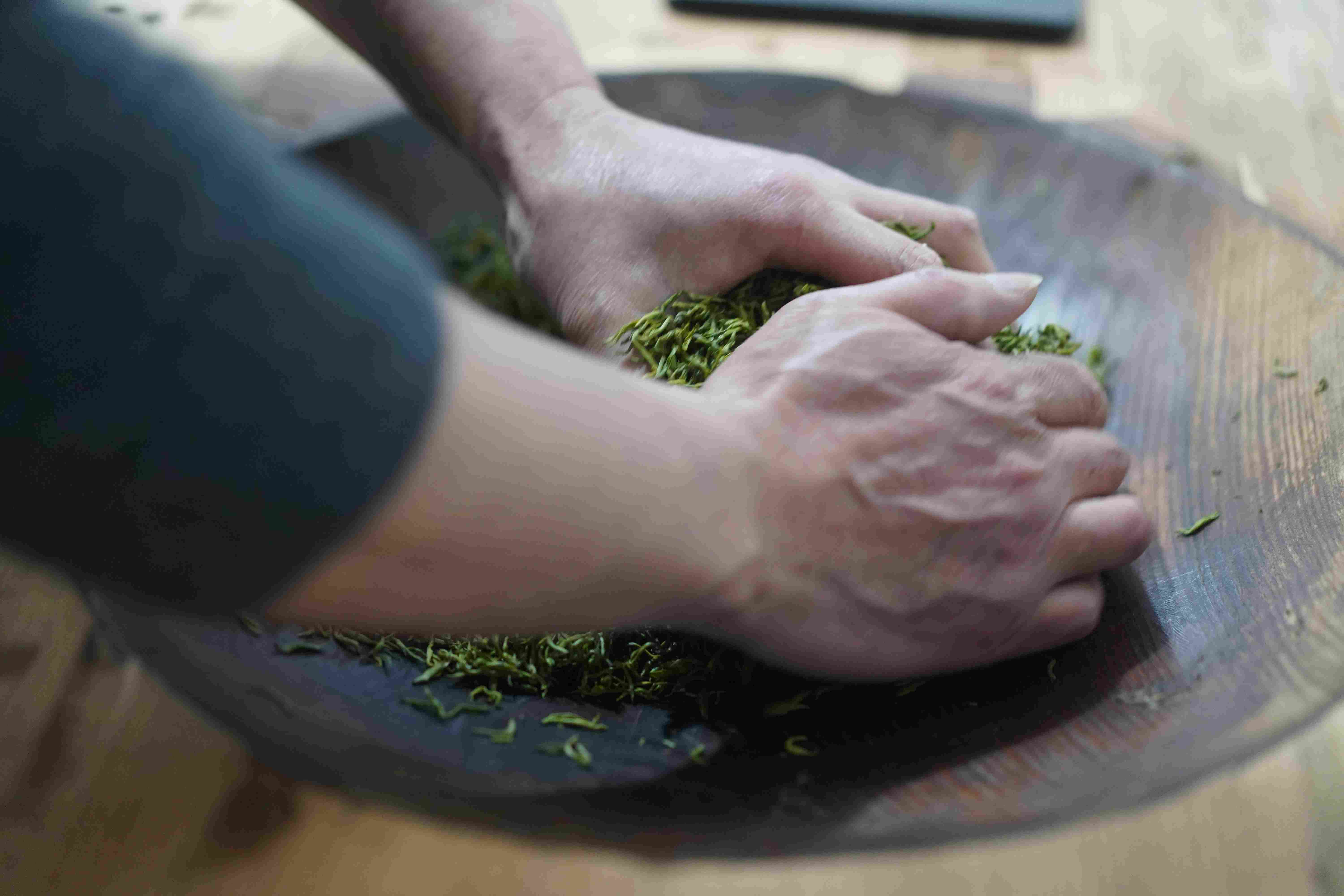 金骏眉的揉捻格外注重手法,不能过重伤害娇嫩的芽头,也不能过轻影响后续发酵工艺。