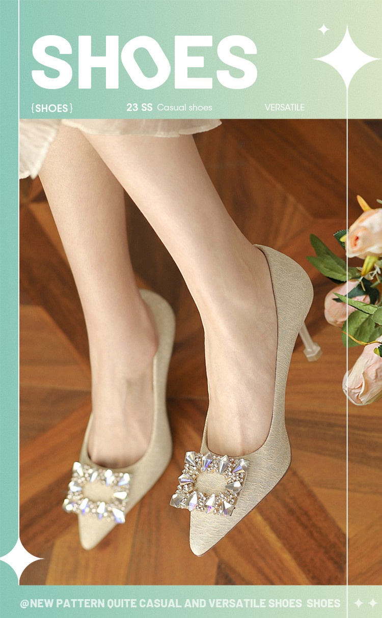 品质好货 | Safiya/索菲娅2023新款浅口尖头高跟鞋钻饰单鞋女鞋细跟高跟鞋女鞋SF31115702