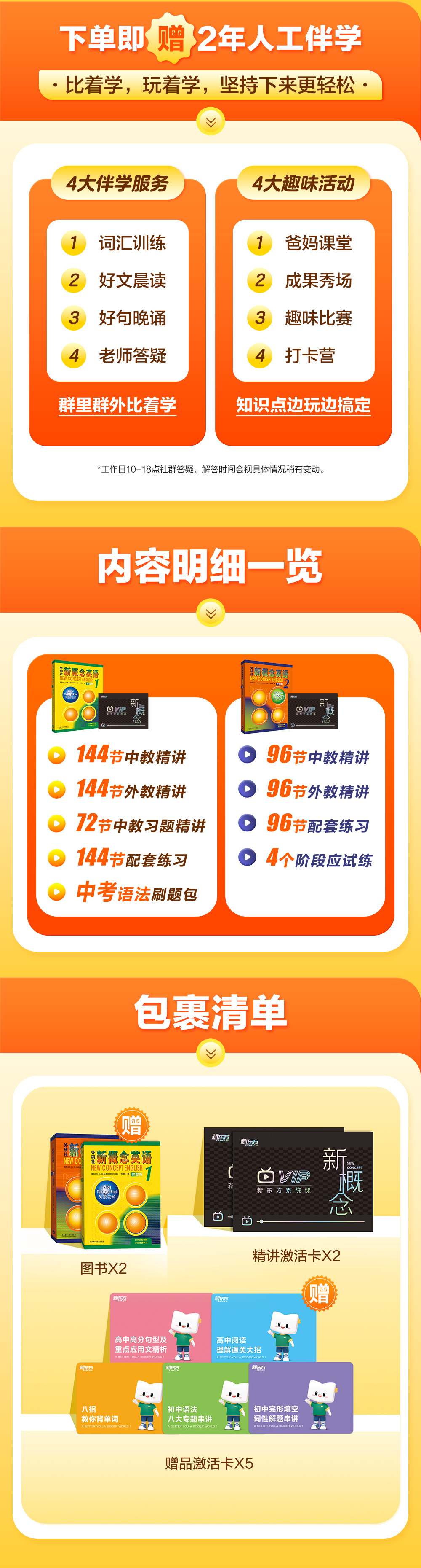 【新东方】新概念英语系统课一册+二册,中教+外教+AI练 手把手教你学好新概念 赠人工伴学营 联系客服要试听
