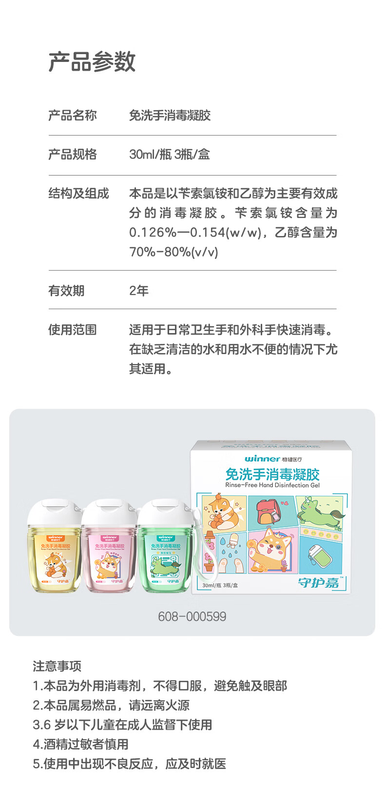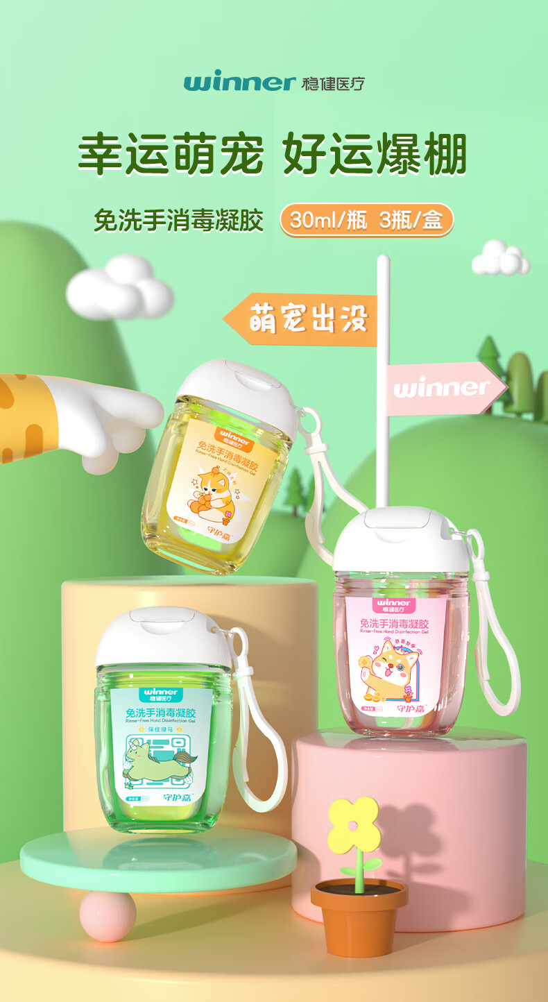 【ZY25】稳健免洗手消毒凝胶免洗手30ml*3瓶/盒