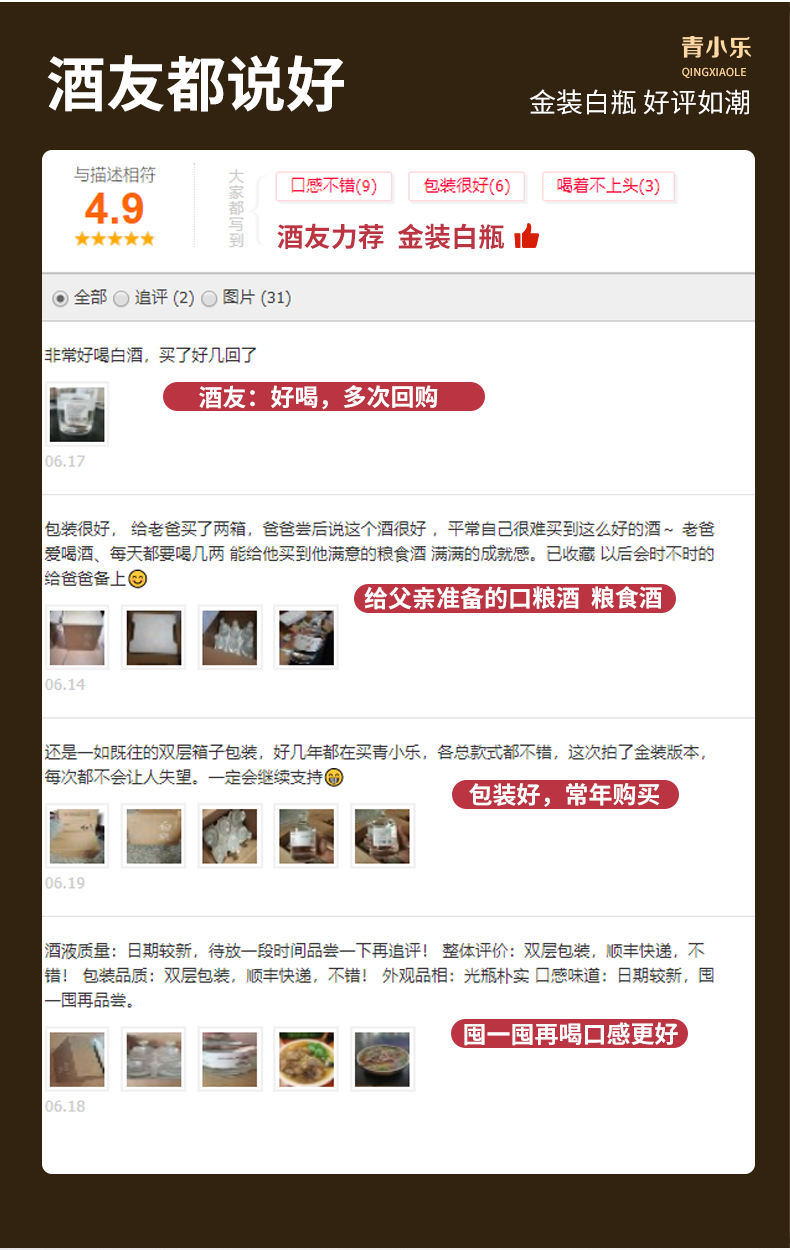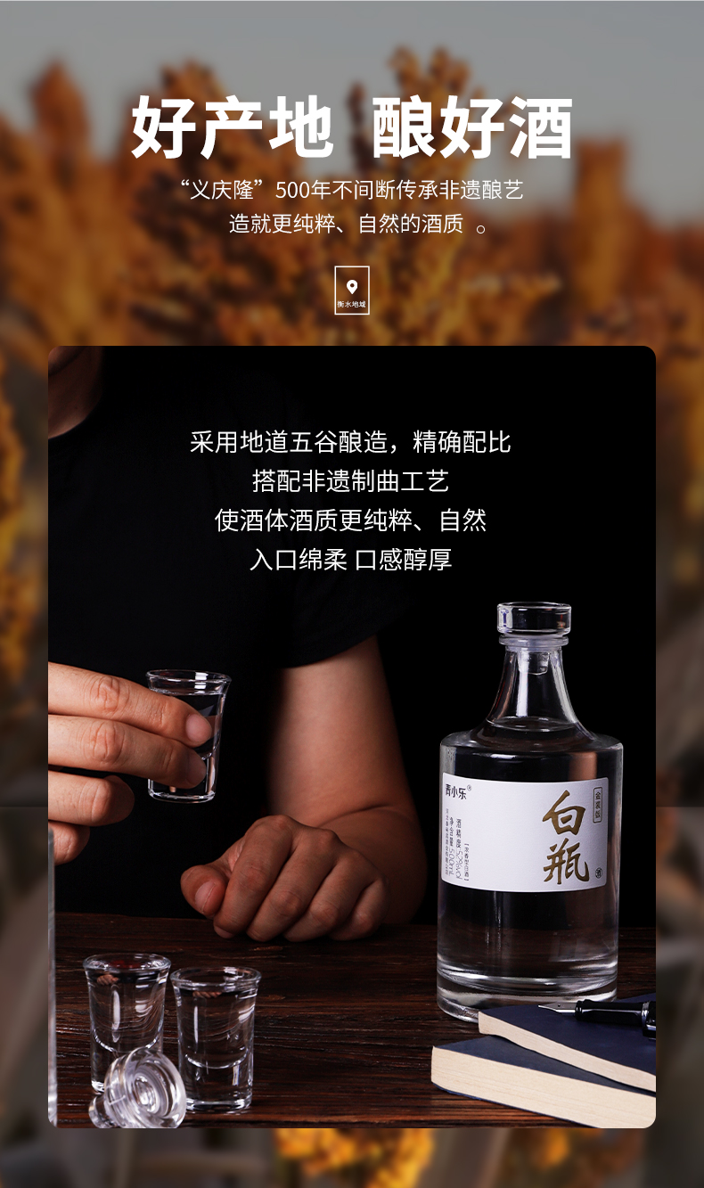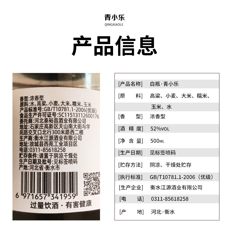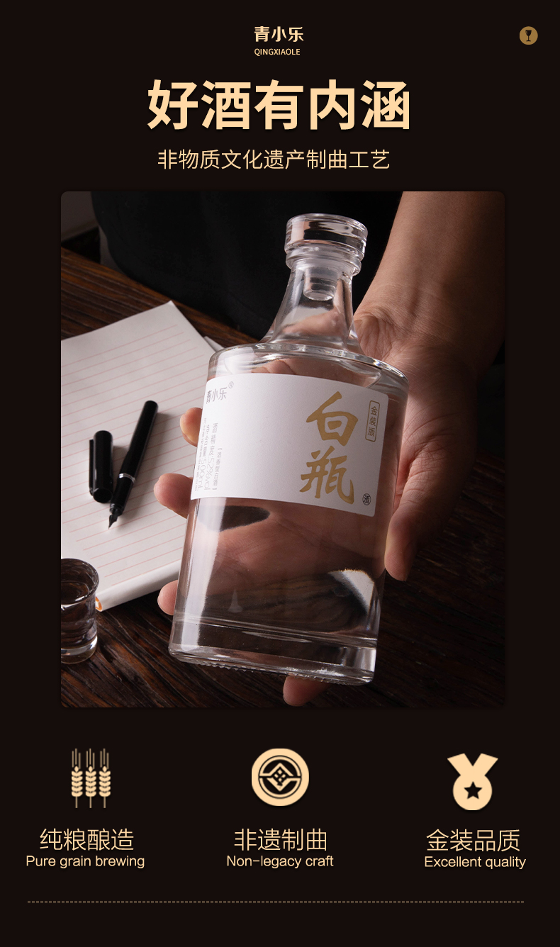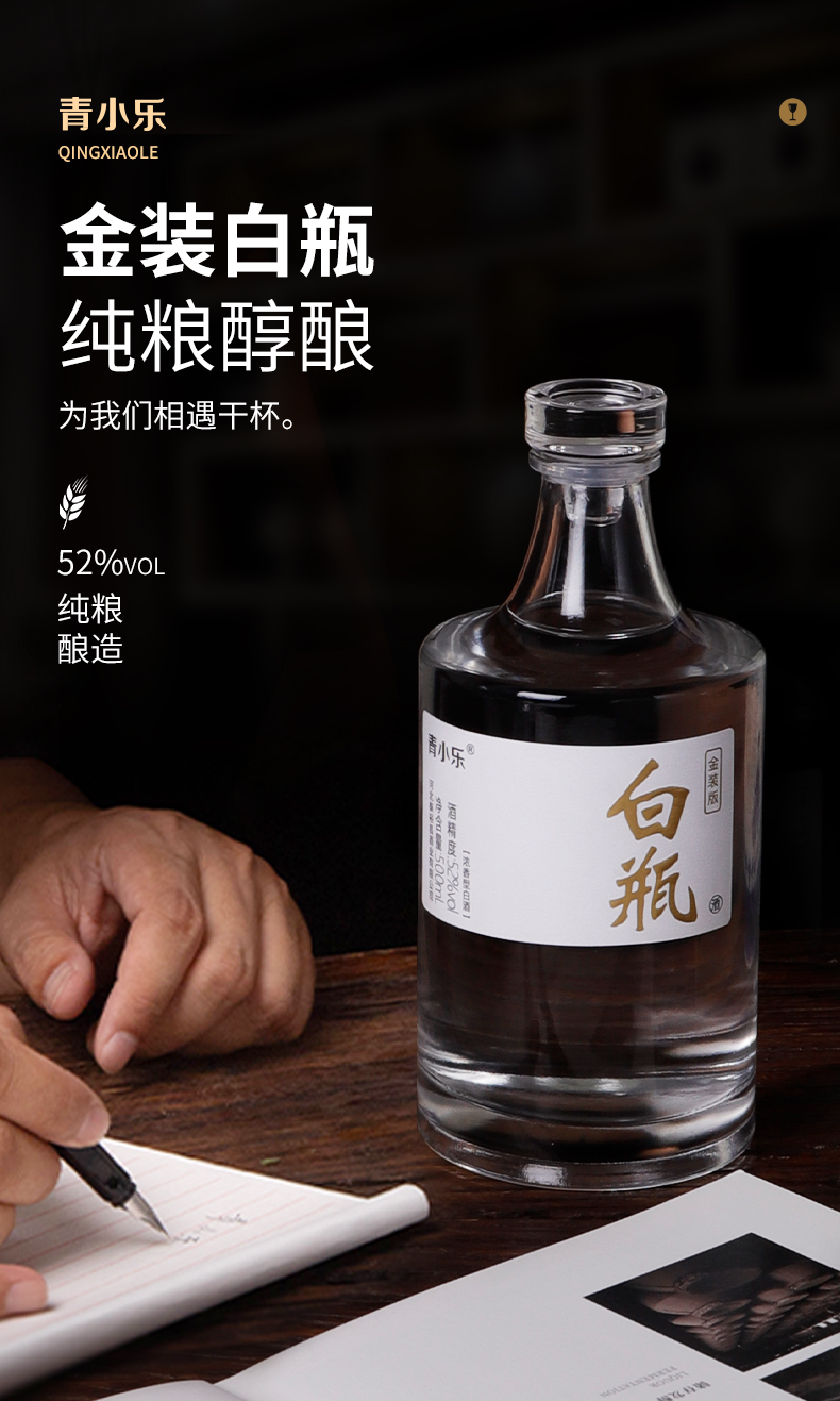 [金装白瓶]52度-青小乐-光瓶-浓香型白酒-500ml-6瓶整箱