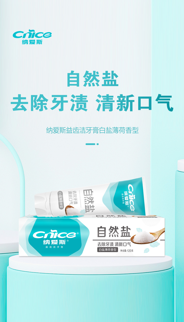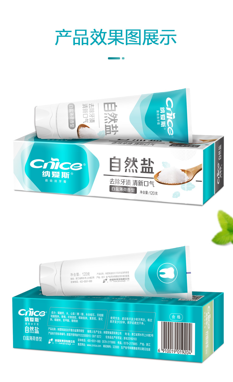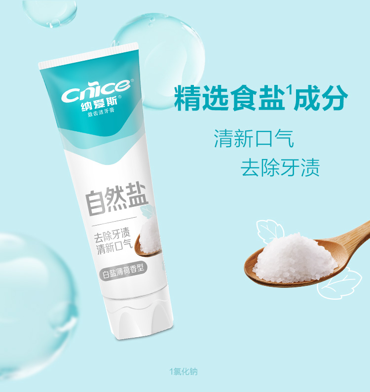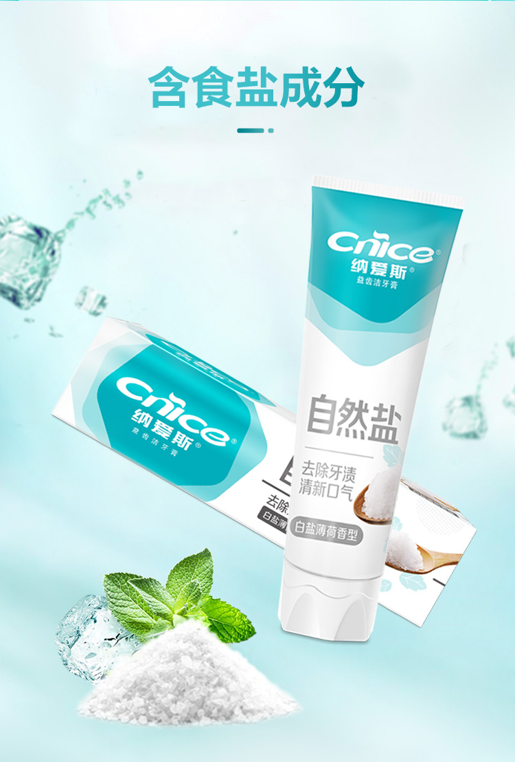 纳爱斯益齿洁牙膏白盐薄荷香型120g*2支 赠旅行牙刷2支