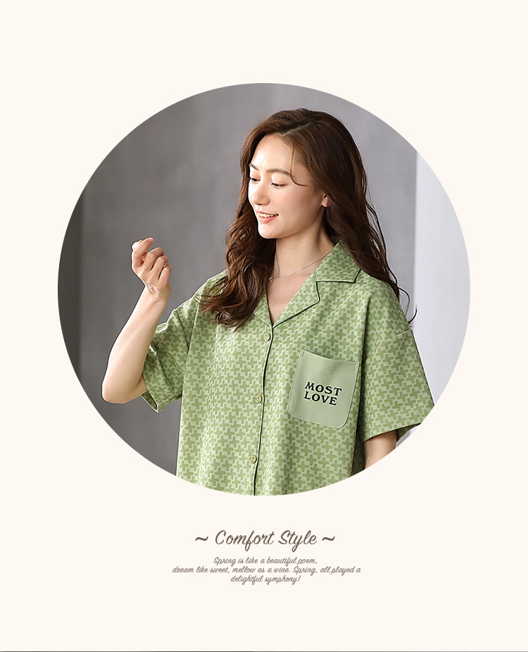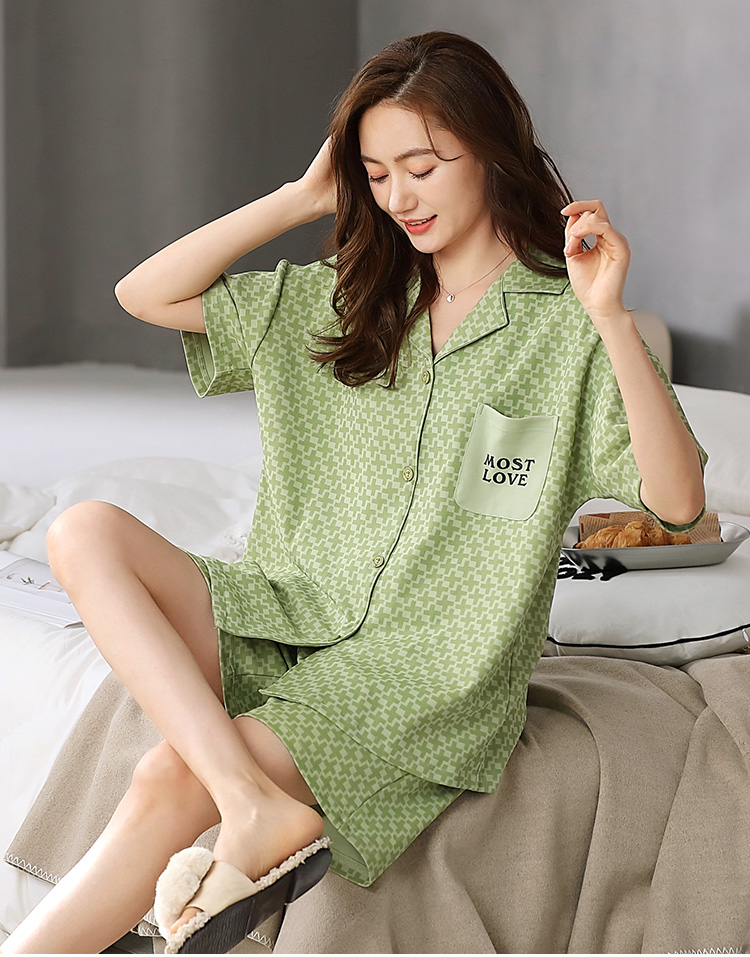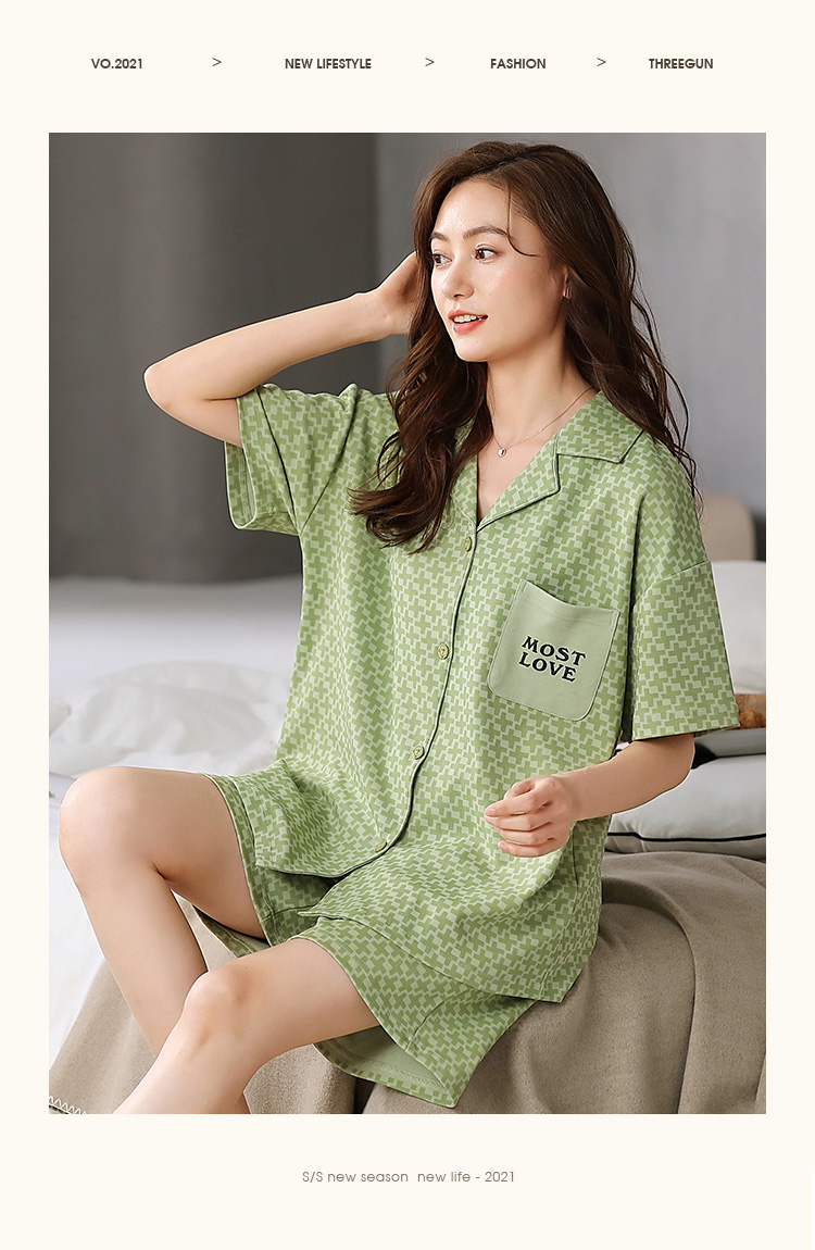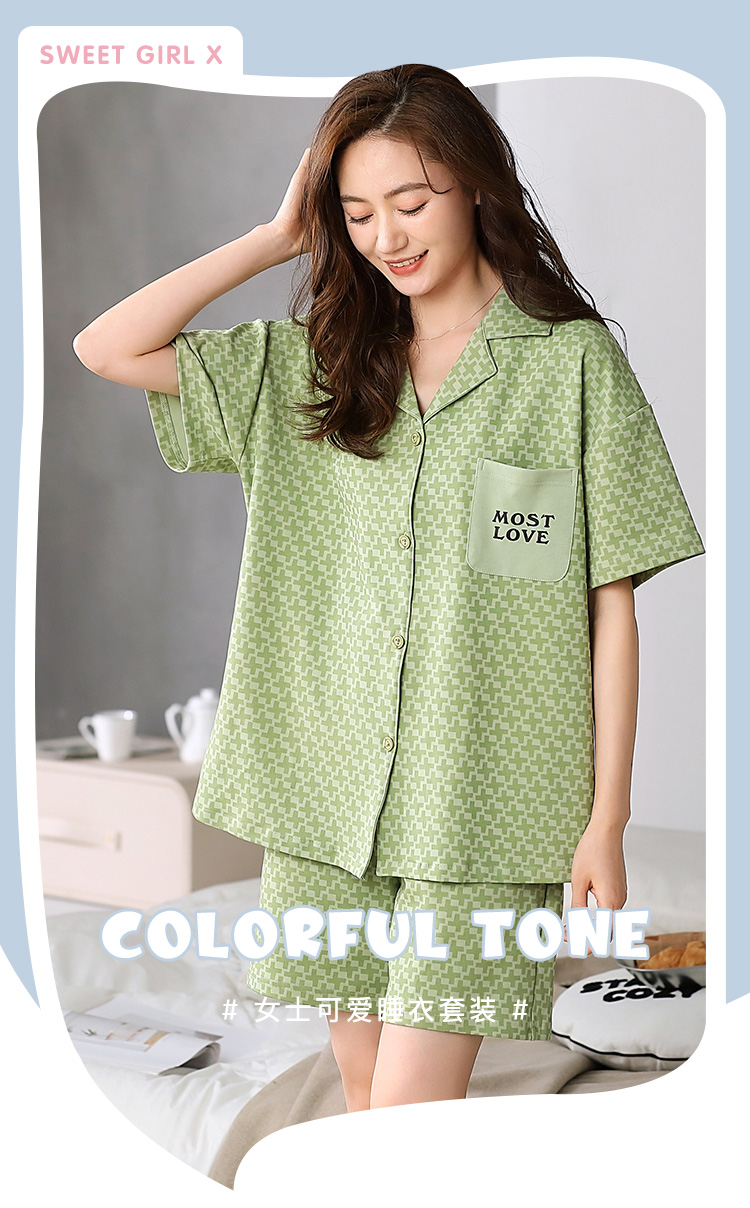 洁丽雅春夏新品女士家居服涤棉圆短袖短裤套装可外穿睡衣女