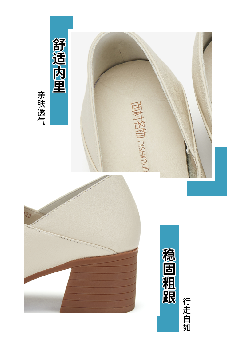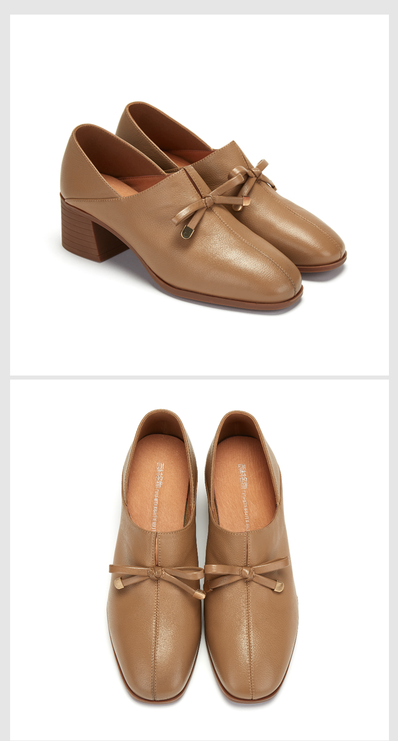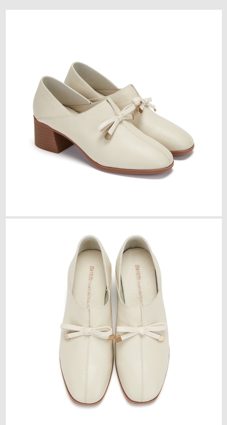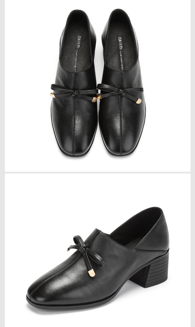西村名物时尚休闲单鞋女2020春季新款纯色简约中跟小皮鞋30011