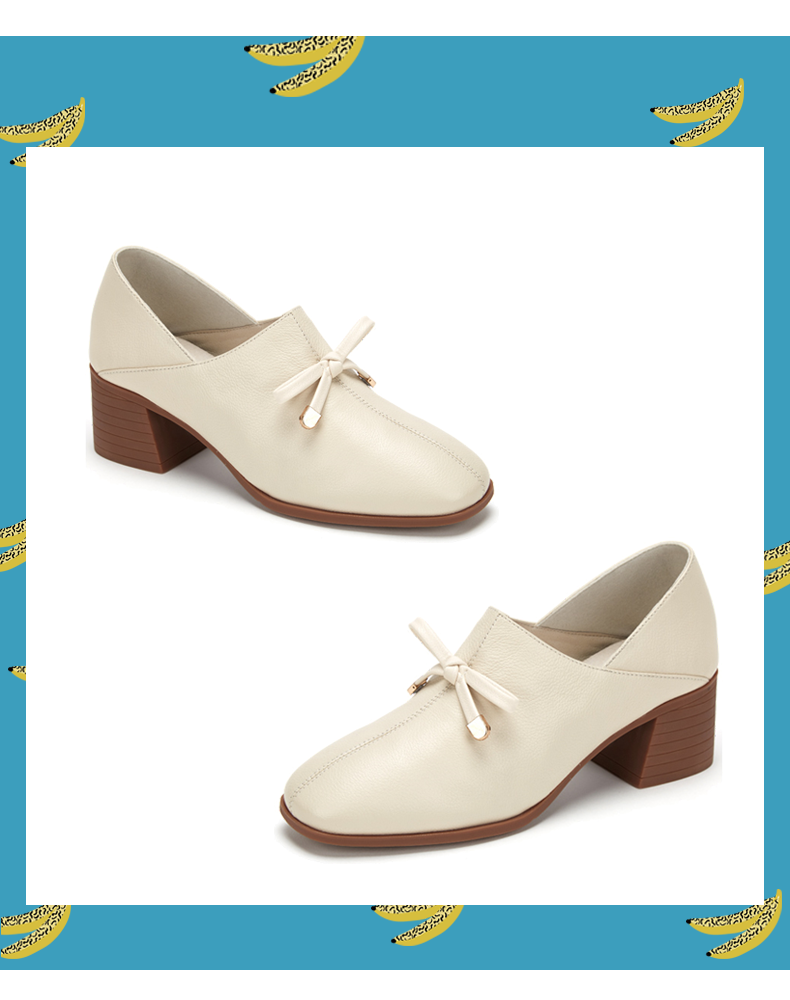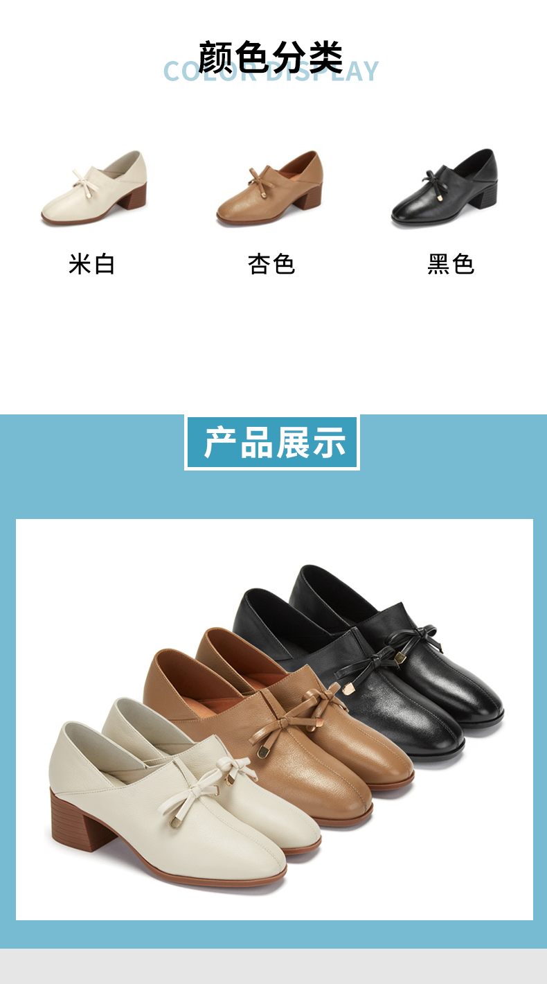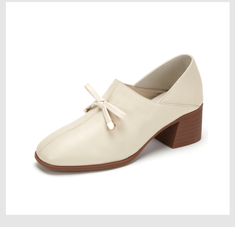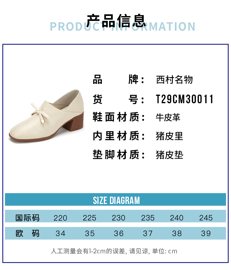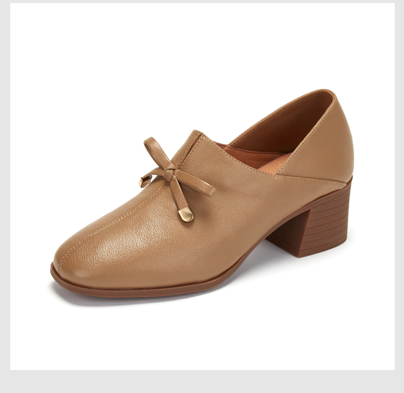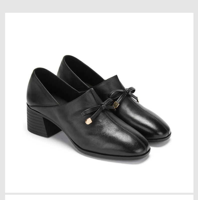 西村名物时尚休闲单鞋女2020春季新款纯色简约中跟小皮鞋30011