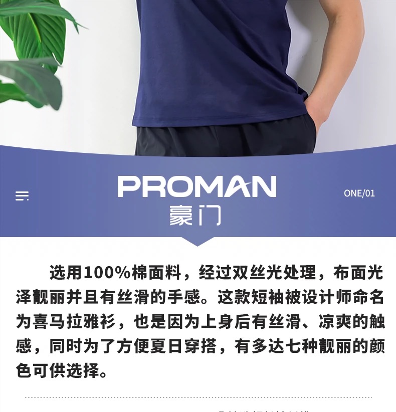 夏季男士宽松玛雅棉时尚简约透气圆领短袖纯棉丝光棉LE15000
