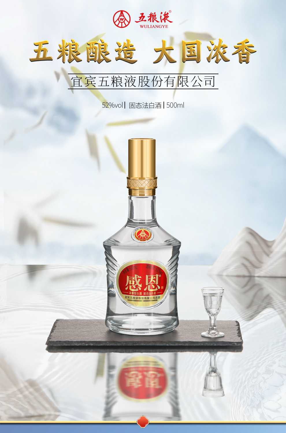五粮液股份出品 感恩酒 52度 浓香型白酒 500mL 亚力克礼盒装 优级粮食酒纯粮酒 送礼商务宴请 2瓶起售 配1礼袋