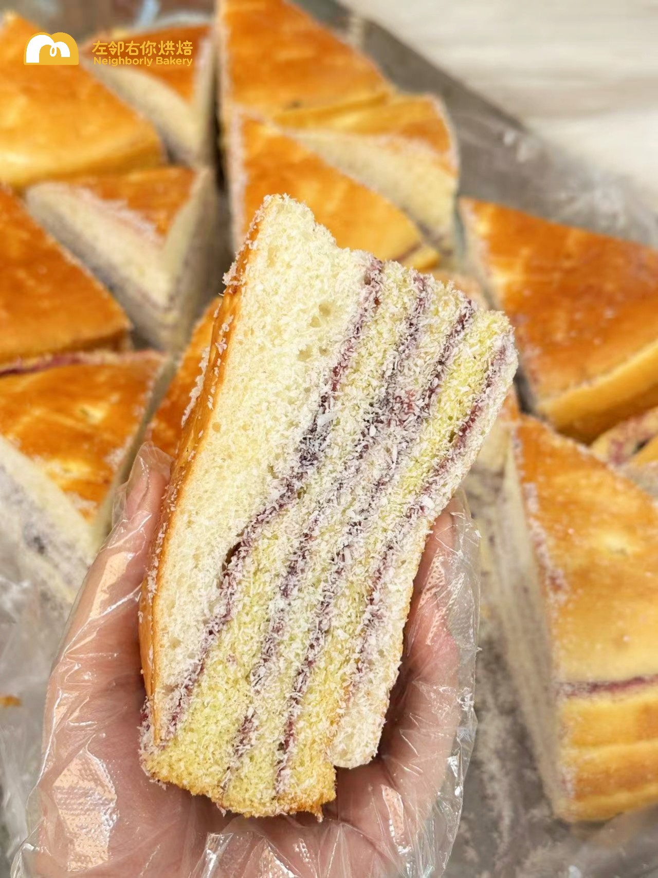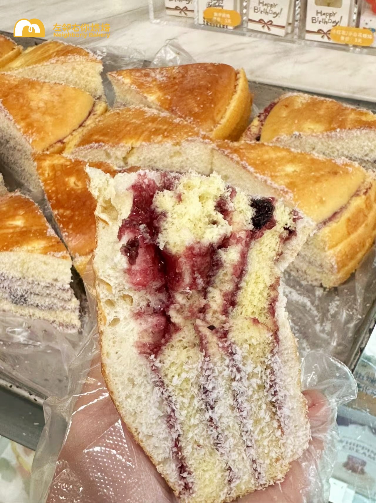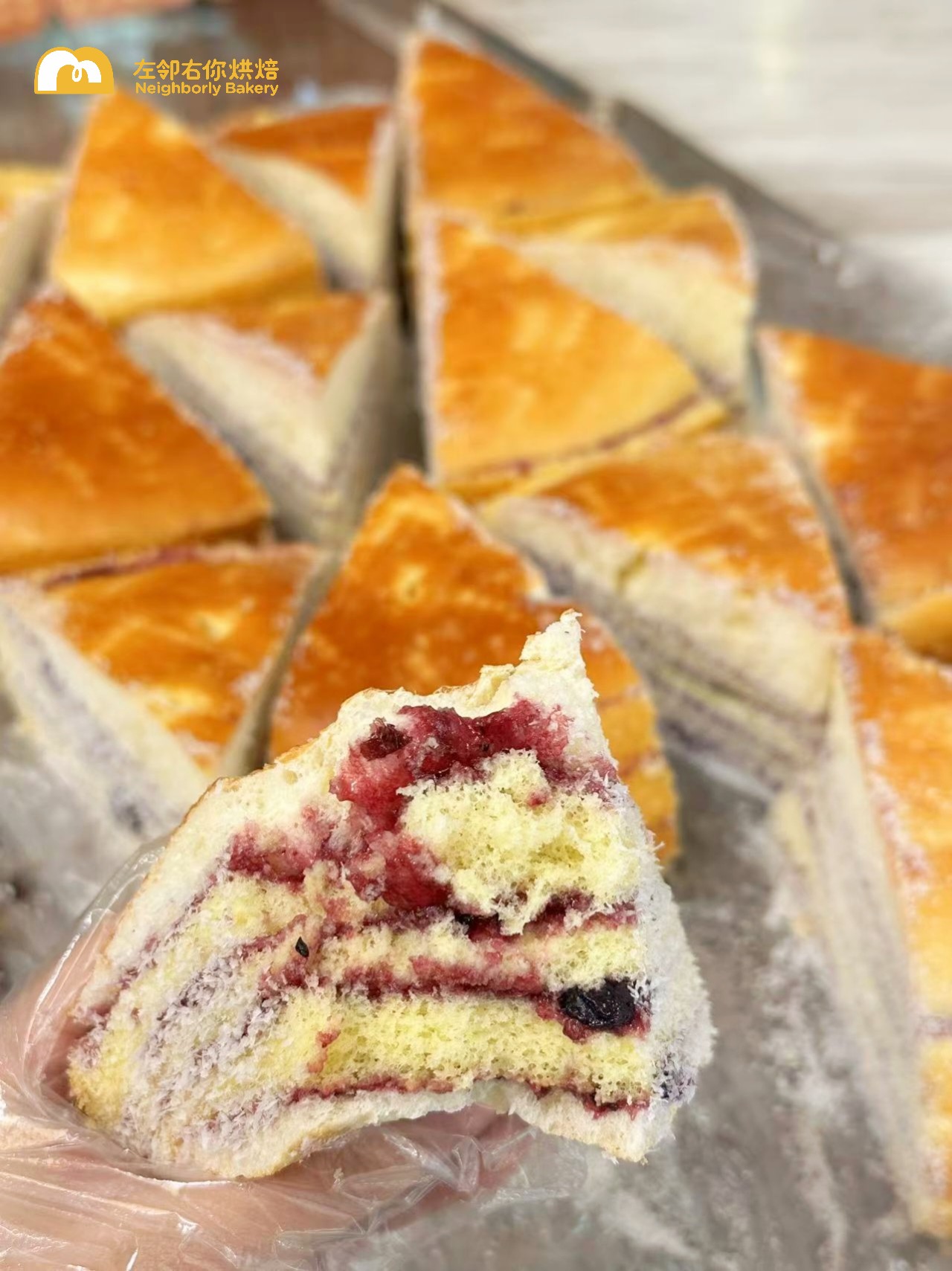 夹着厚厚的蛋糕胚夹层里搭配蓝莓果茸~