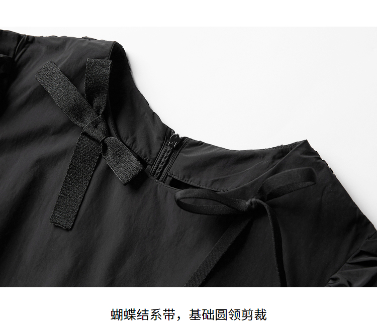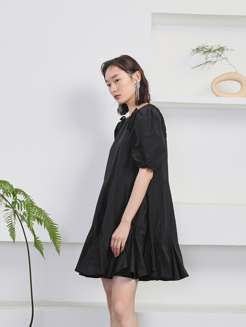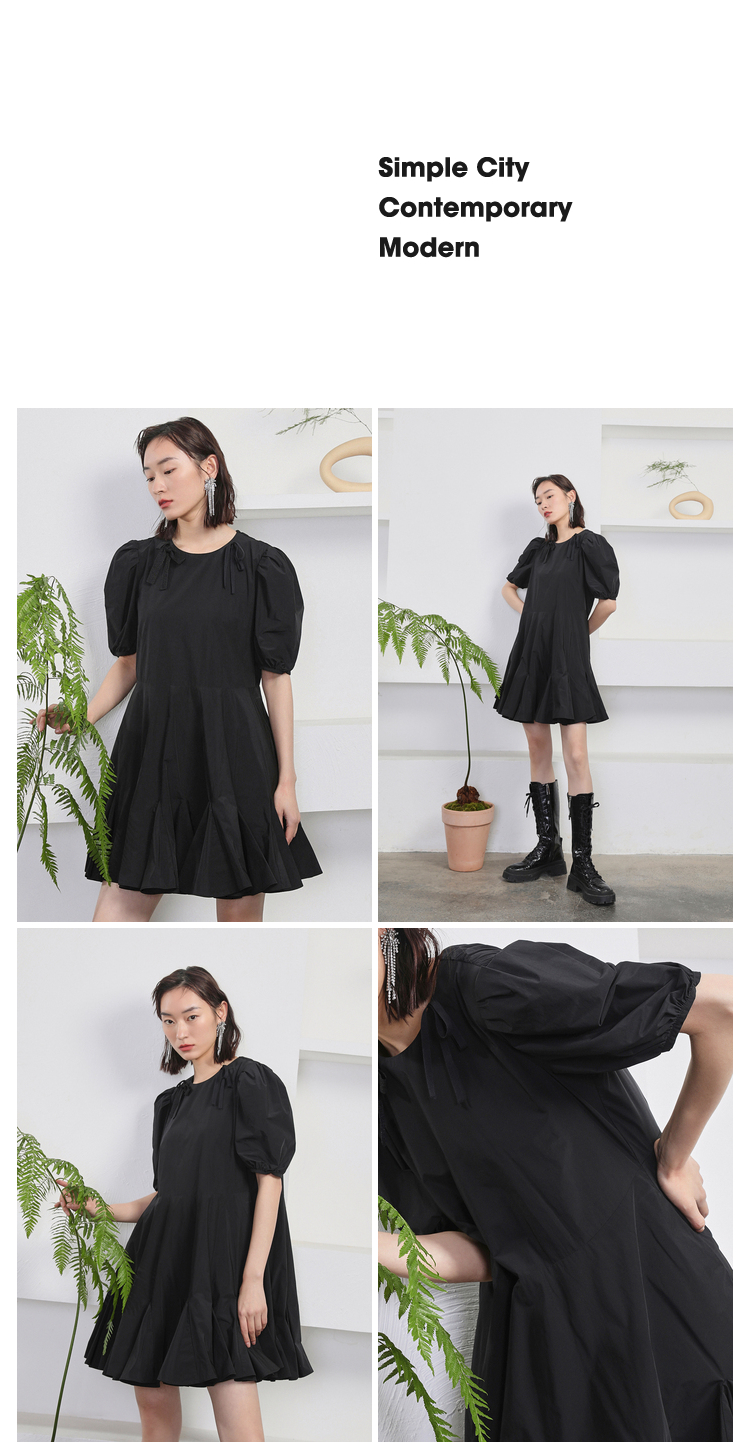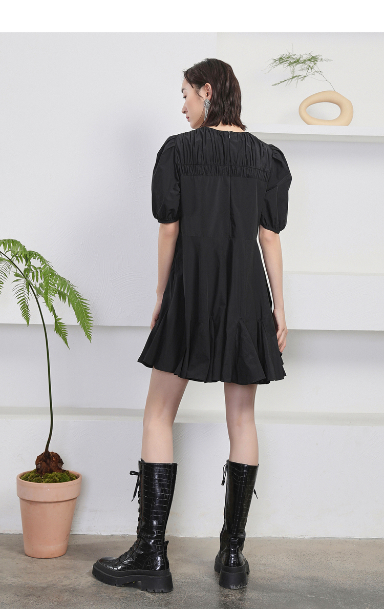 NEELLY纳俪商场同款夏季新款黑色娃娃裙设计感泡泡袖连衣裙减龄N22044Y04418
