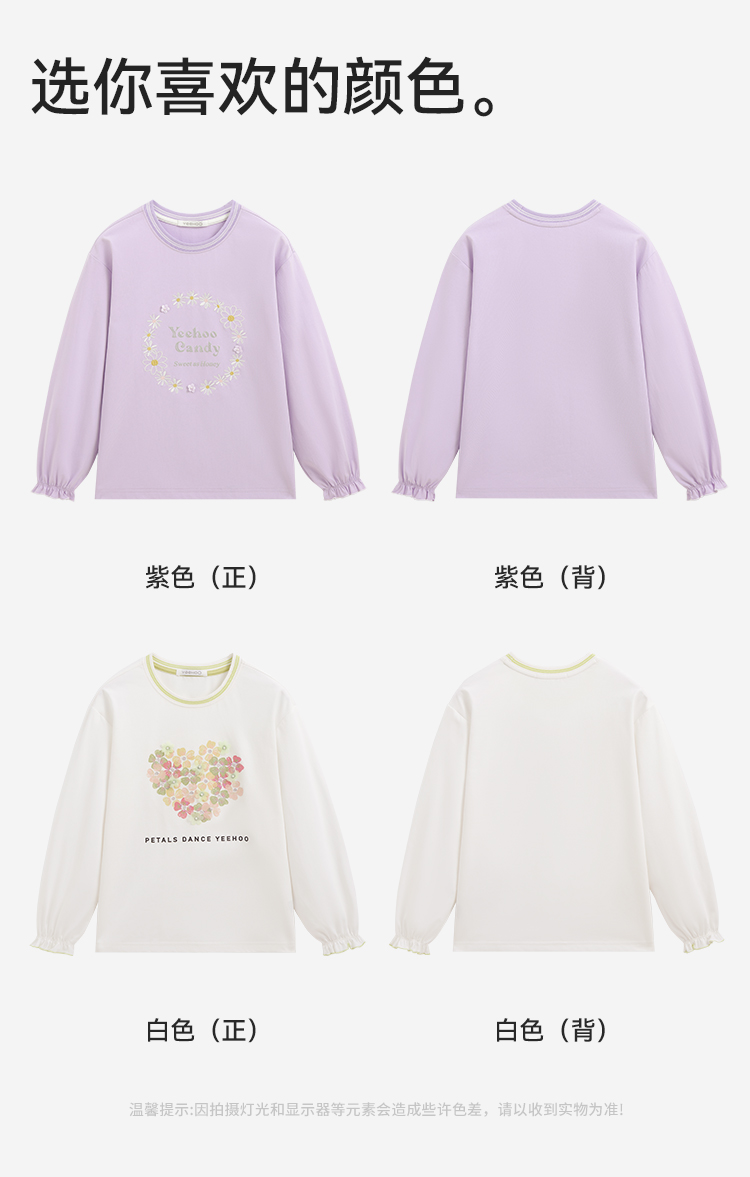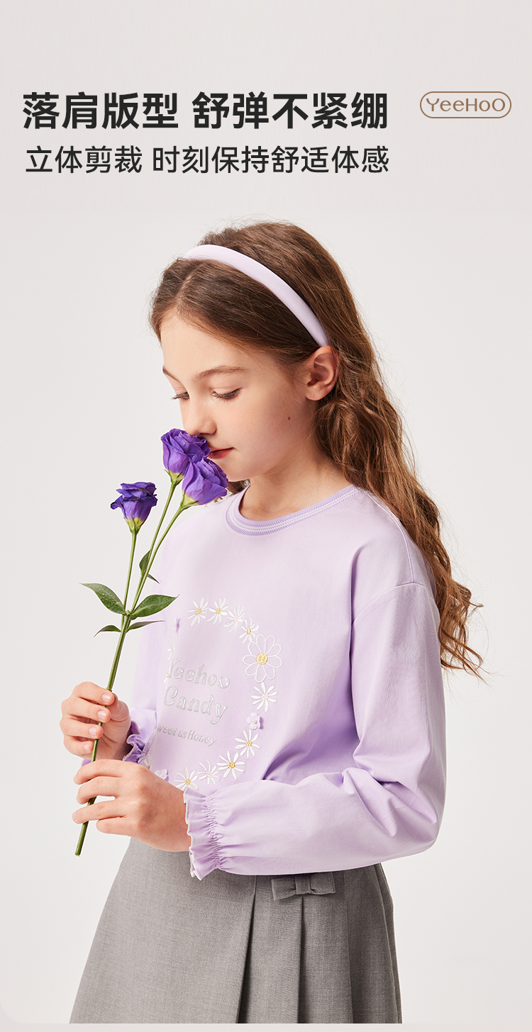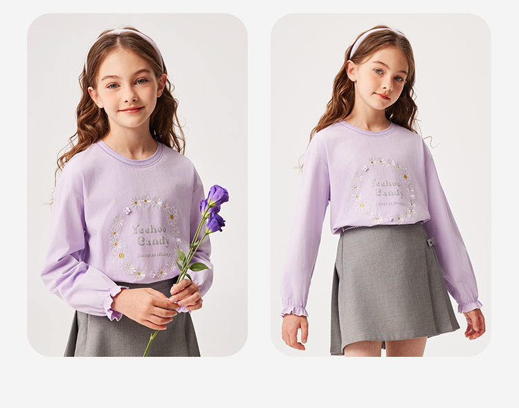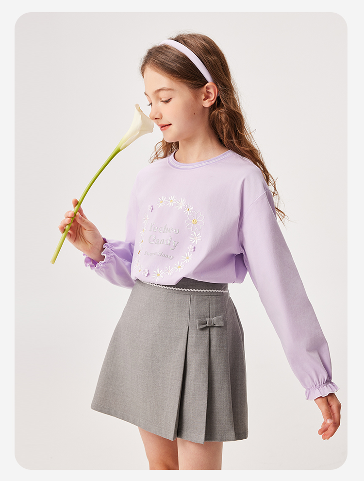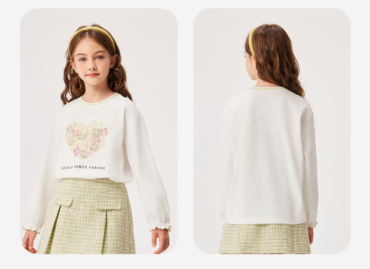 【英氏】【质感索罗娜】【110-150】女童春秋款甜美粉长袖T恤