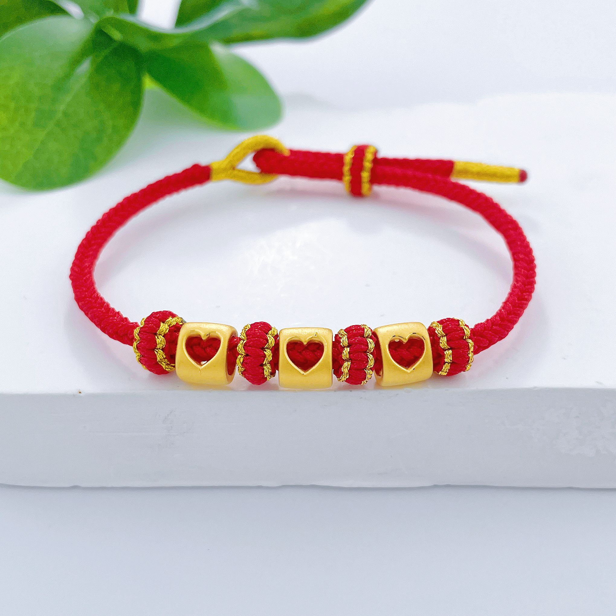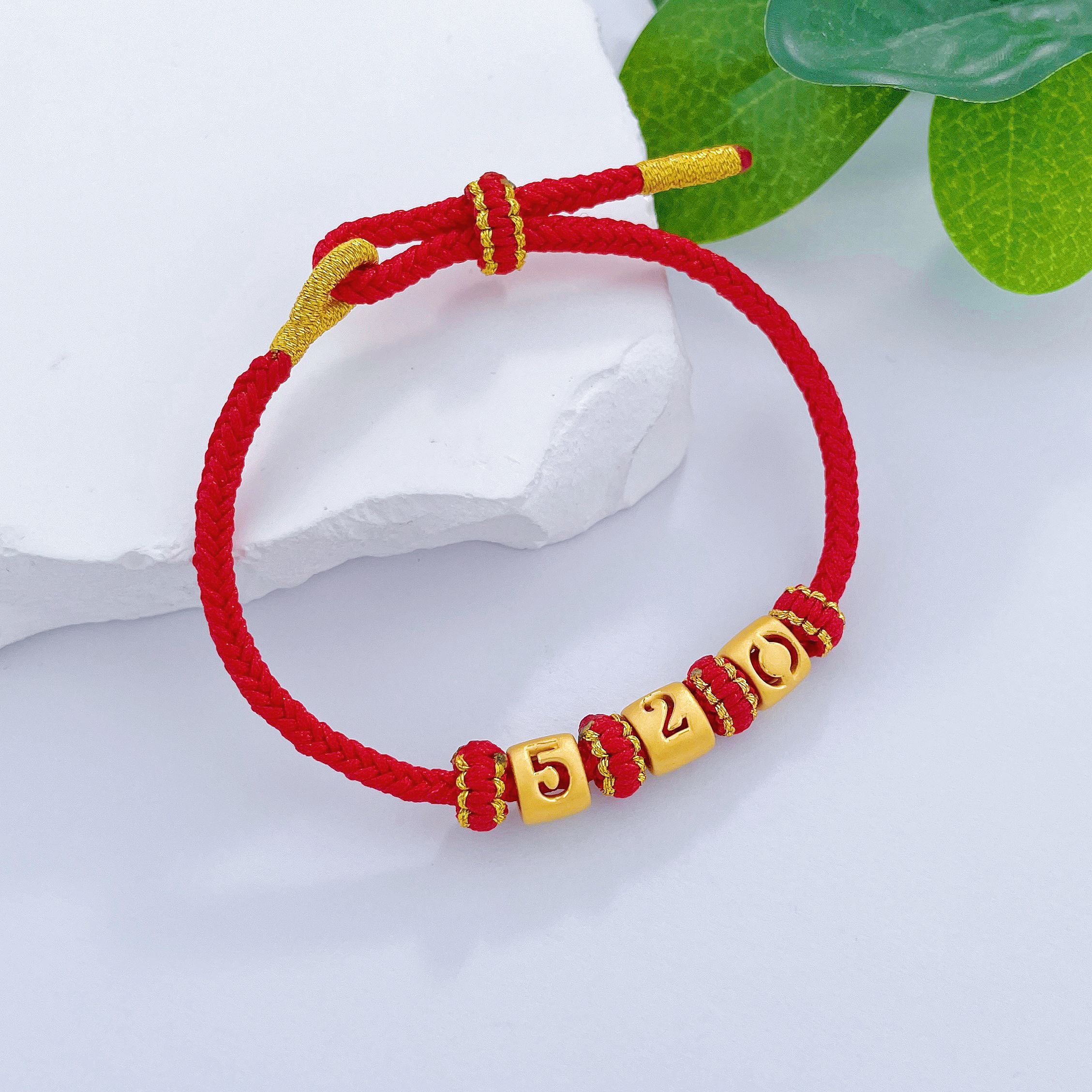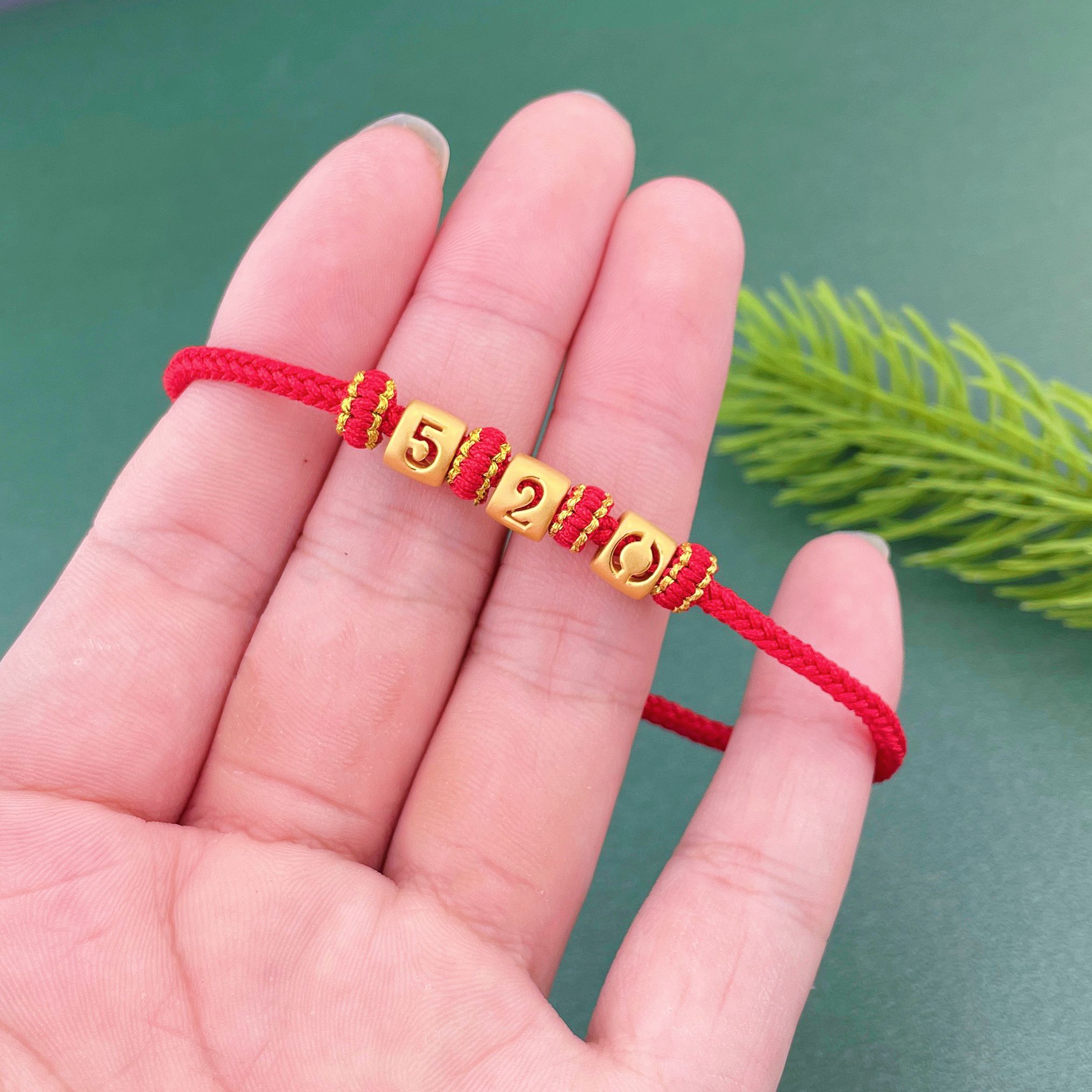 【限时7.5折】【定价黄金】足金 3D硬金爱心数字520转运珠红绳调节成品手串(AJ3DSC00044)(预售产品下单后不退款不退货不换货不补差价)
