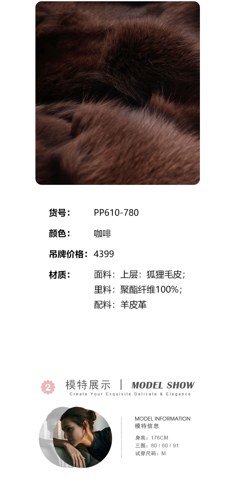 PP610斯尔丽2024新款高级名媛时尚狐狸毛配绵羊毛皮时尚轻奢皮草外套