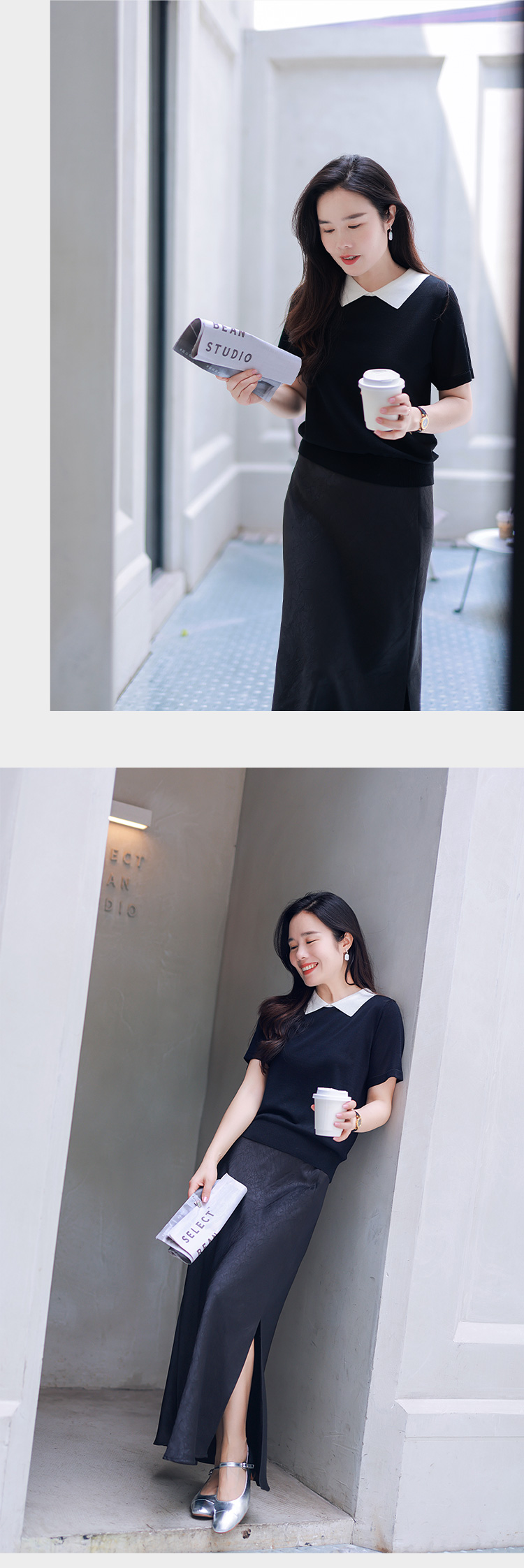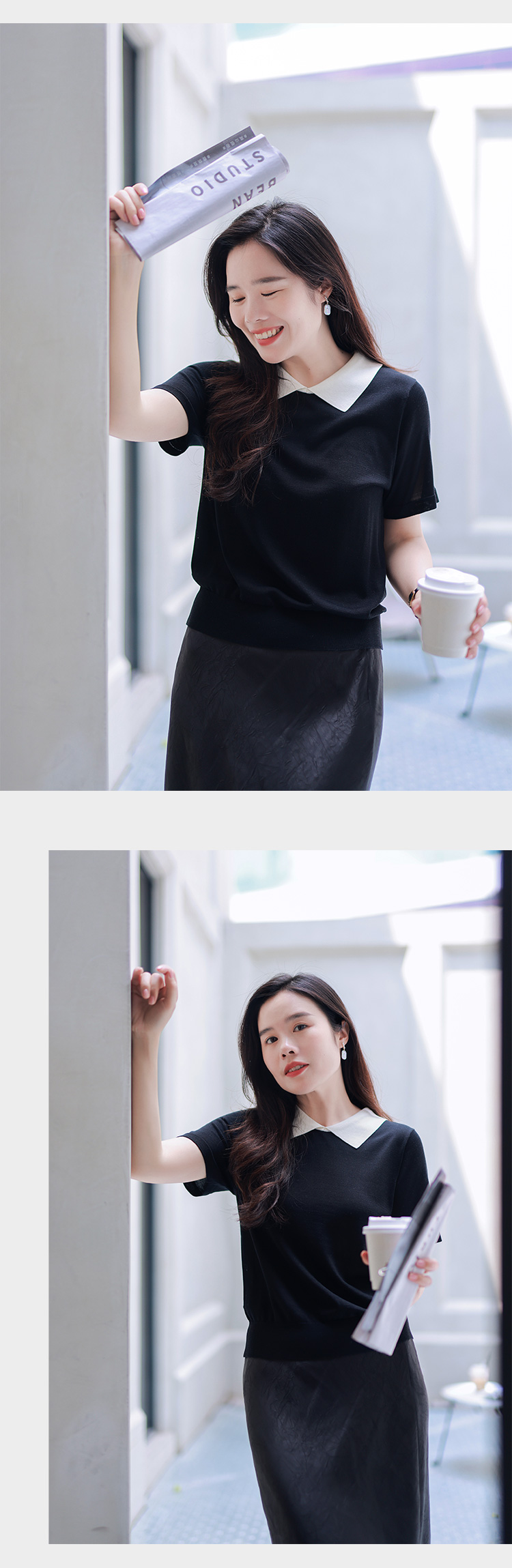 【现货】100%桑蚕丝显瘦百搭清爽舒适 翻领短袖上衣