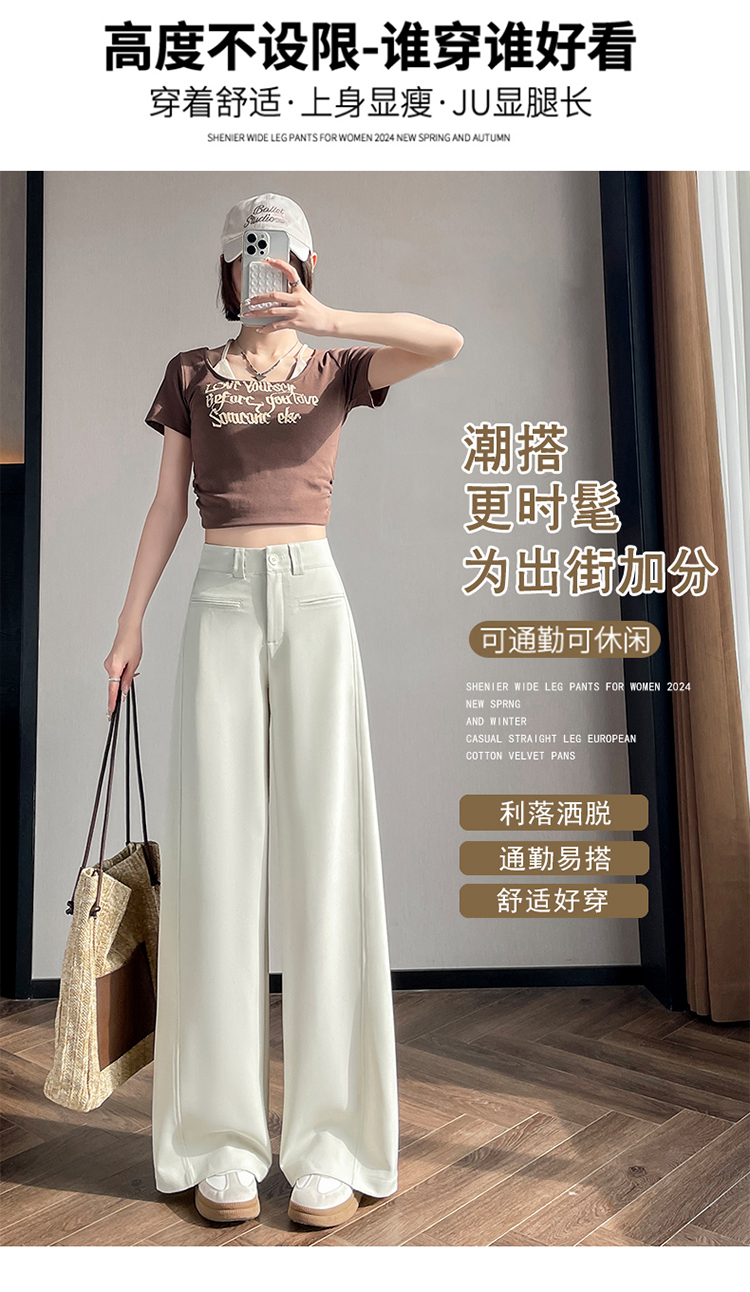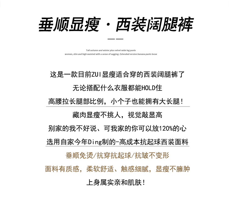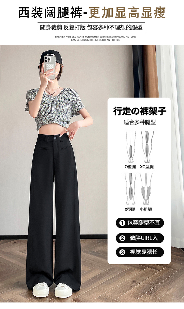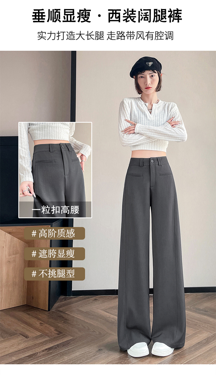 卷卷紫垂顺显瘦西装阔腿裤 面料软糯舒适亲肤有垂感 西装阔腿显瘦遮肉 三色可选经典百搭 休闲/通勤