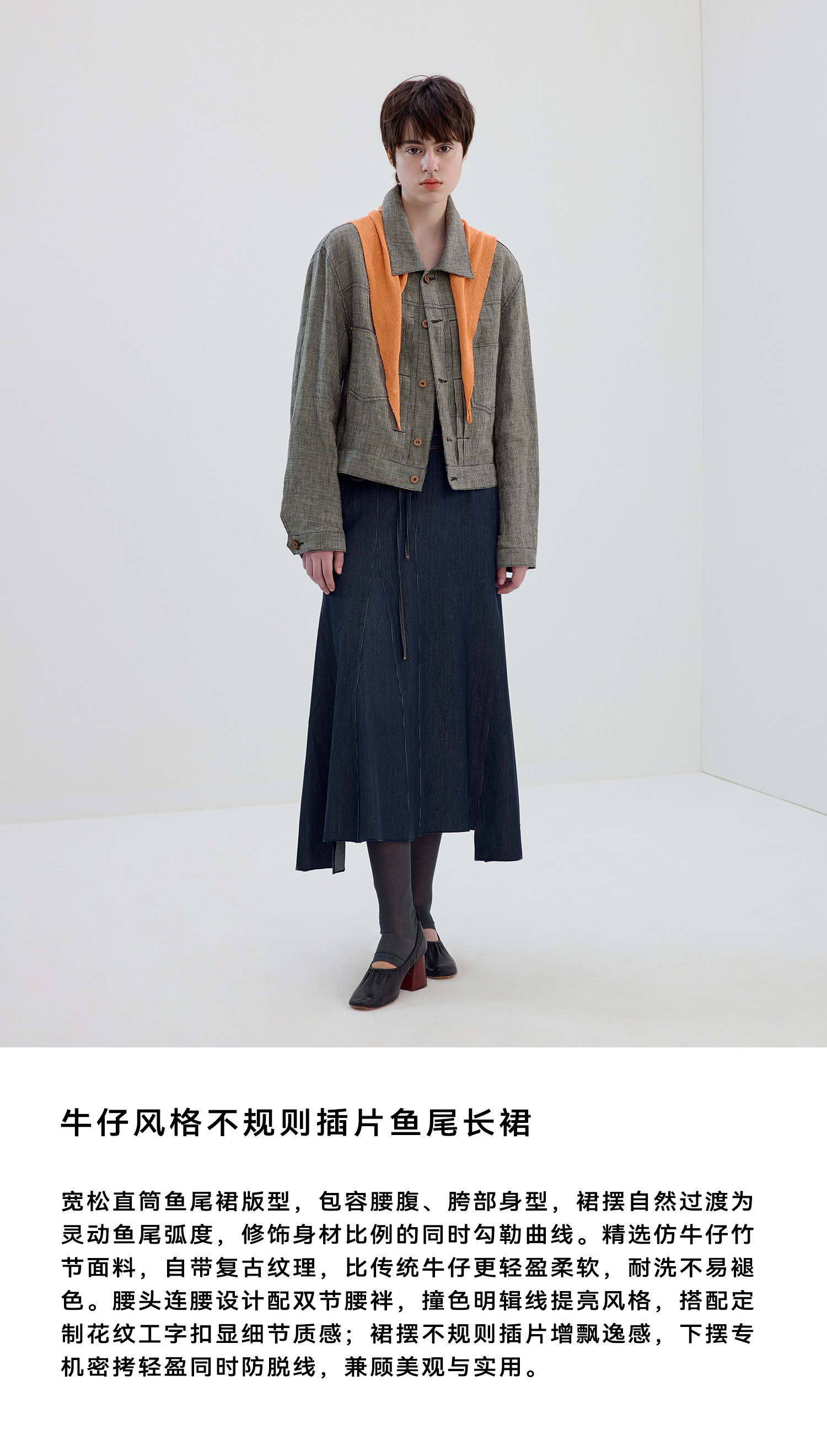 Simple Project/K25277/牛仔风格不规则插片鱼尾长裙
