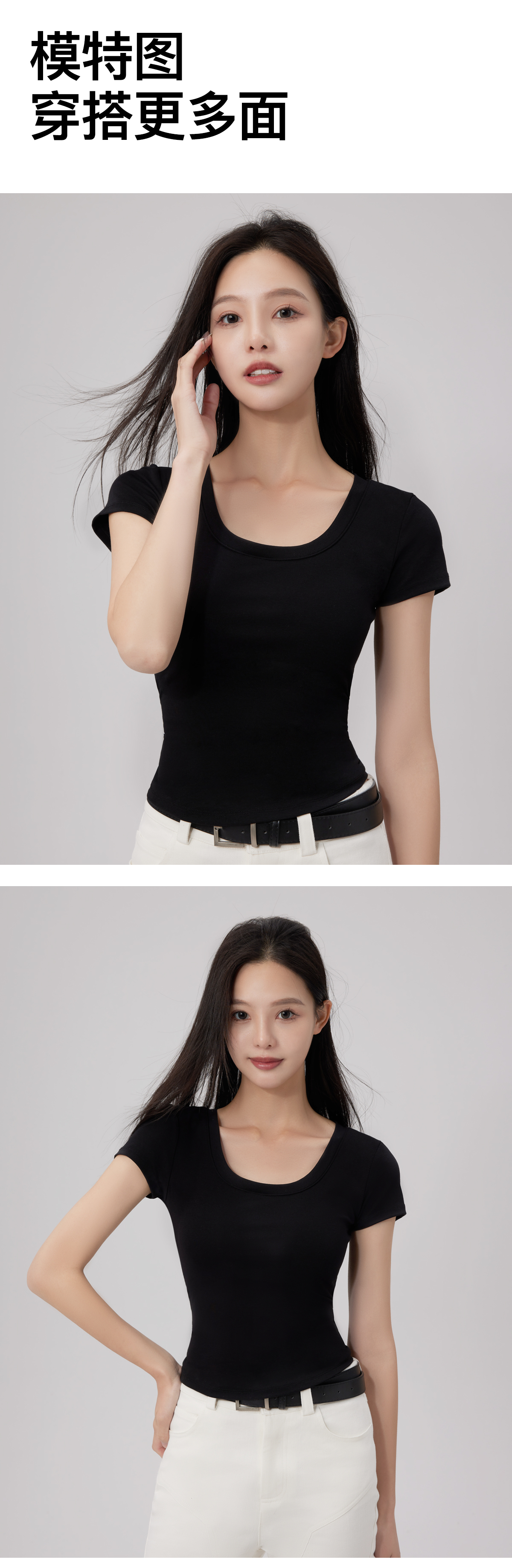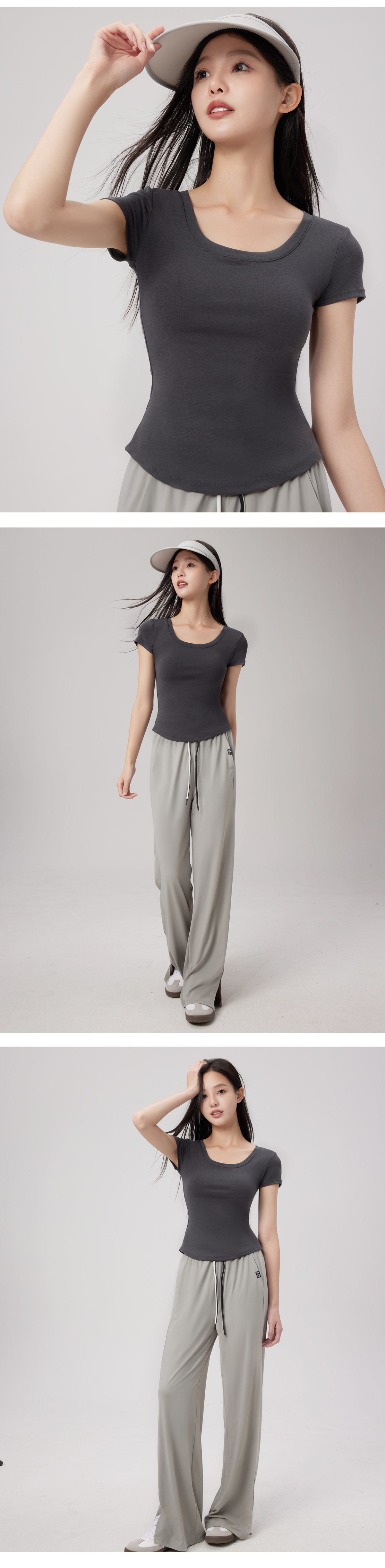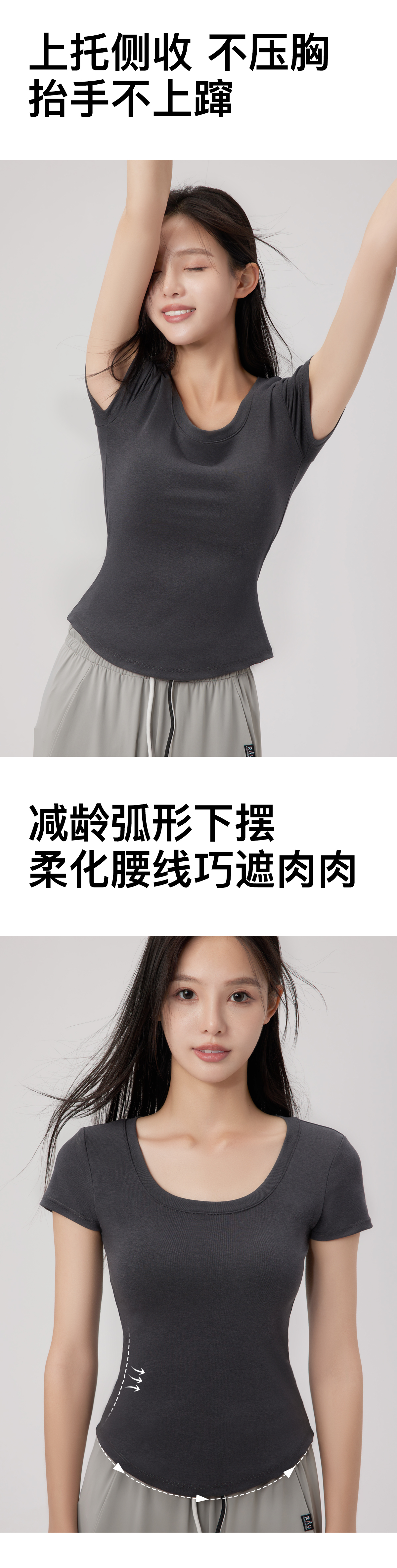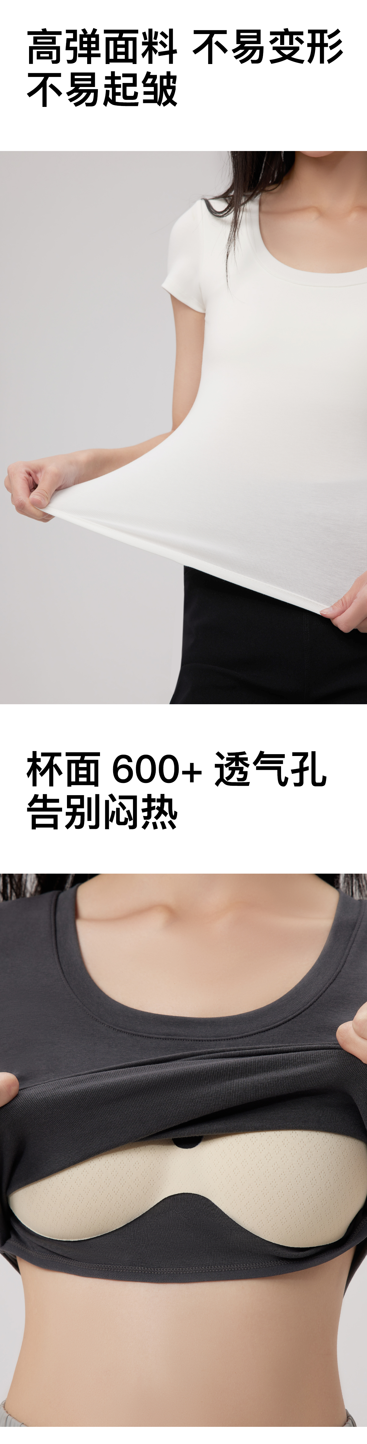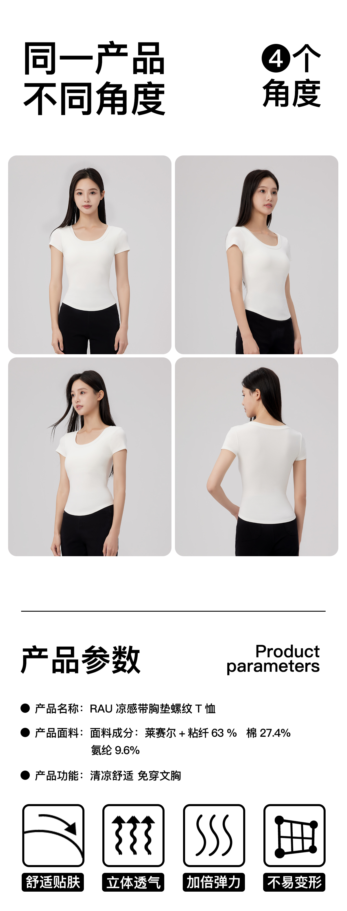 清凉一夏!RAU冰感螺纹短袖T恤带胸垫女款 BRA+t恤二合一