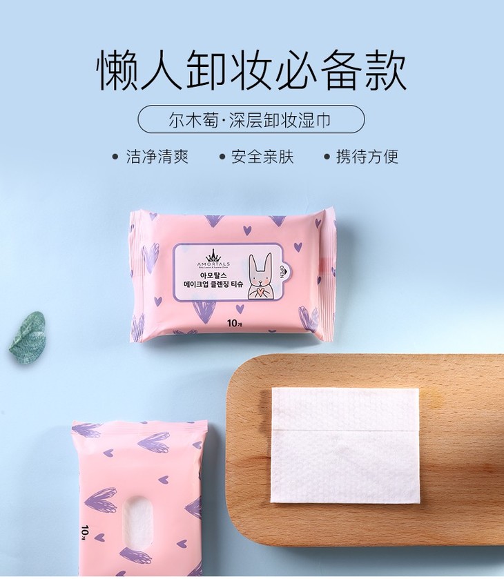 【一般贸易】韩国AMORTALS尔木萄卸妆巾女深层清洁一次性便携温和无刺激 10片装*3包