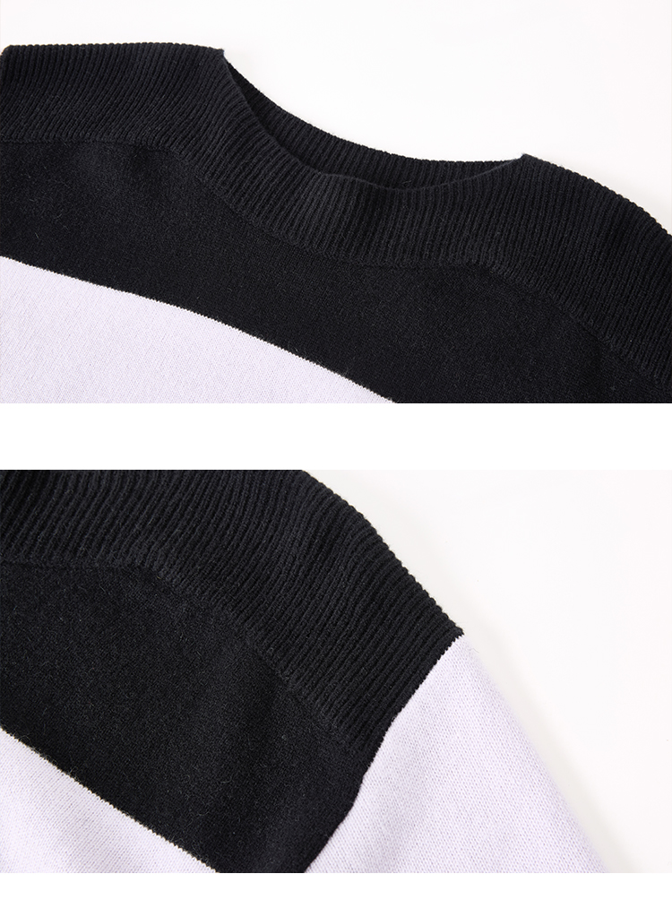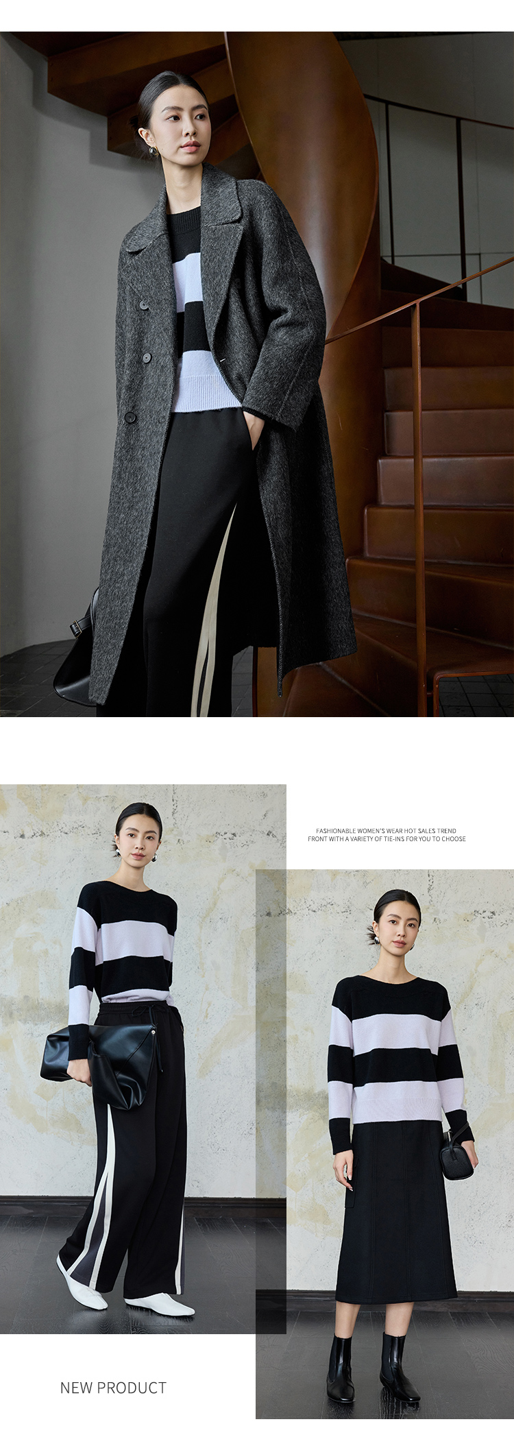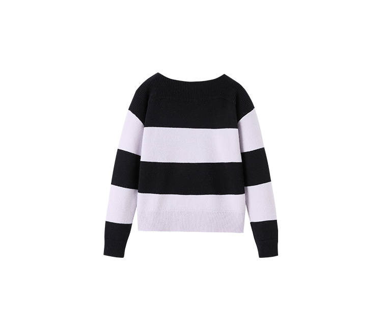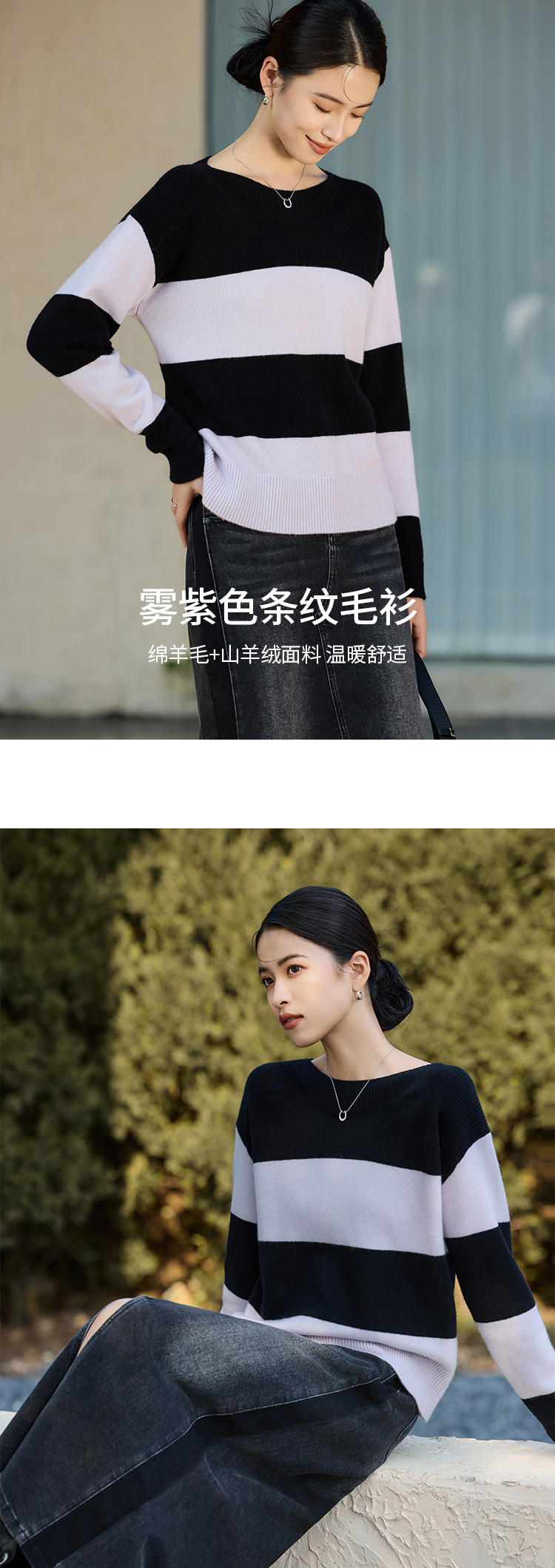 【商场同款】CNK4057“魅力条纹毛衫”雾紫与黑色拼接 一字领设计修饰颈部线条 小箱身形自带松弛感 绵羊毛+山羊绒混纺 柔软亲肤舒适毛衣