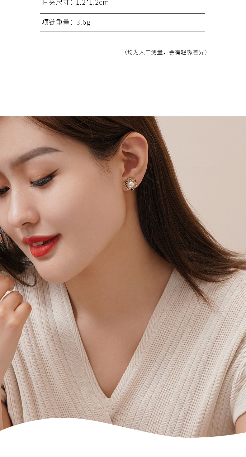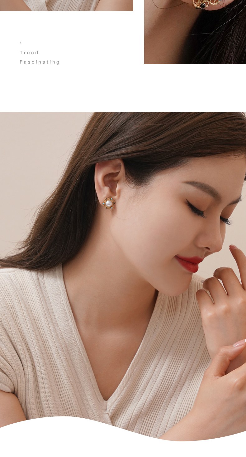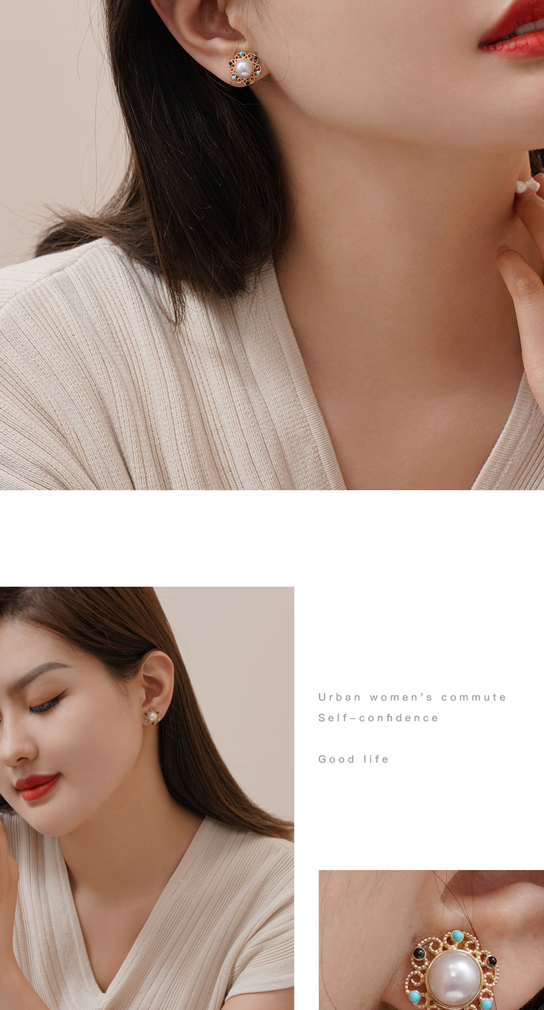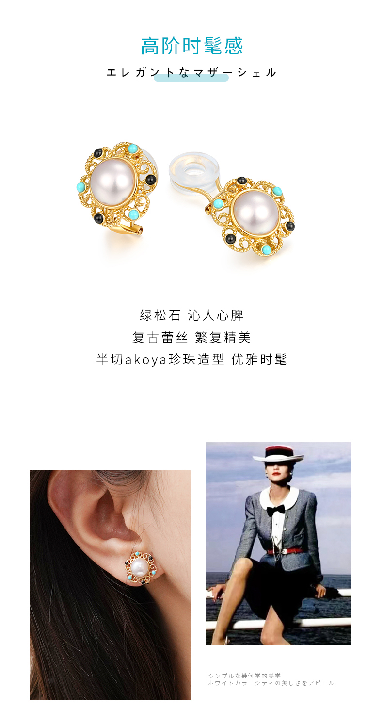 【天猫同款】悦甄 18k金Akoya珍珠玛瑙 绿松石香风耳夹