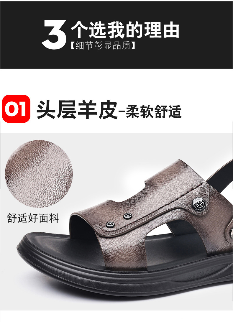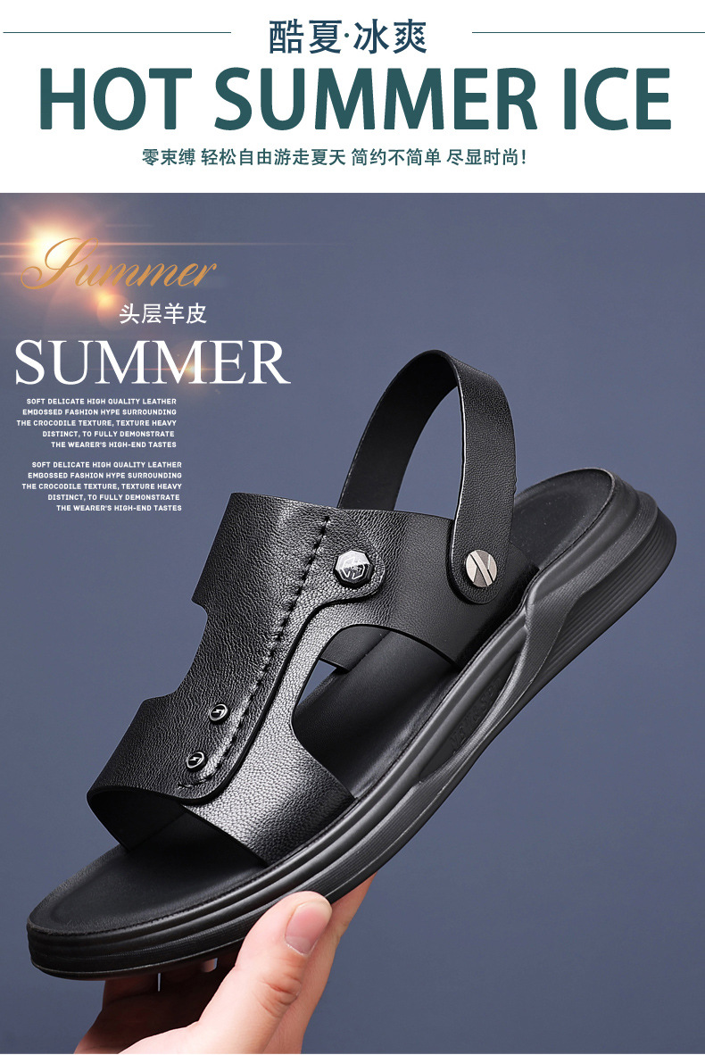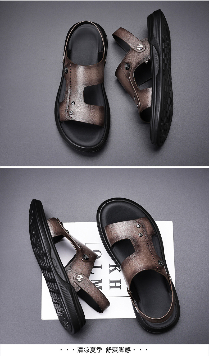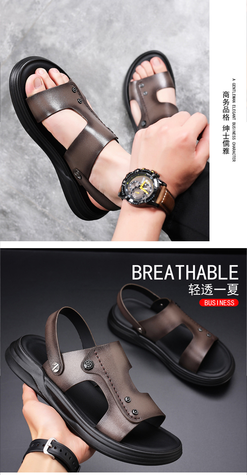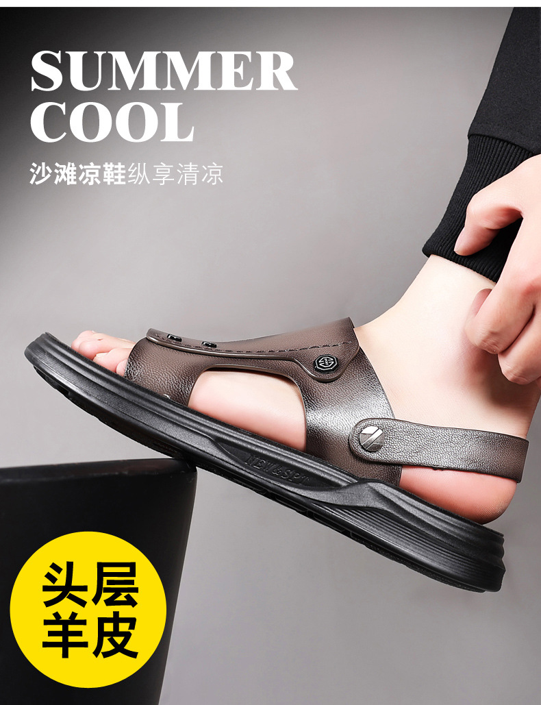 夏季【男士凉鞋真皮男款】透气休闲沙滩鞋 皮凉拖外穿拖鞋男鞋 父亲节节日礼物