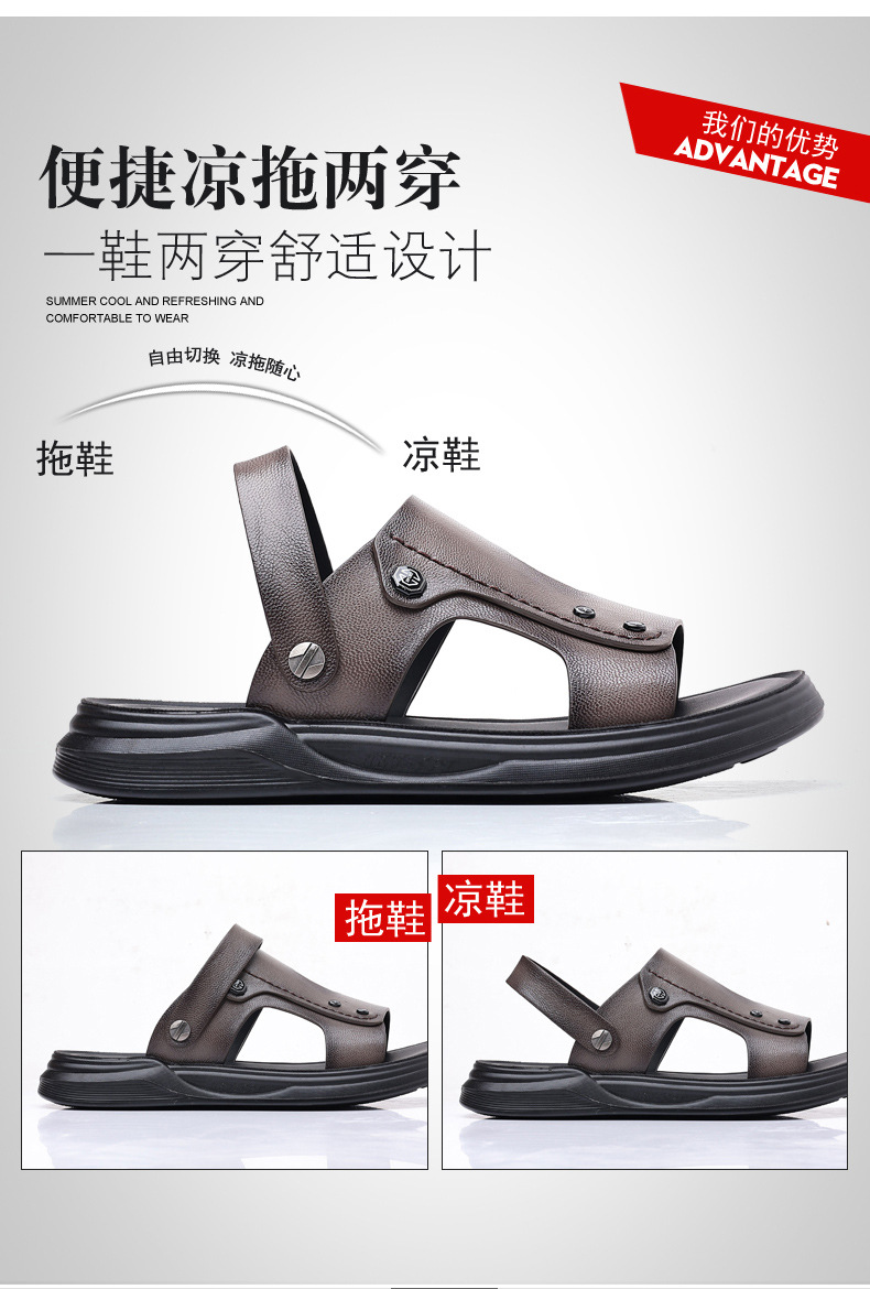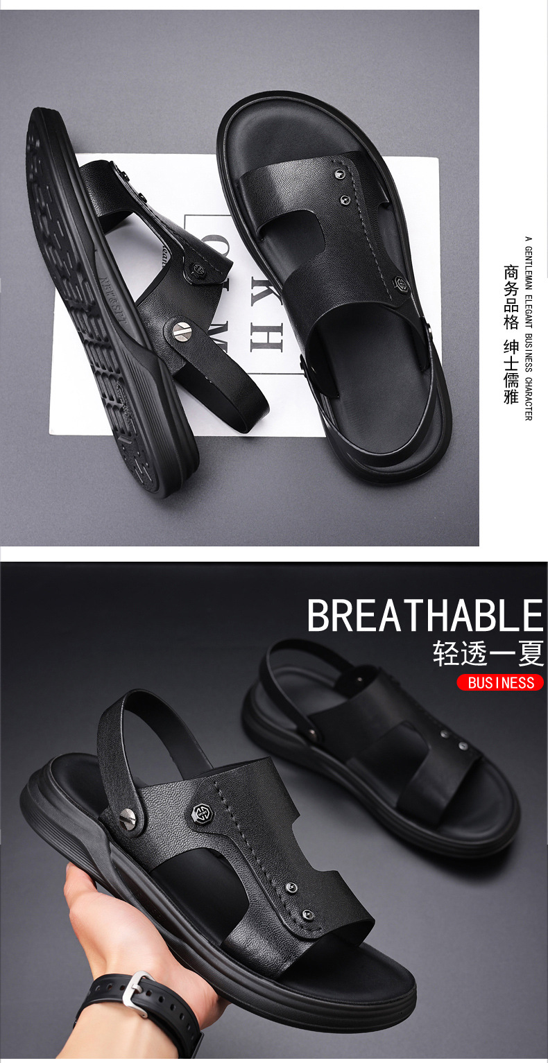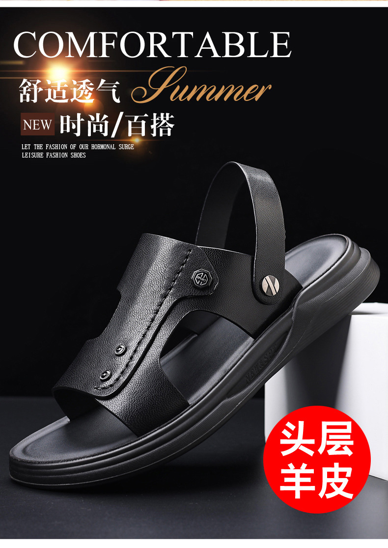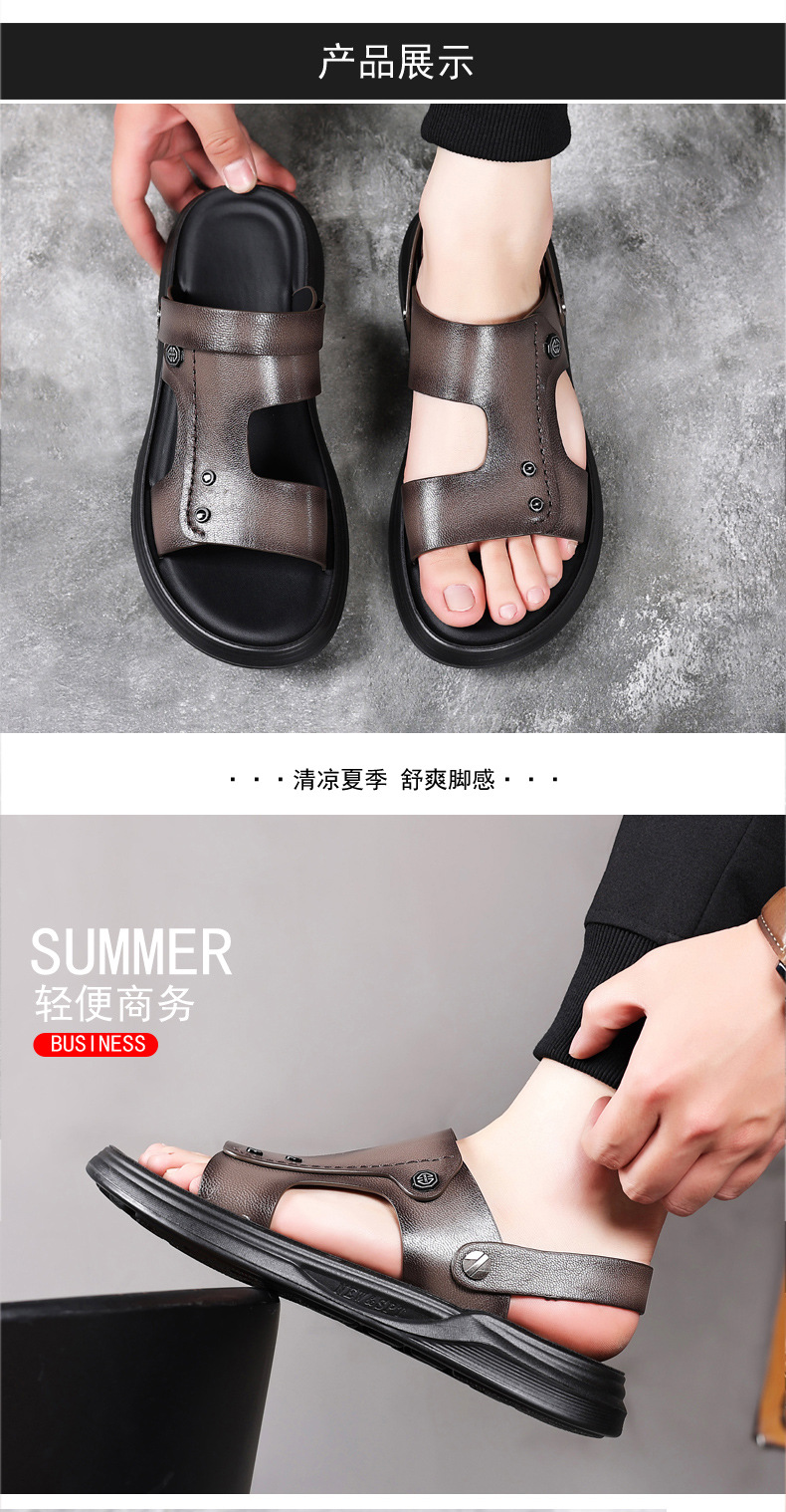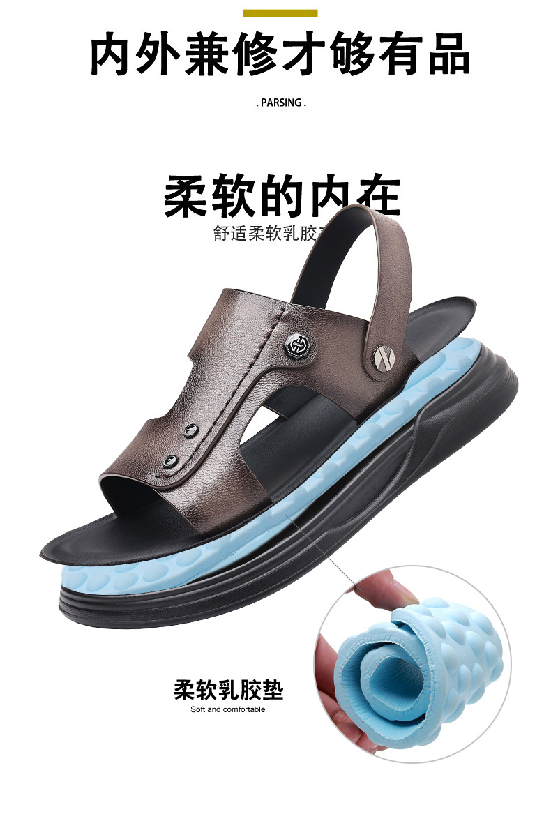 夏季【男士凉鞋真皮男款】透气休闲沙滩鞋 皮凉拖外穿拖鞋男鞋 父亲节节日礼物