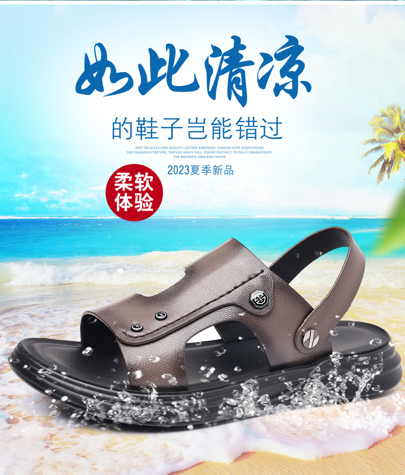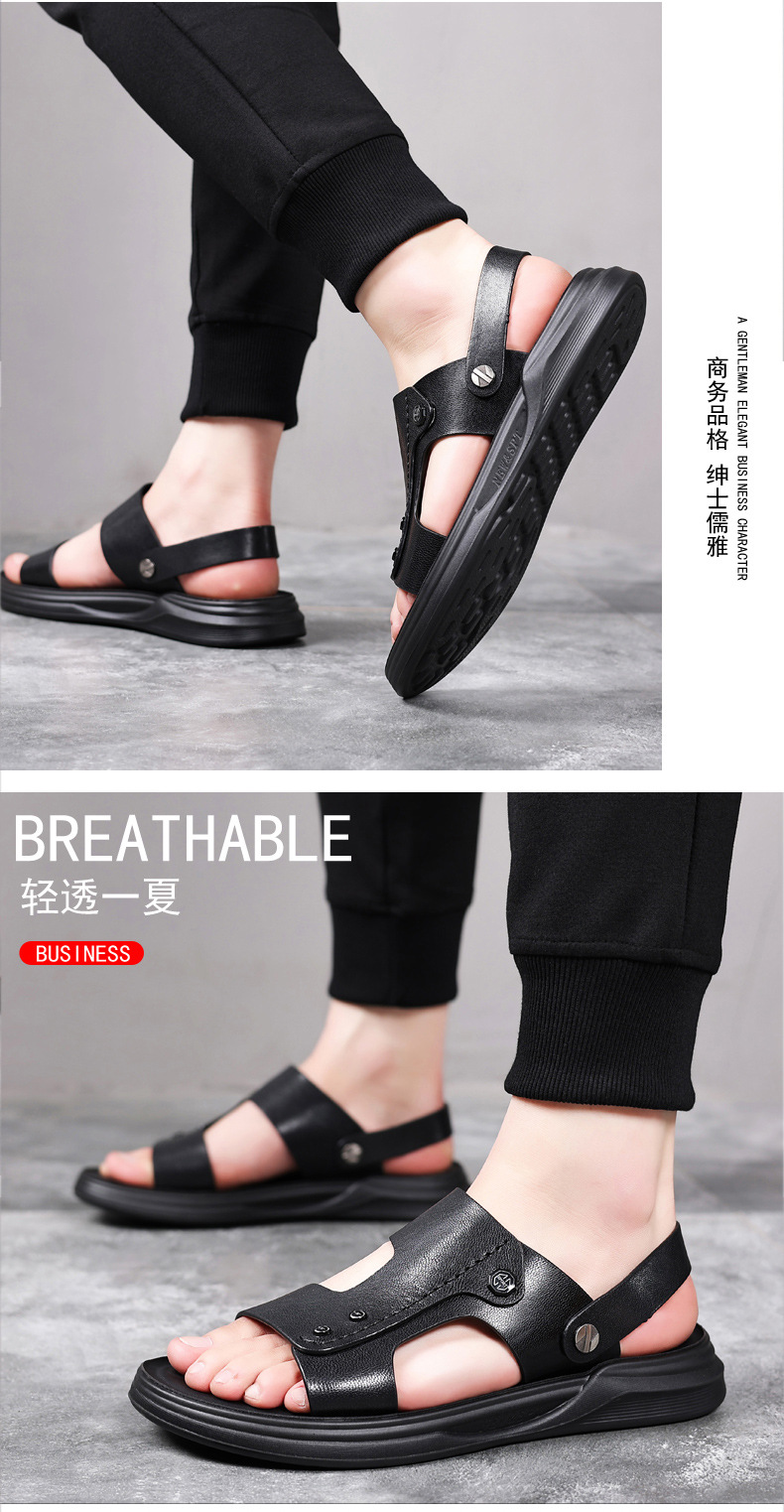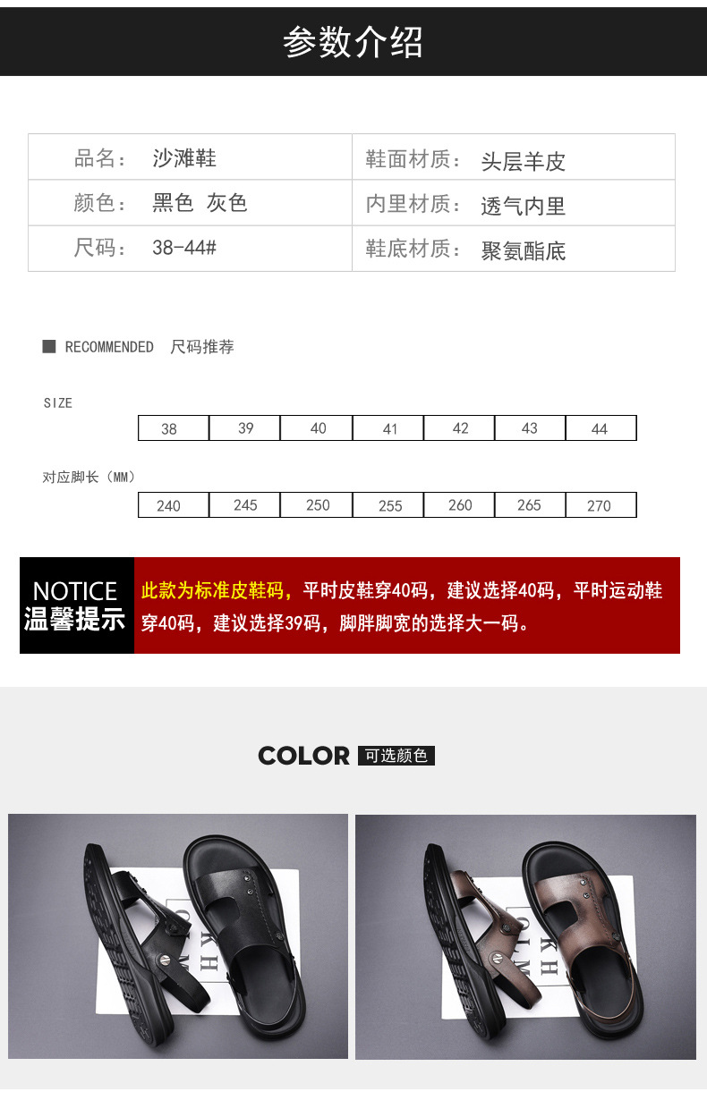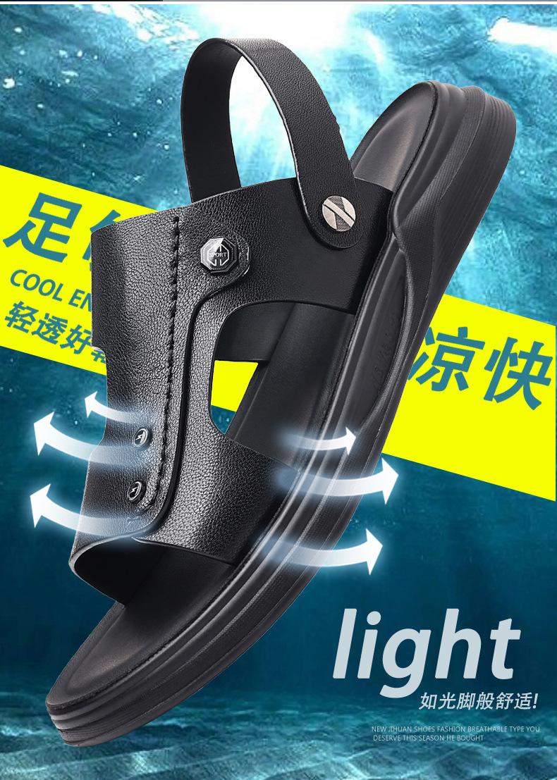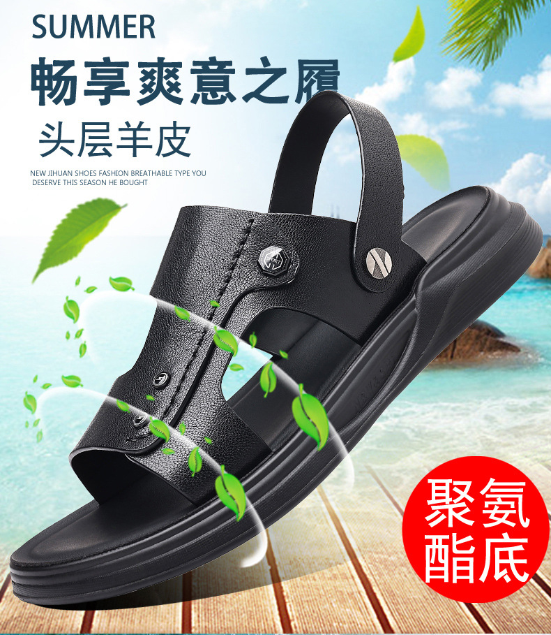 夏季【男士凉鞋真皮男款】透气休闲沙滩鞋 皮凉拖外穿拖鞋男鞋 父亲节节日礼物